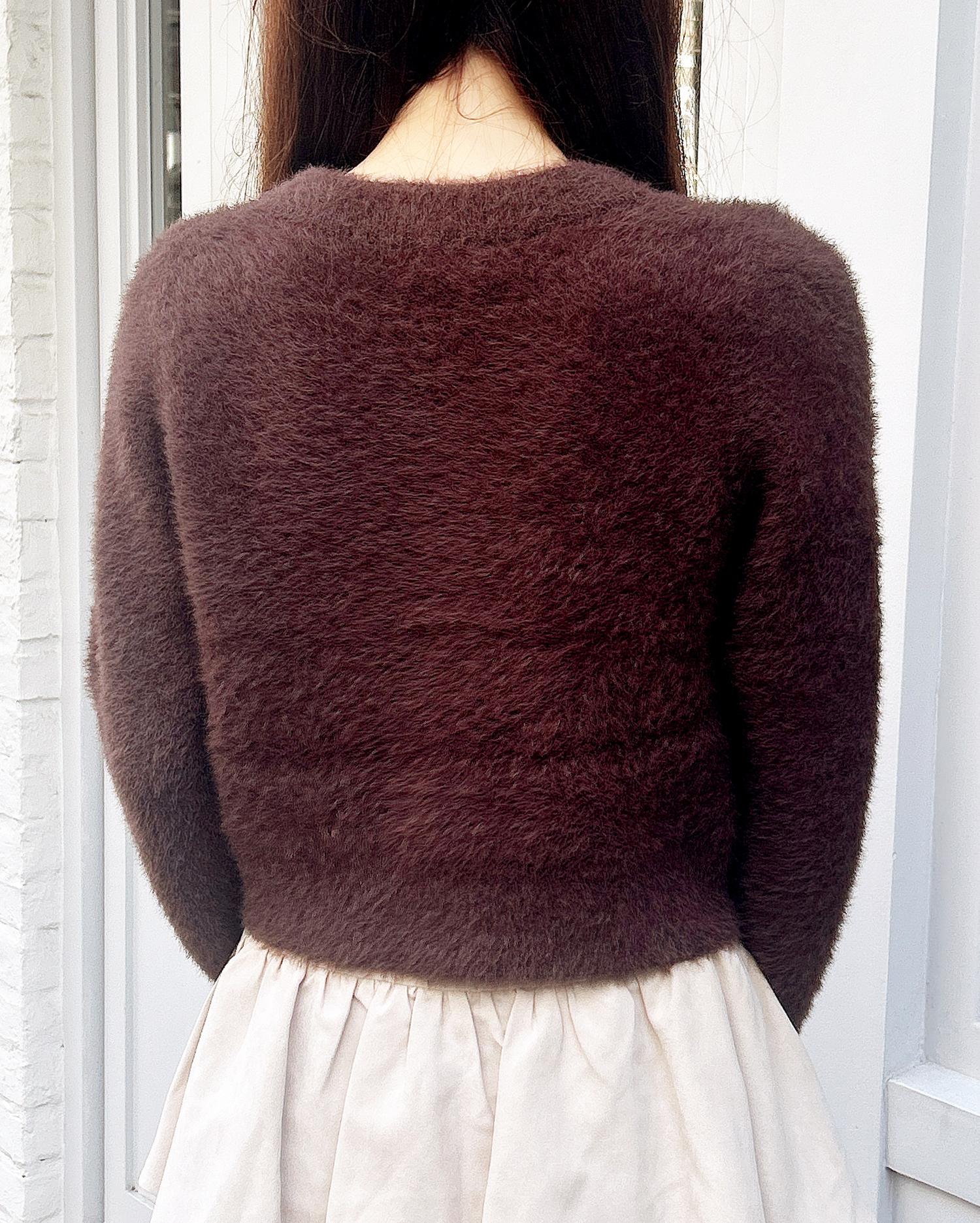 毛足の長い艶やかな素材が、コーディネートを品よく、やわらかな表情に。