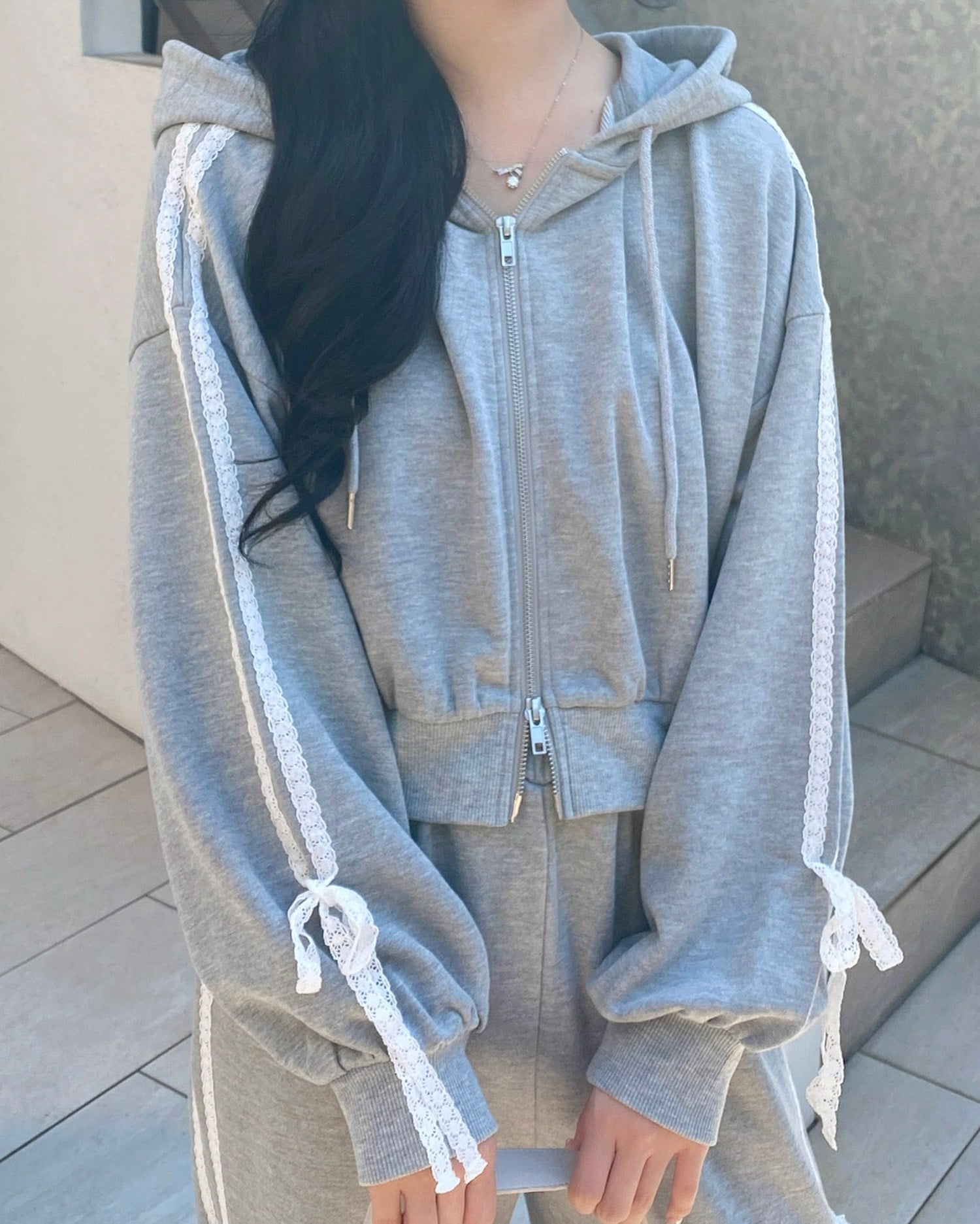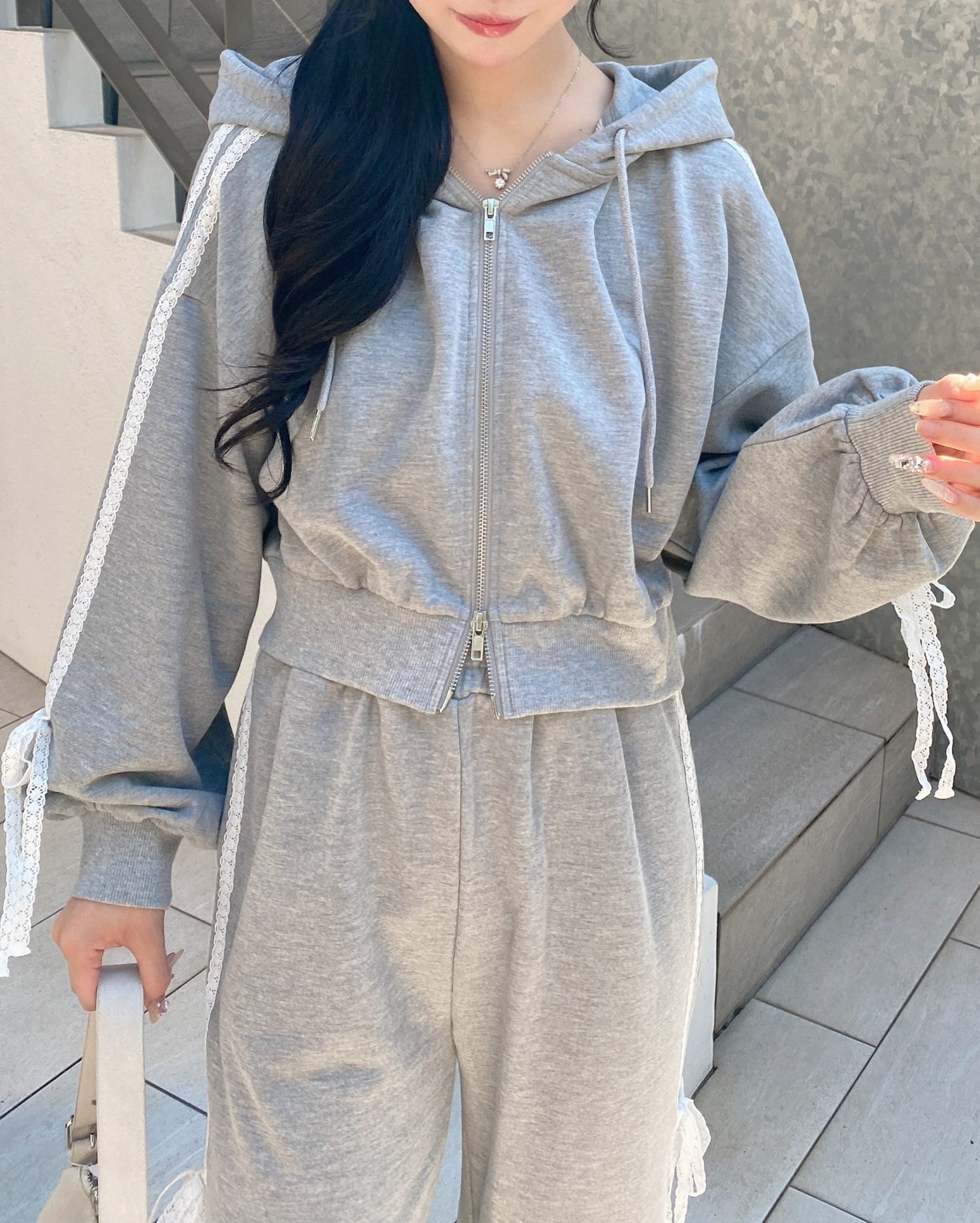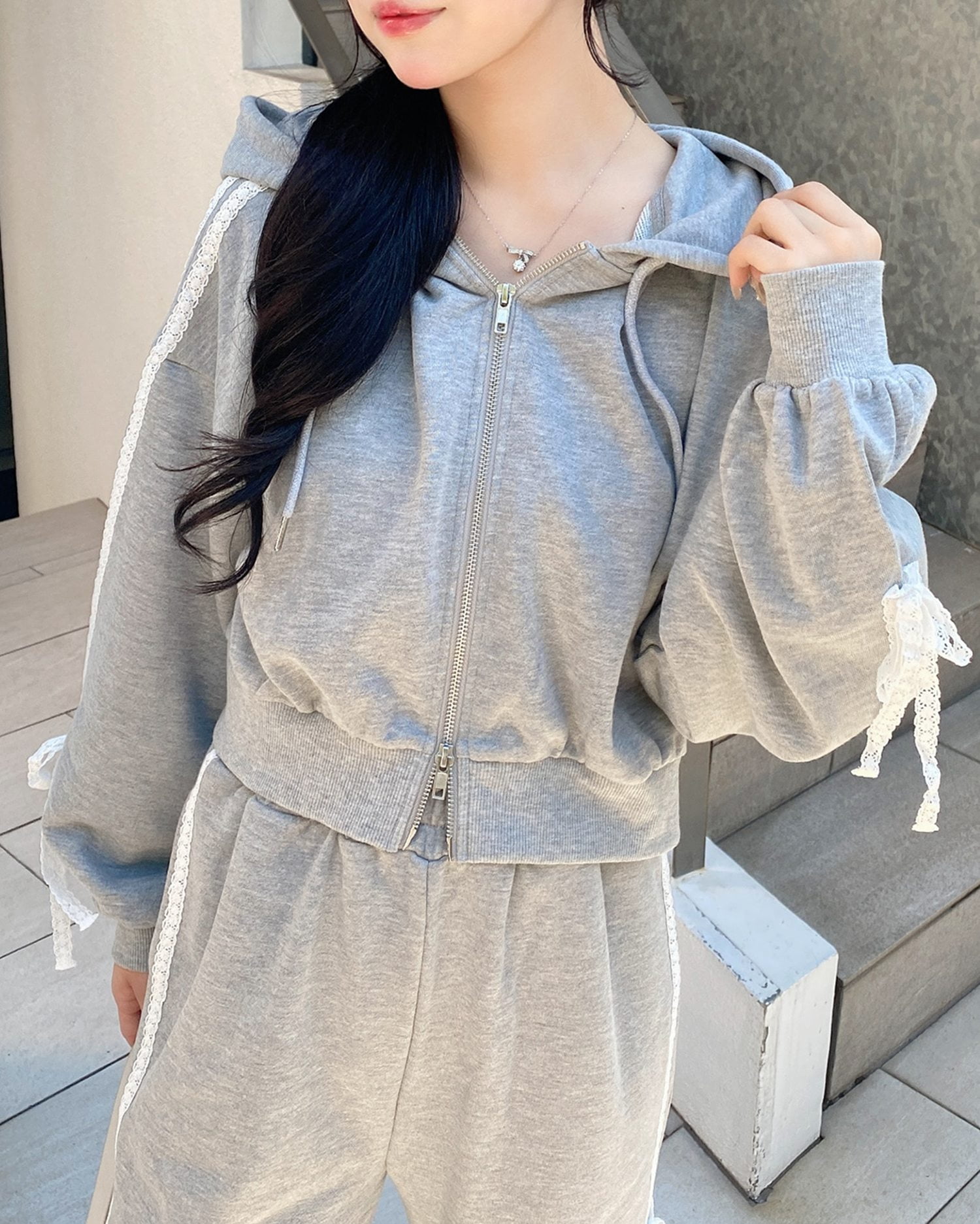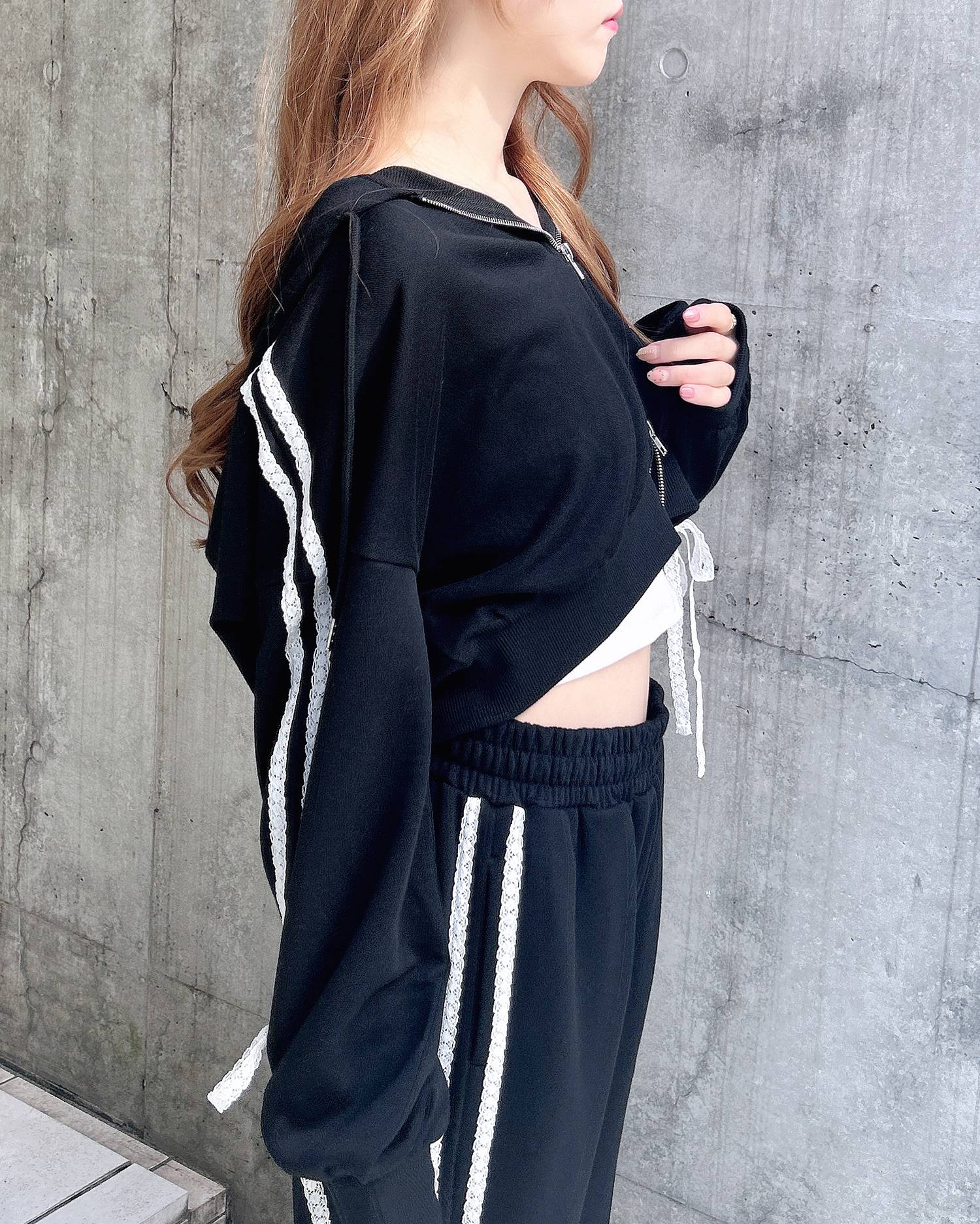 ★同生地の【レースラインスウェットパンツ】とセットアップで着用可能です♪