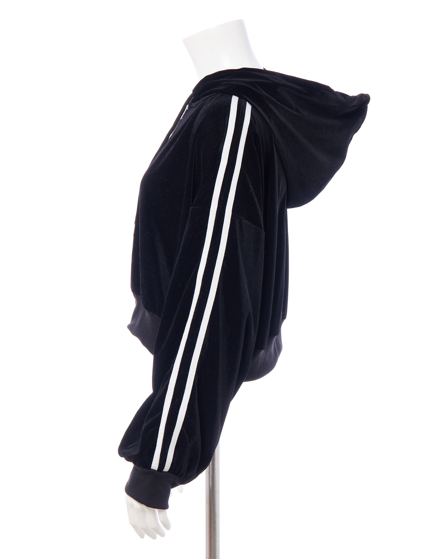 サイドラインのデザインと高級感のあるベロア生地がマッチして、