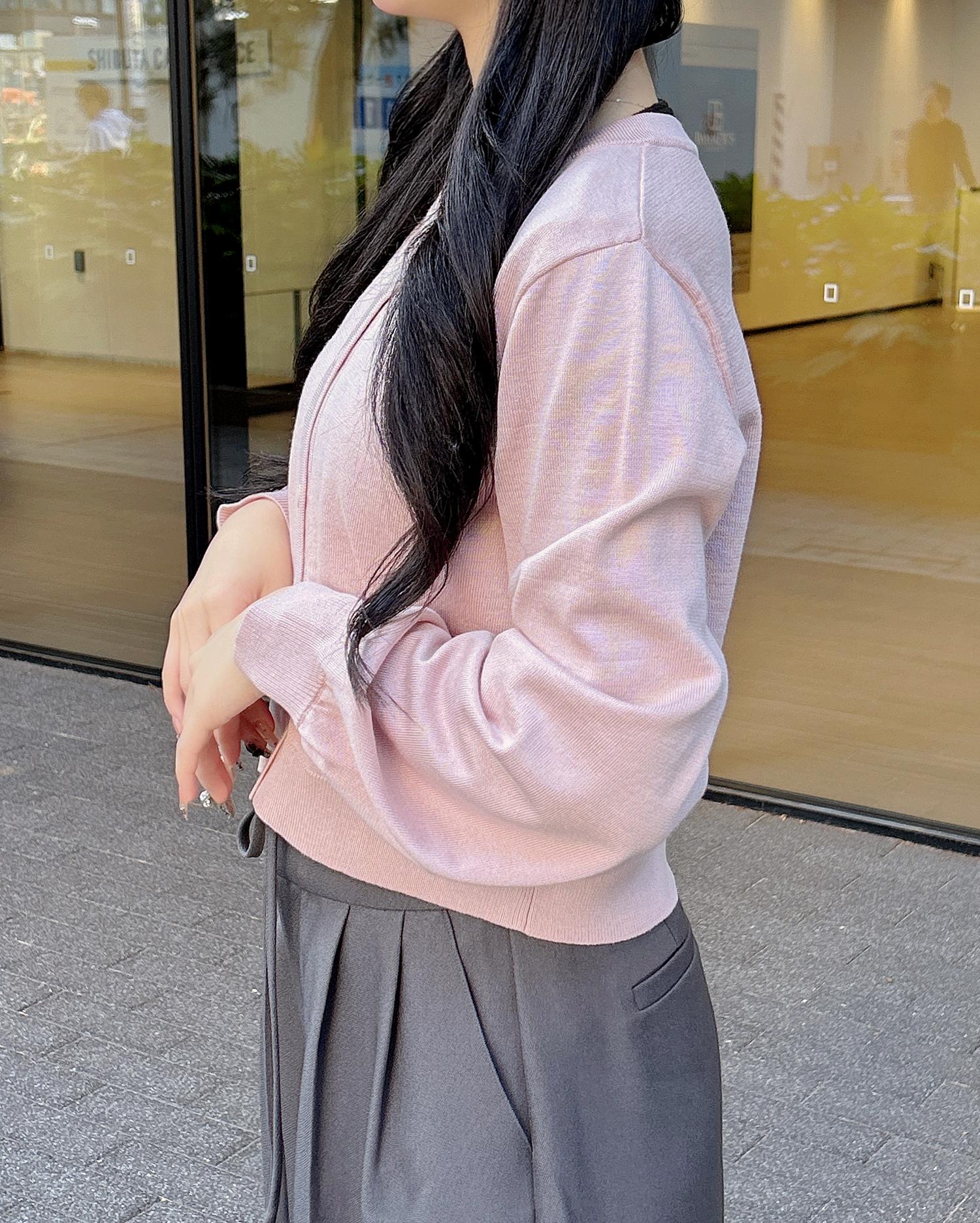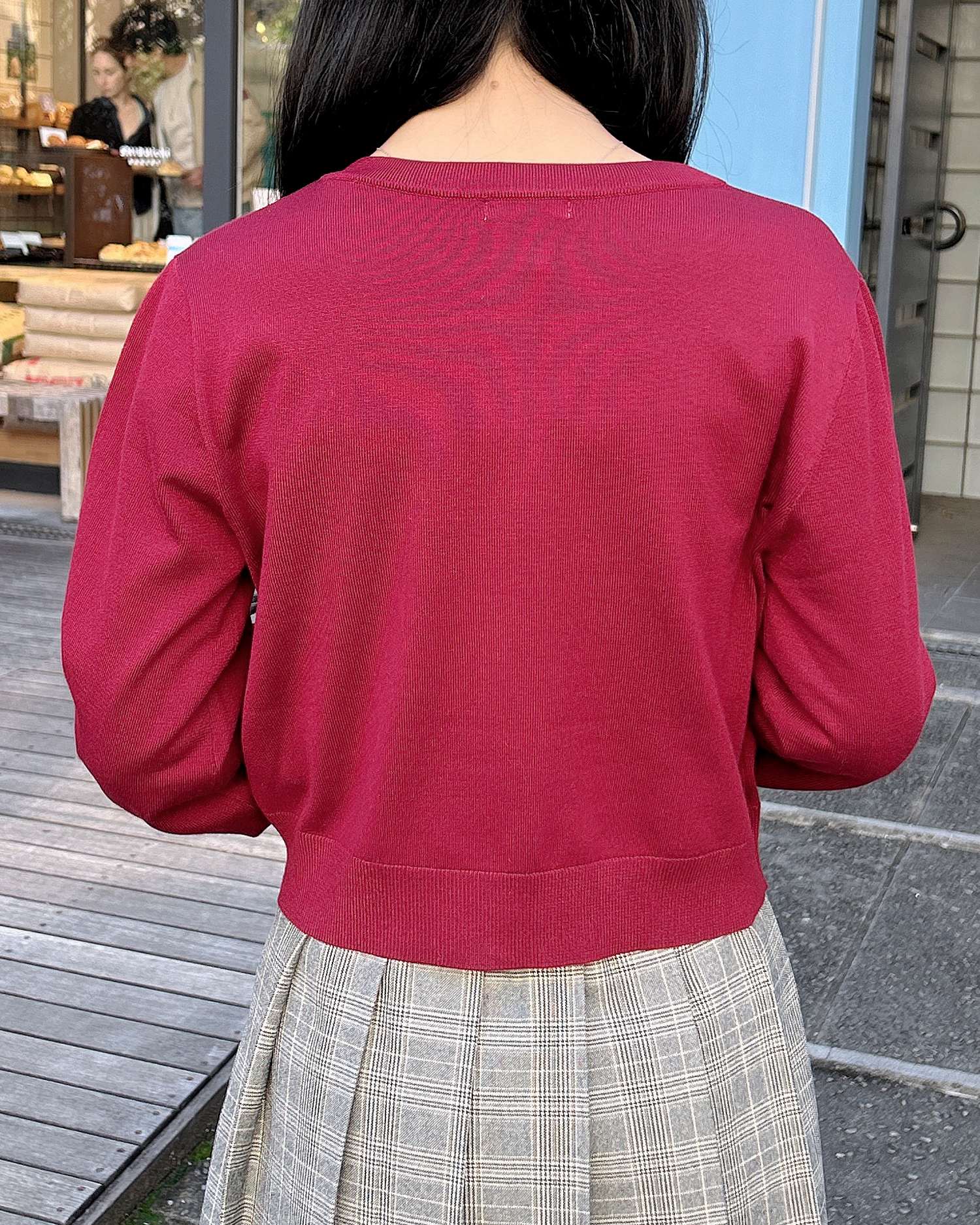 薄手のニットカーディガンなのでかさばらず、持ち運びにも便利◎
