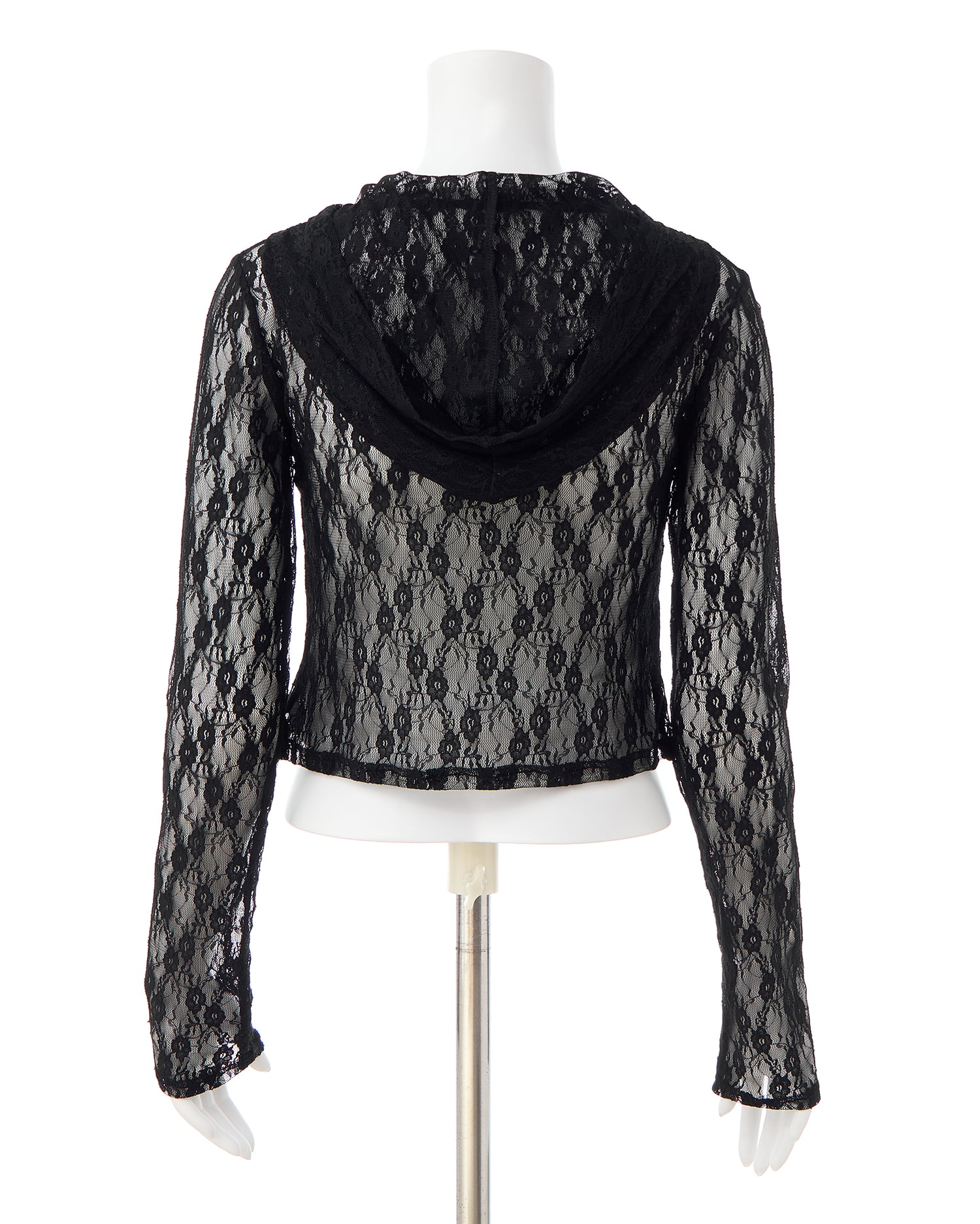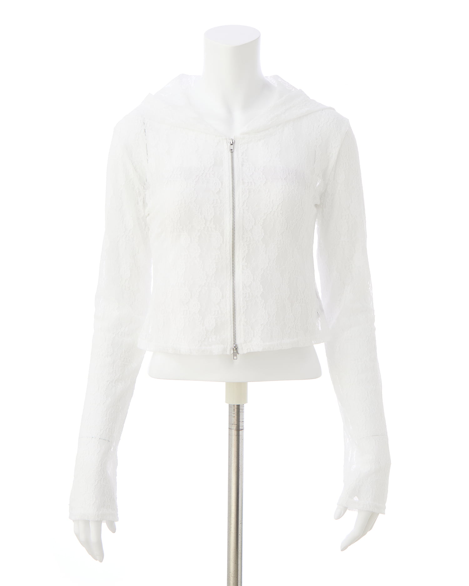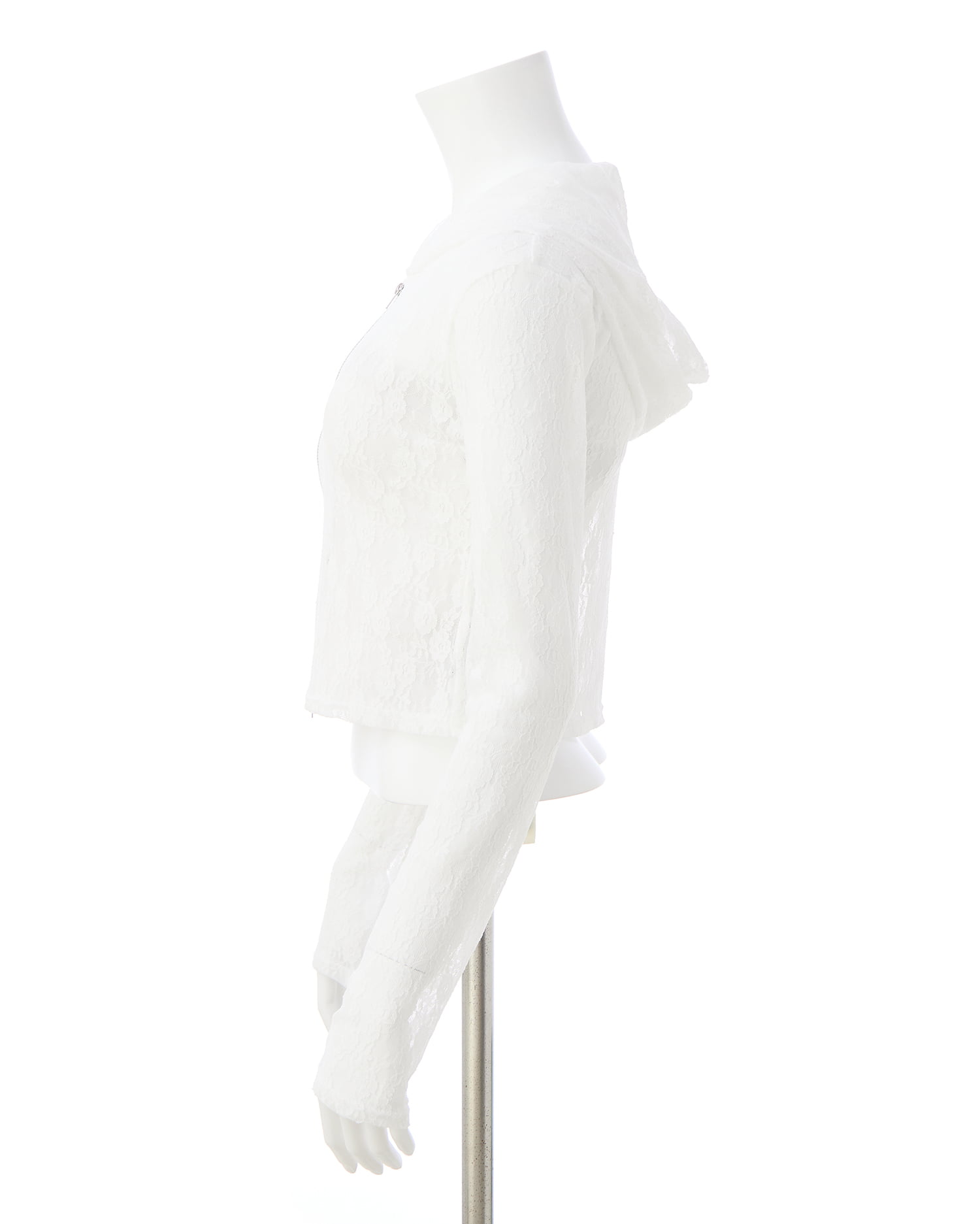 【カジュアルすぎない風合いで洗練された印象のシアーレースパーカー】