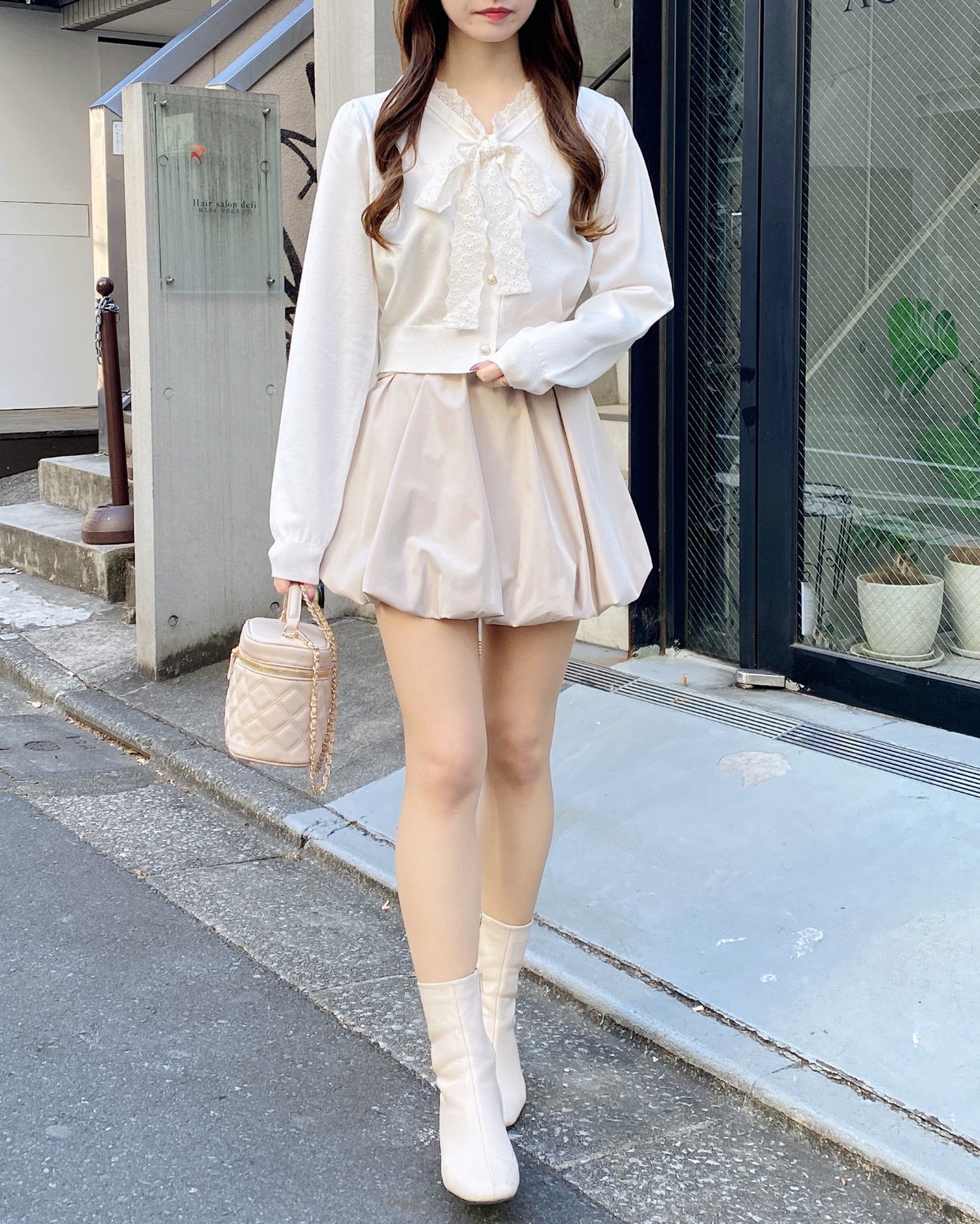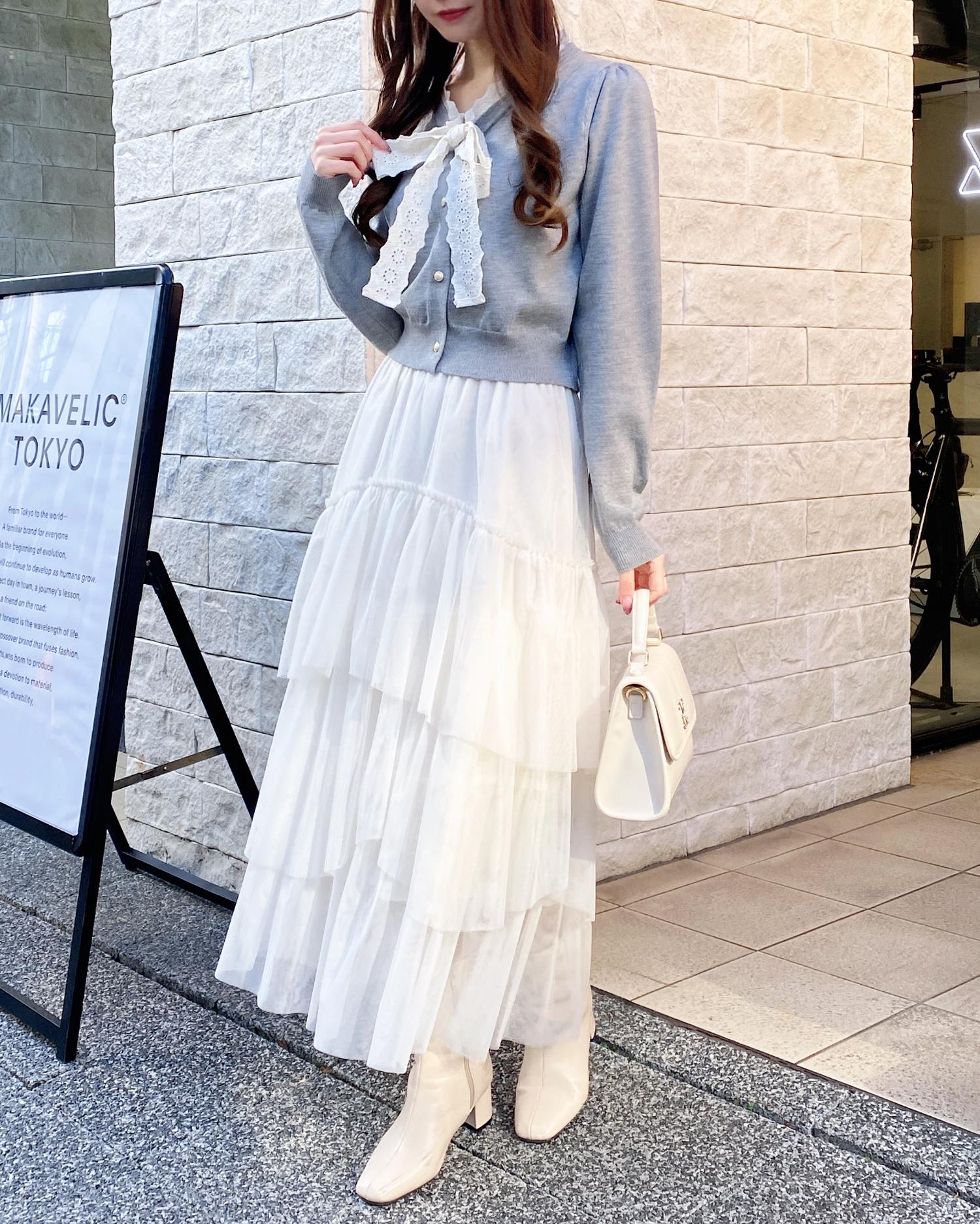 ふわっとしたバルーンスカートやチュールのスカートと合わせて可愛らしいスタイリングがおすすめ。