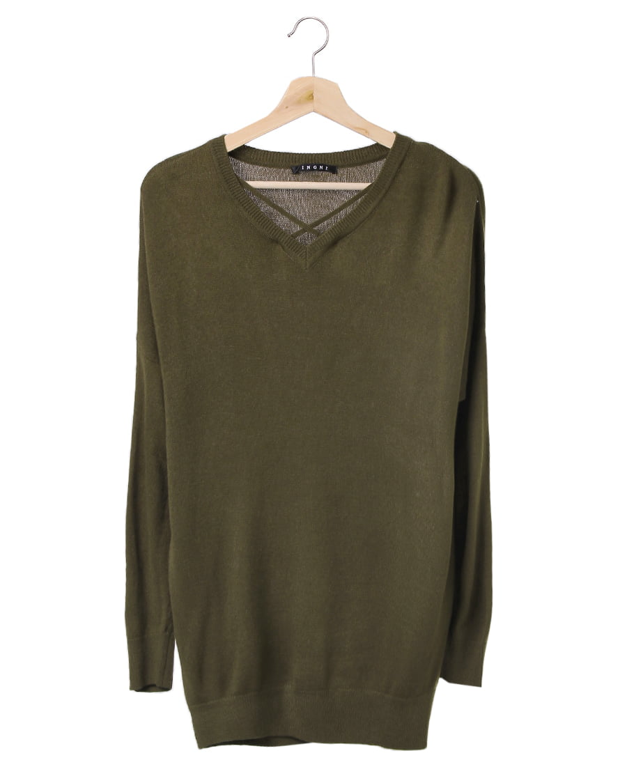• INGNI(イング) カシミヤタッチフロントクロスコクーン/チュニック カーキ
