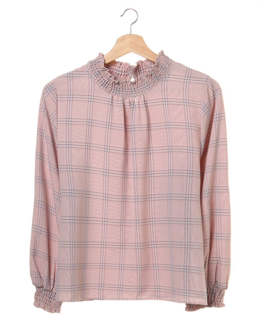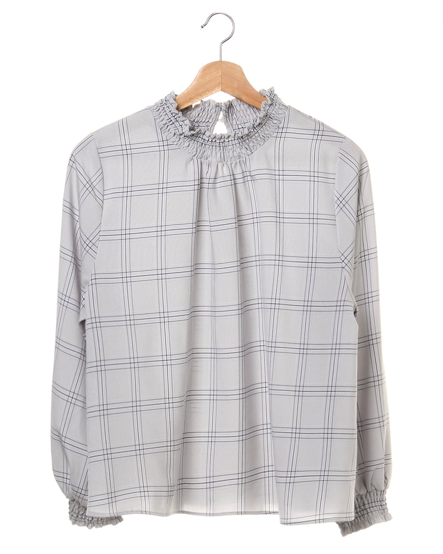 大きめのチェック柄がガーリーな印象のレトロなトップス。ハリのある生地で形が崩れにくい素材ながら軽いので、リラクシーな着心地を実現。ゆったりしたデザインが女性らしく品のあるシルエットにアップデート。襟と袖口にあしらった細やかなシャーリングがこなれ感をあおります。シンプルスタイルに合わせるだけで、旬のスタイルが完成。オンオフ問わず、デイリー使いに重宝する優秀アイテムです。