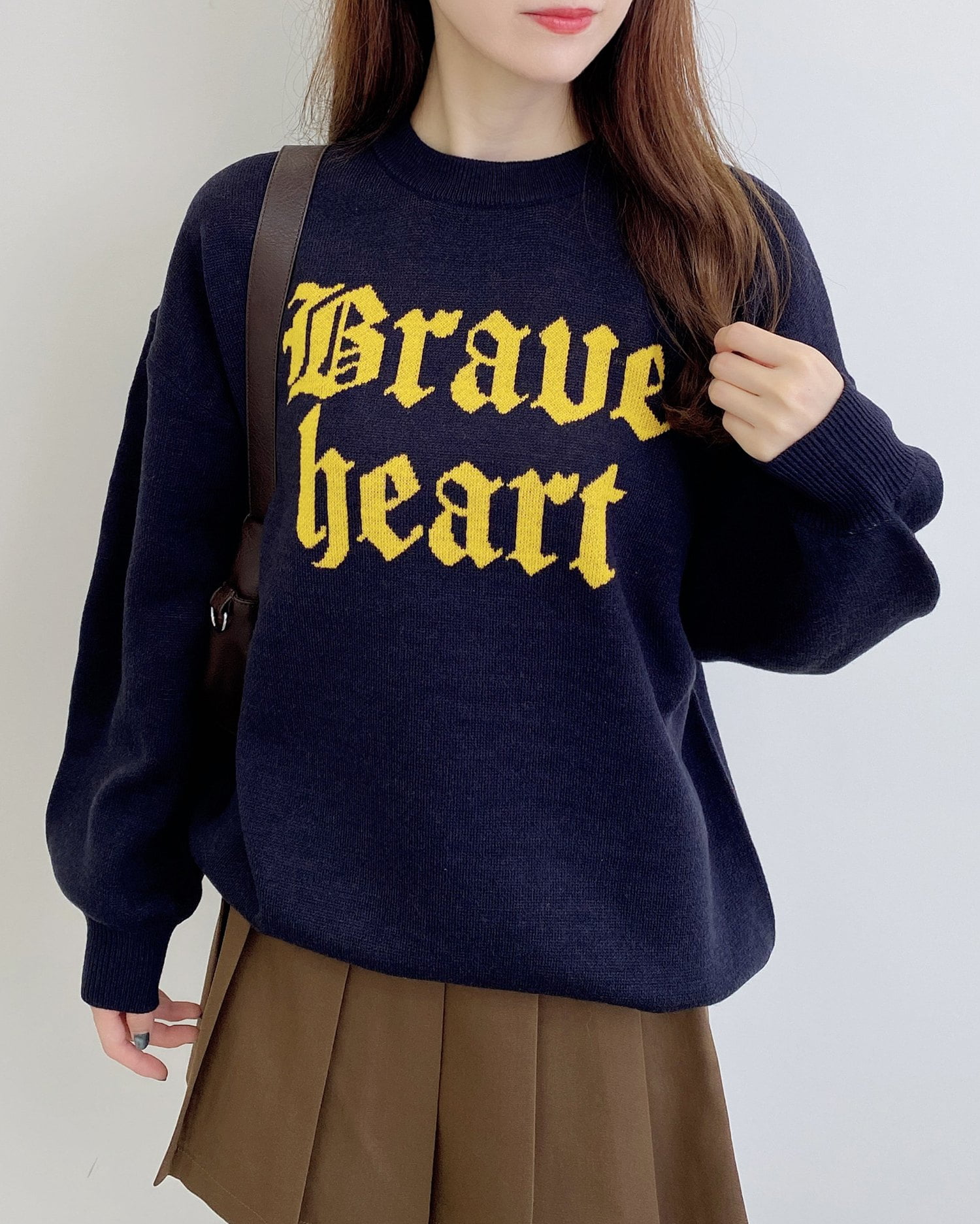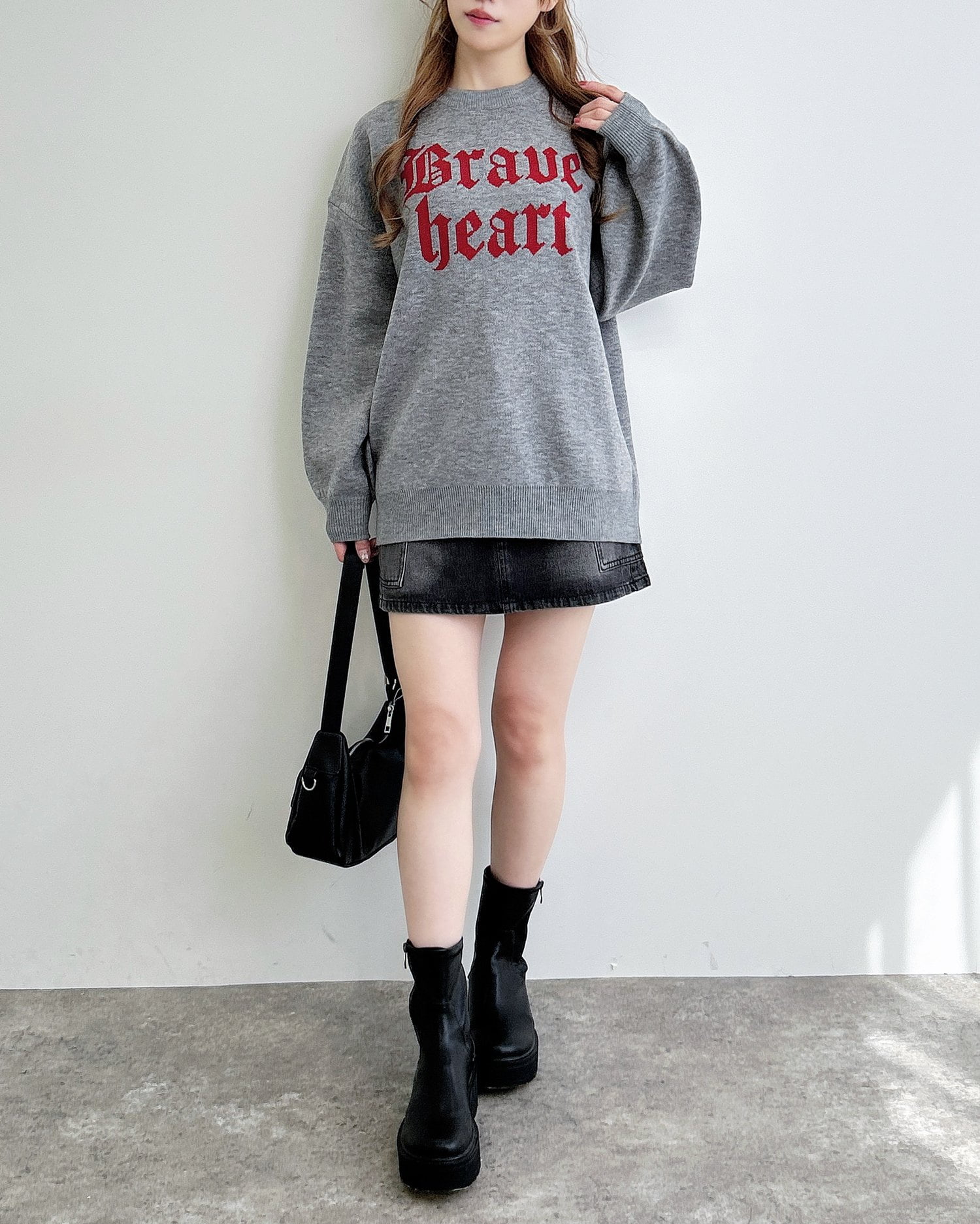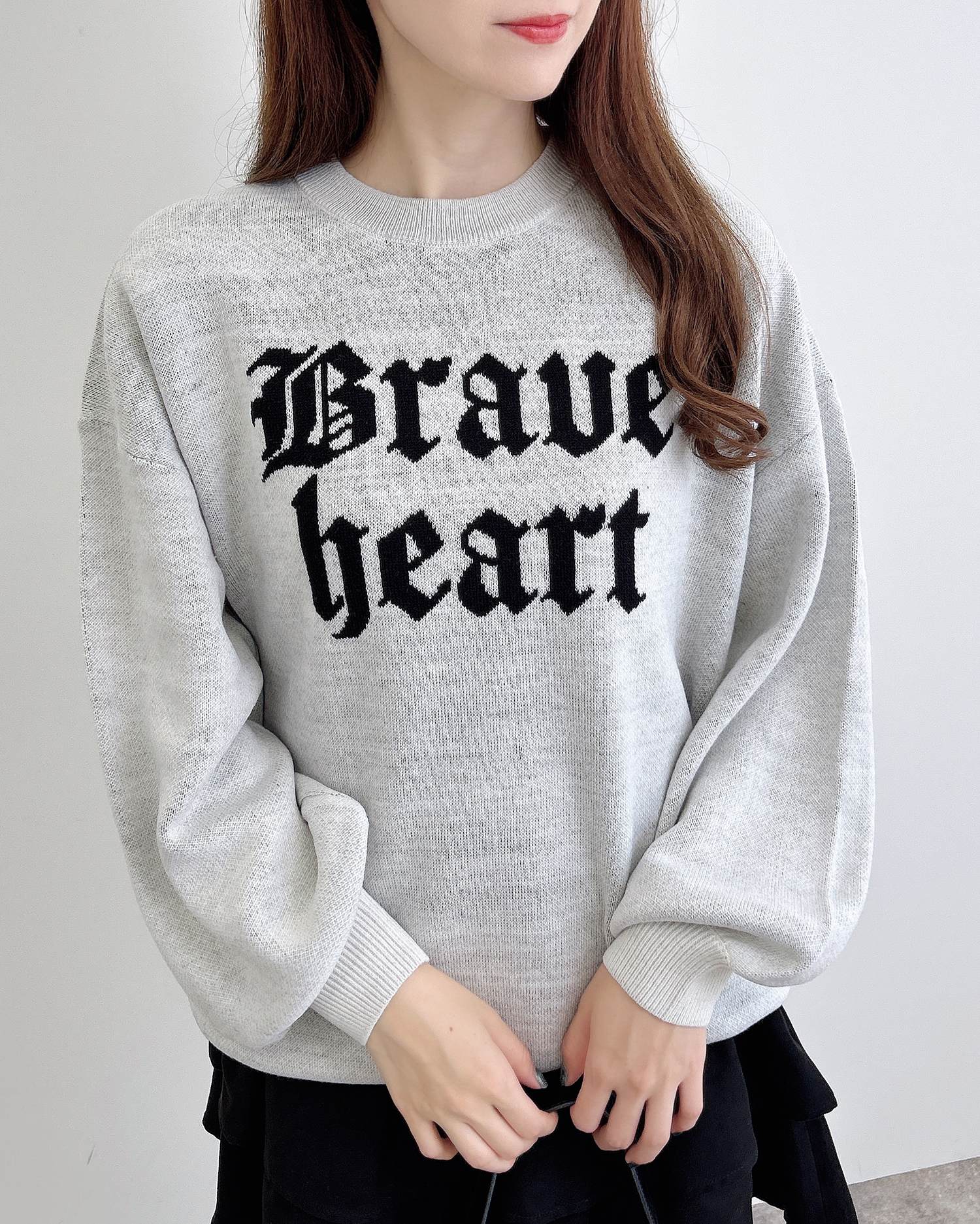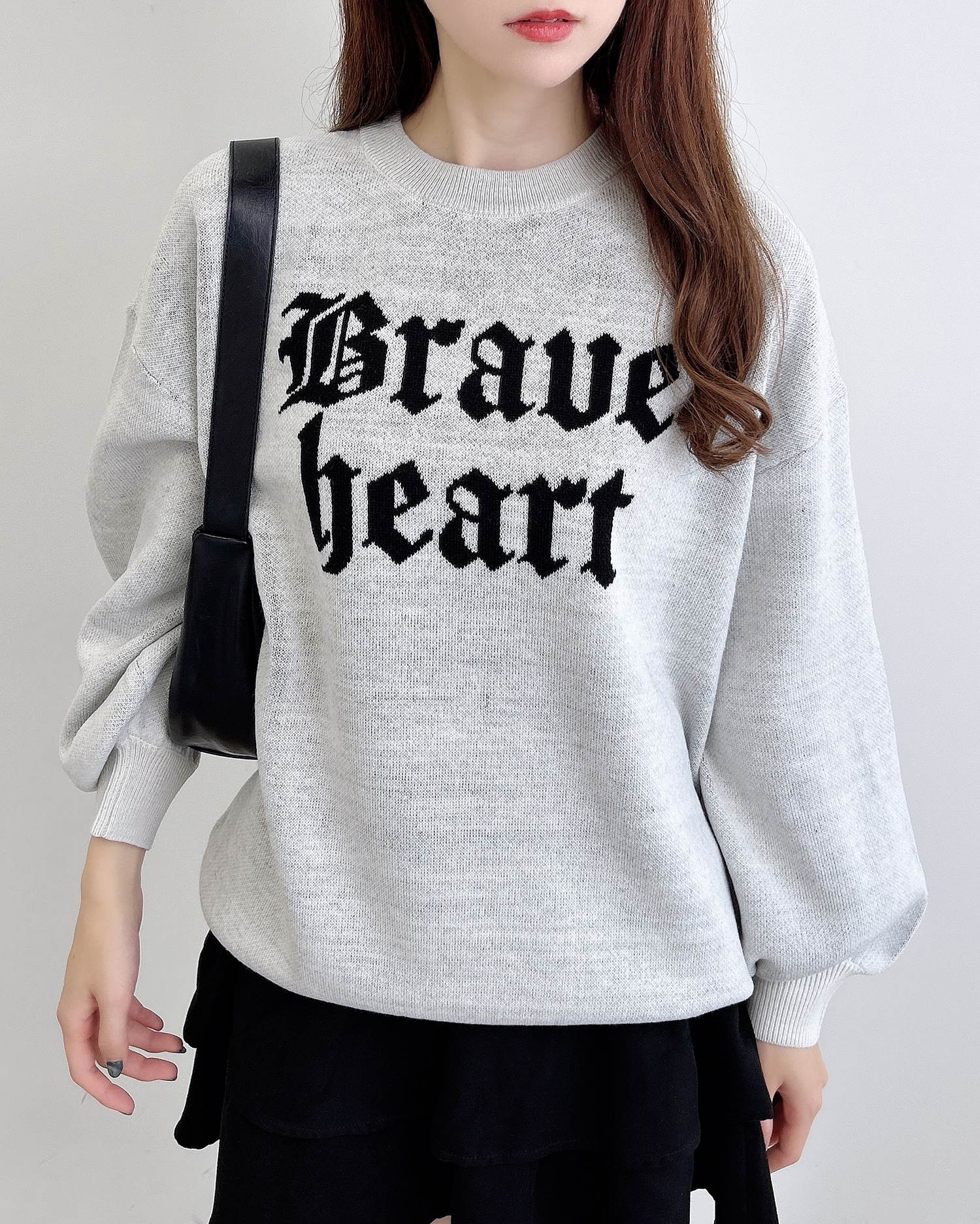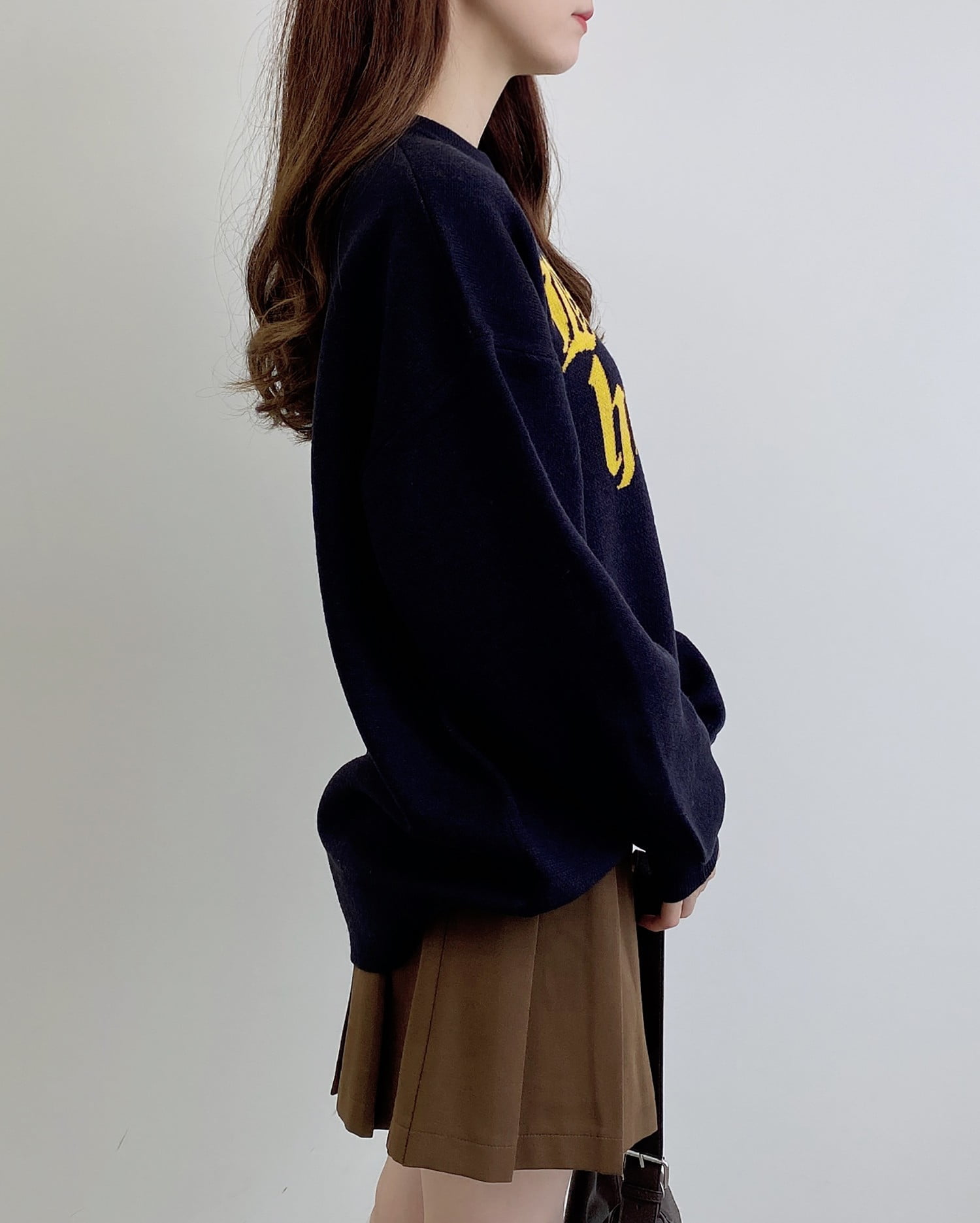 【クール&スタイリッシュな胸元のロゴが印象的なニットトップス】