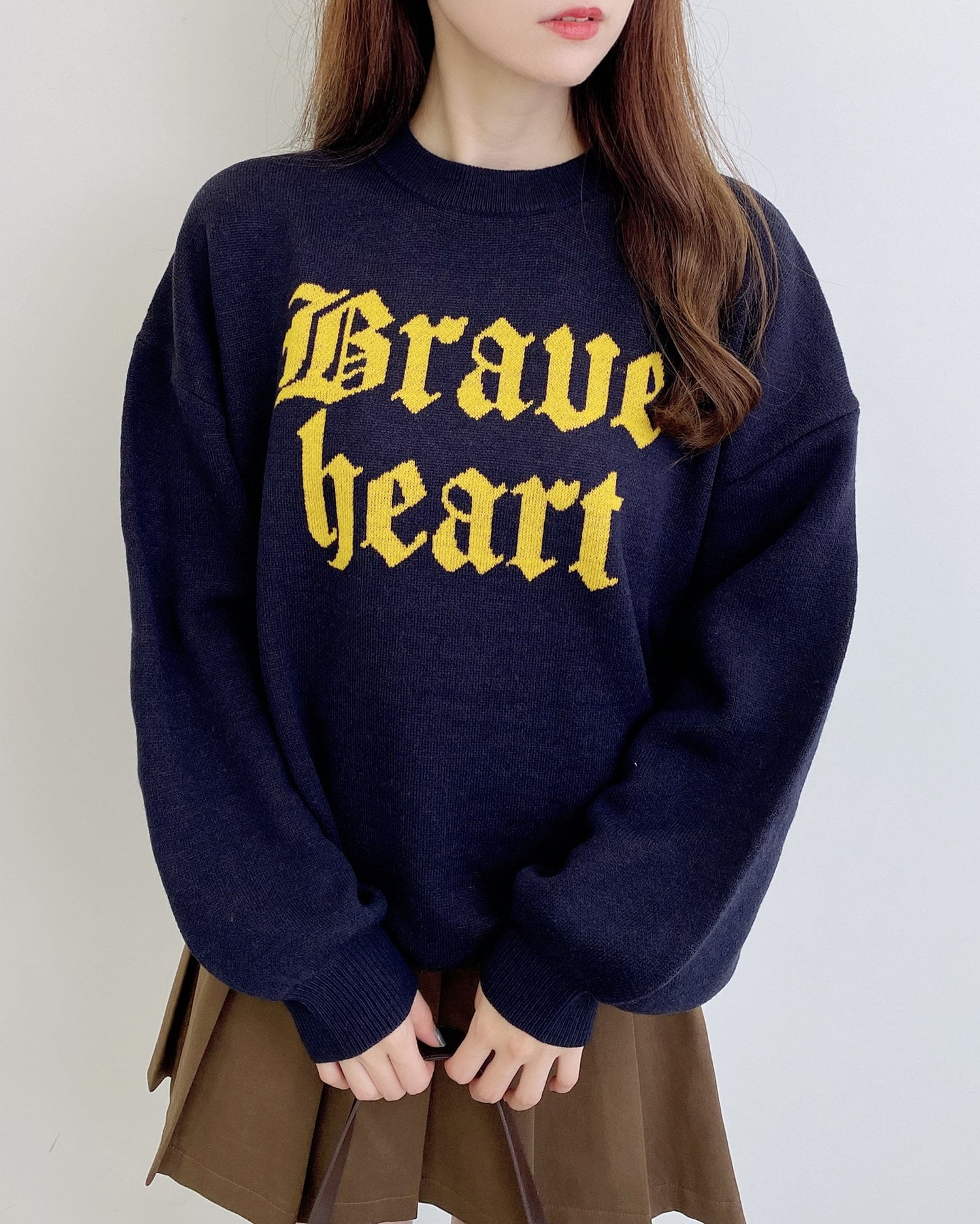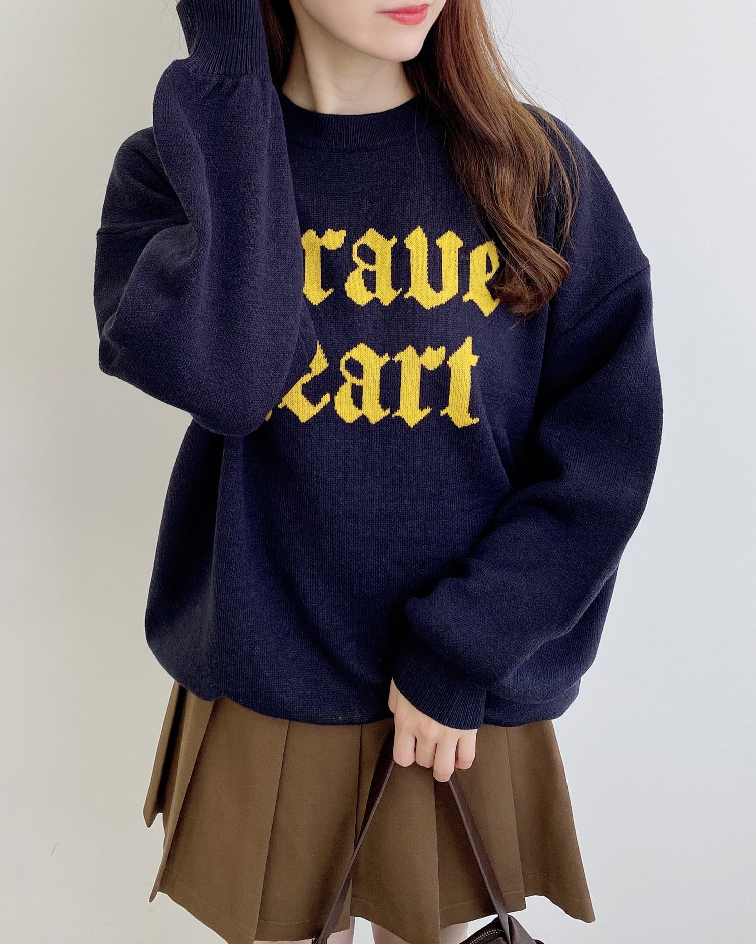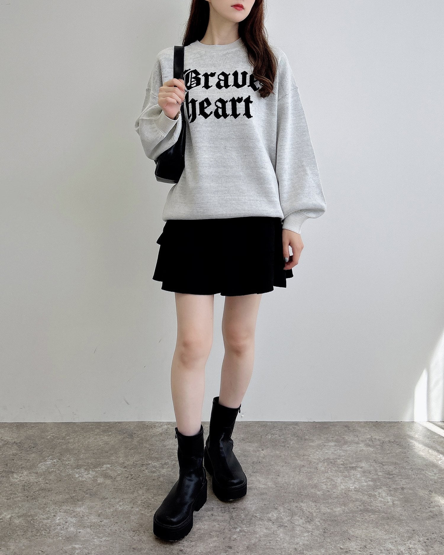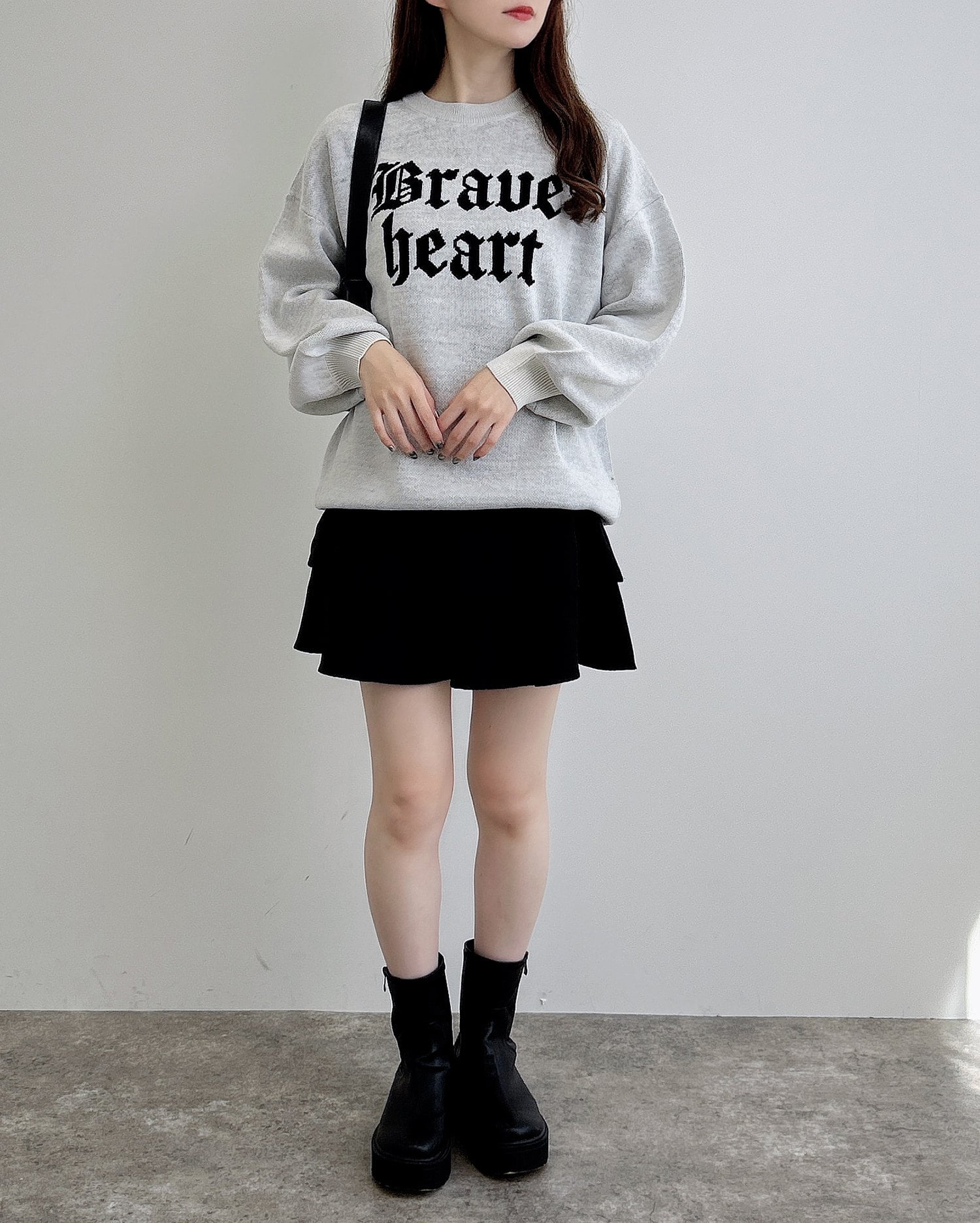 【クール&スタイリッシュな胸元のロゴが印象的なニットトップス】