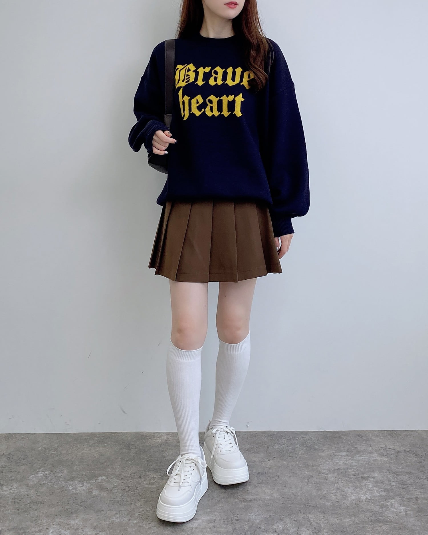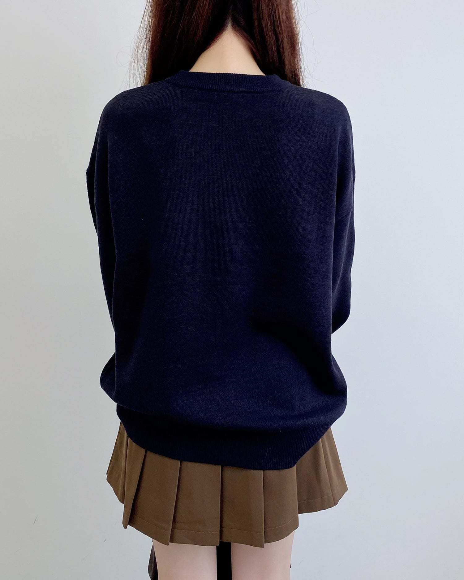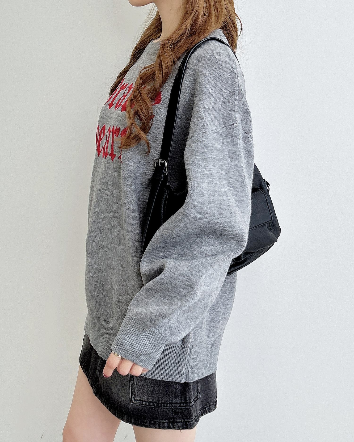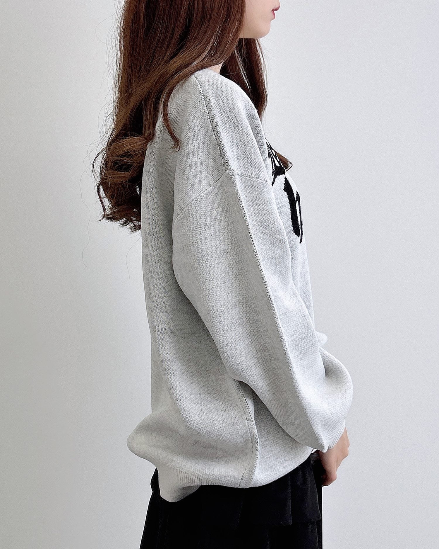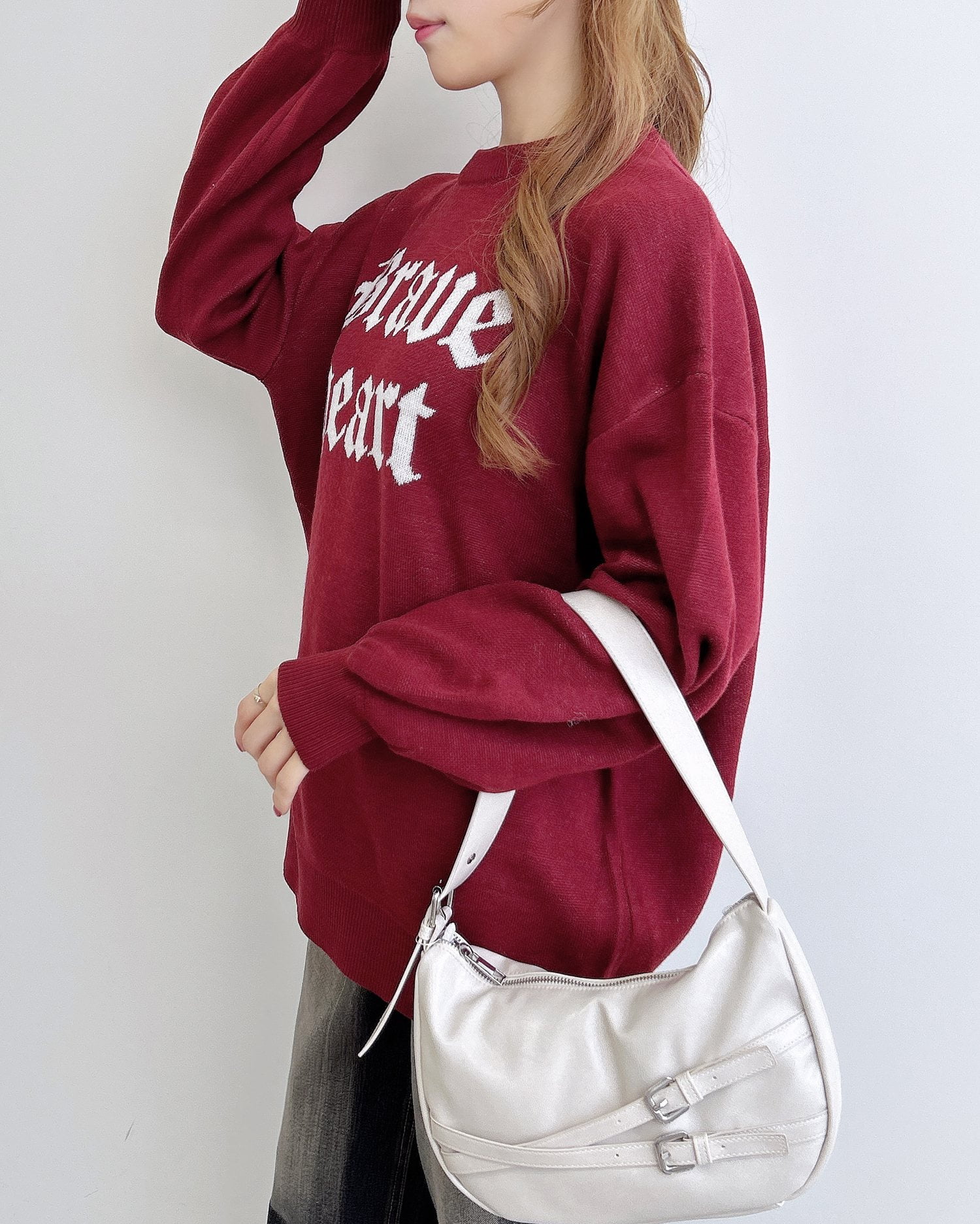 【クール&スタイリッシュな胸元のロゴが印象的なニットトップス】