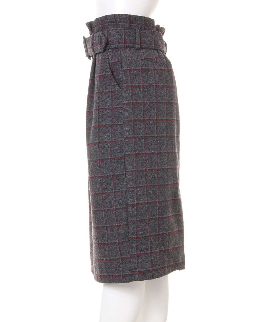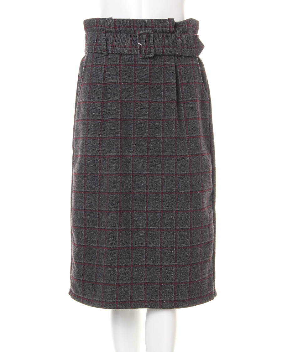 トレンドのチェック柄は、ひざ下のロング丈がクラシカルなナロースカートがオススメ。ヴィンテージライクな生地を、女性らしいタイトなシルエットに落とし込んだこなれ感たっぷりの一枚。滑らかな裏地付きで、バックスリットも入っているので足さばきも楽チン。ウエストラインに入れたタックが、腰回りをすっきりメイク。共布のベルトが付いているのも魅力的です。