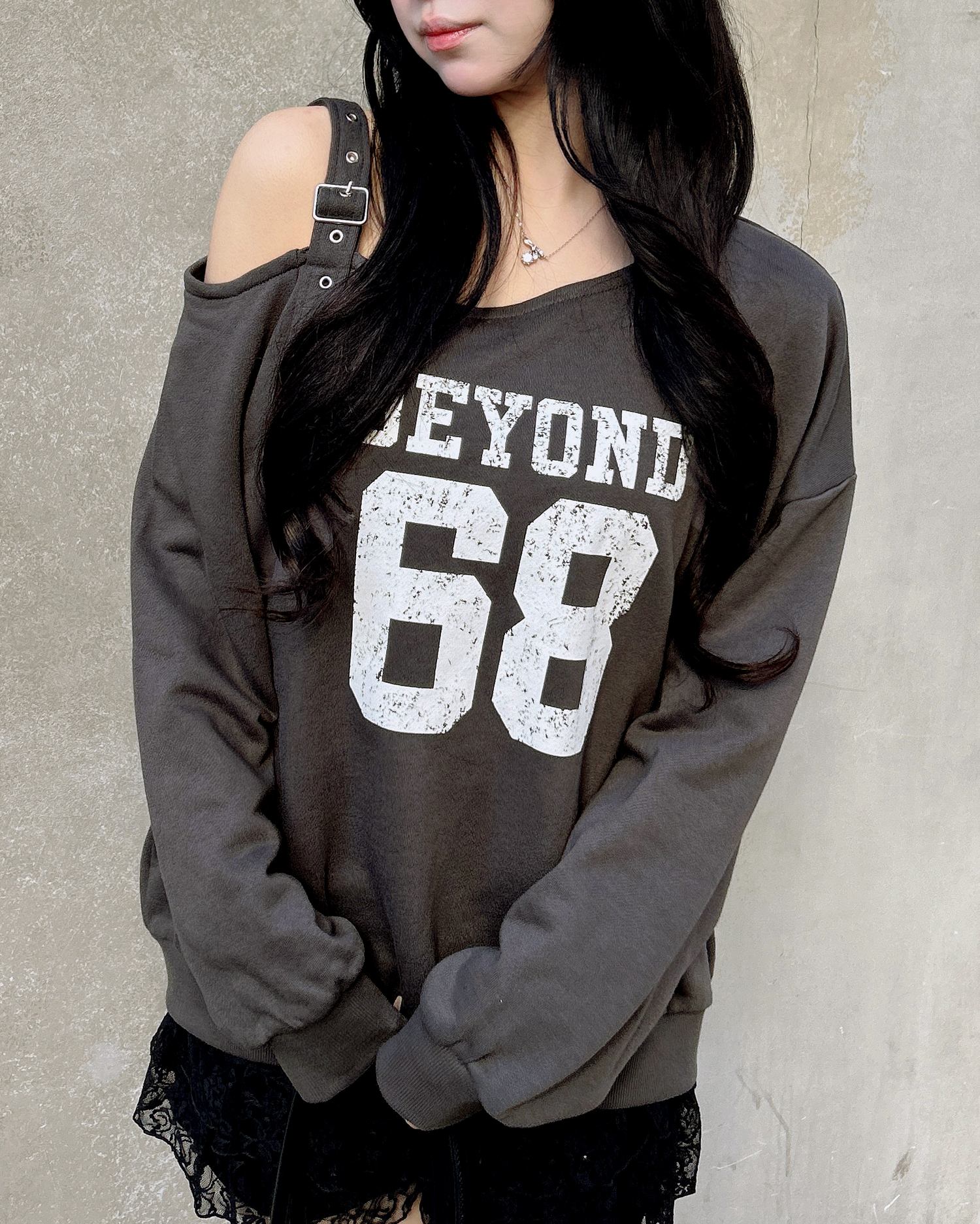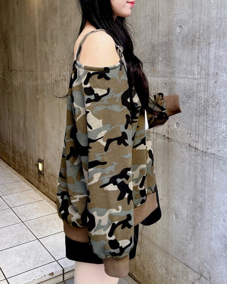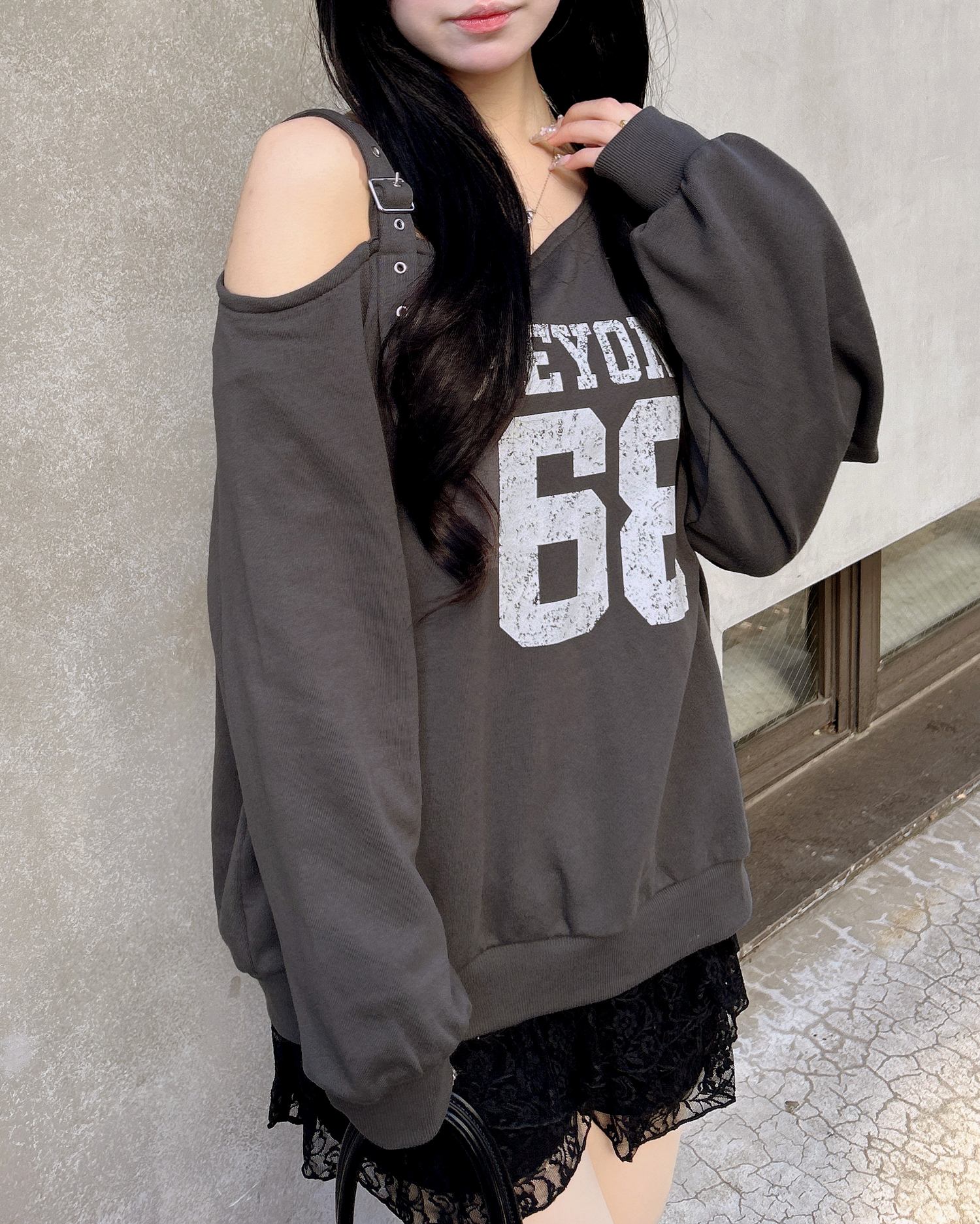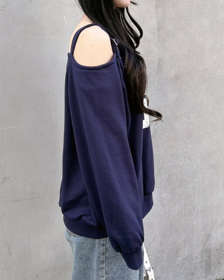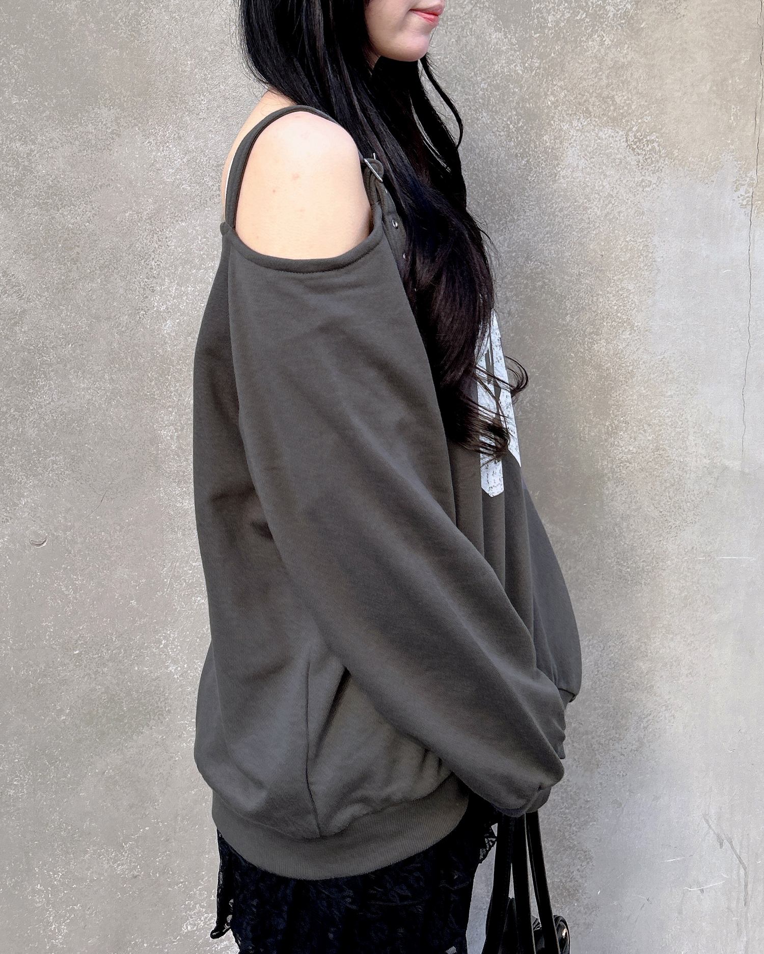 ショルダー部分にスタイリッシュなハトメベルトをあしらったスウェットトップスです。