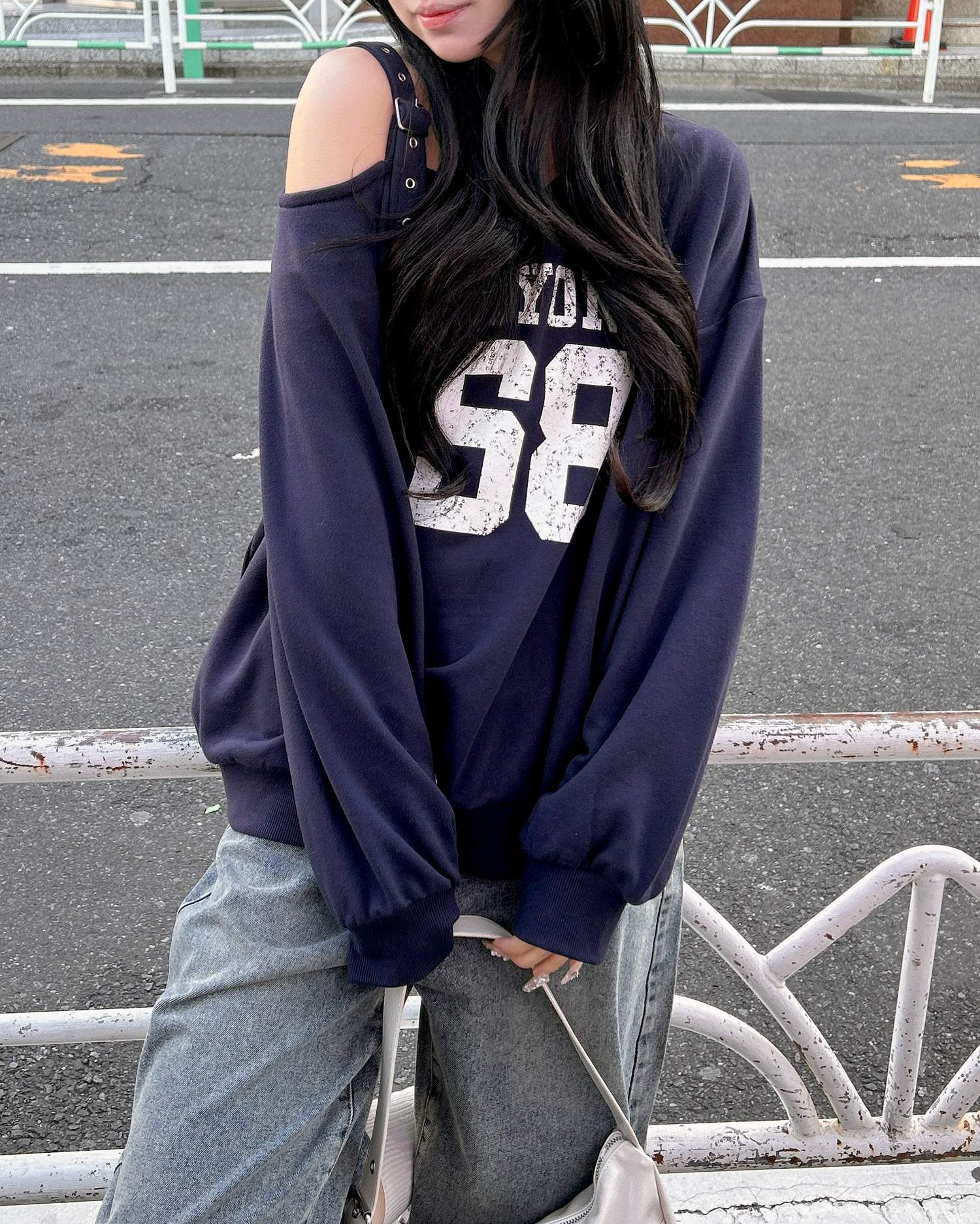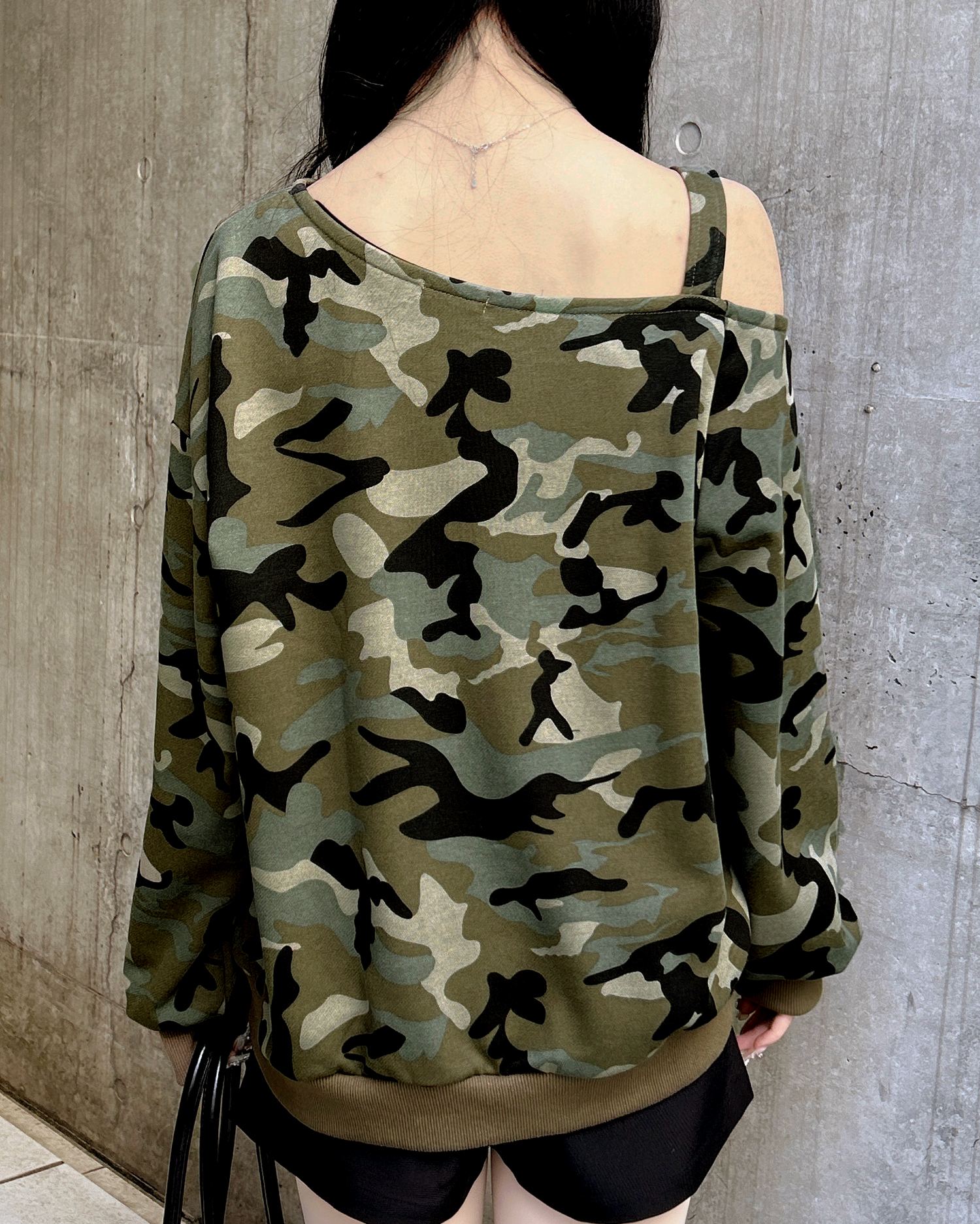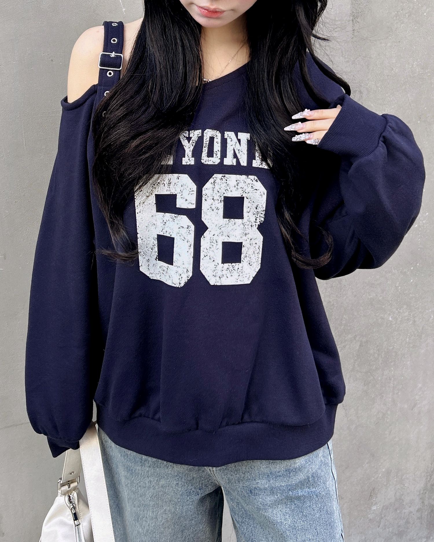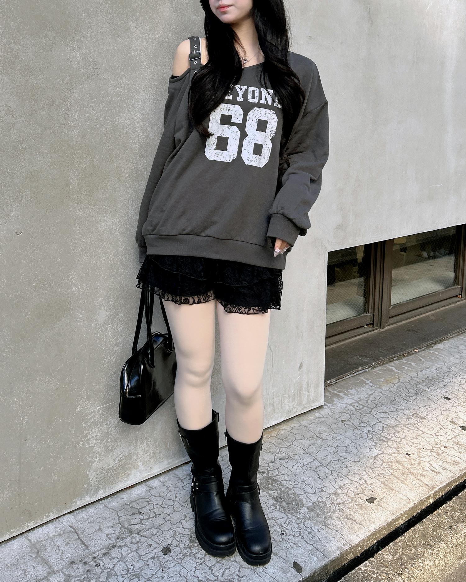 ショルダー部分にスタイリッシュなハトメベルトをあしらったスウェットトップスです。