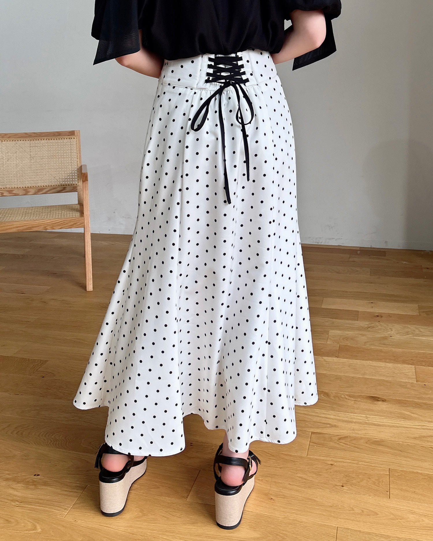 バックにはレースアップデザインを取り入れ、後ろ姿も抜かりナシ。