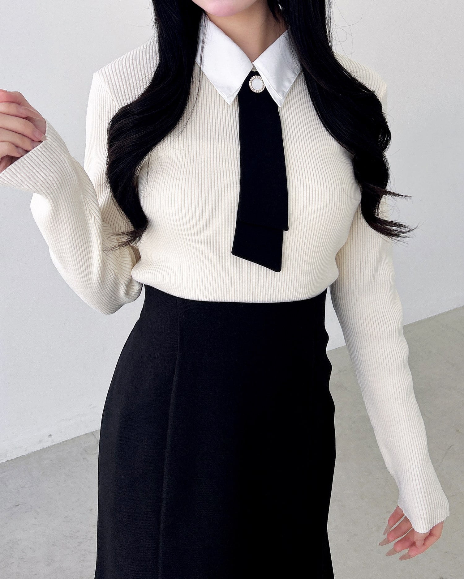 【4/8 2時までの限定価格】【WEB限定】襟付ボウタイニット