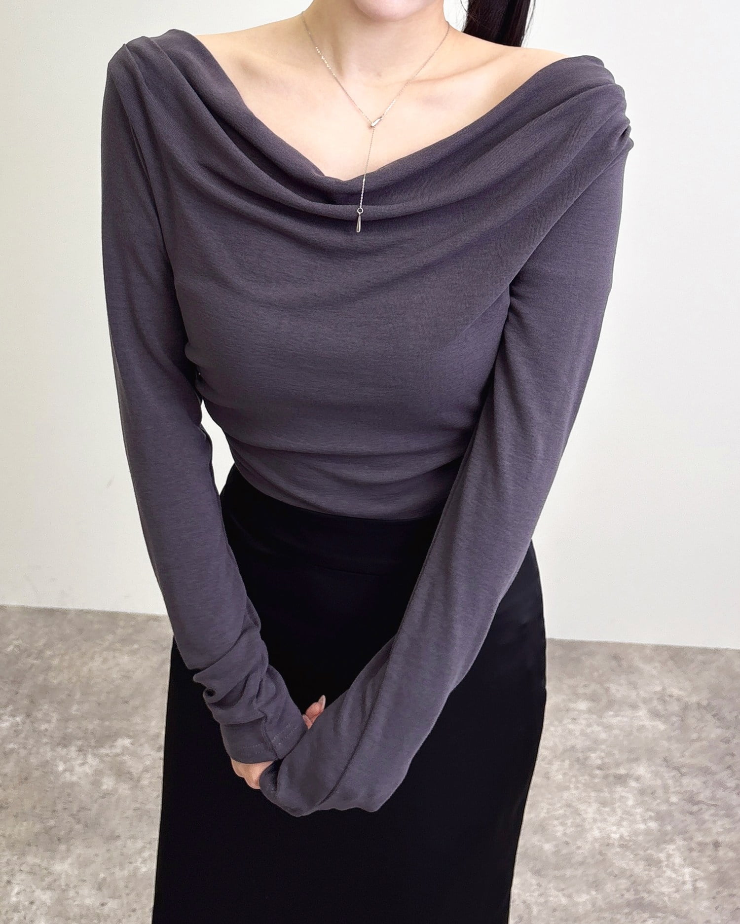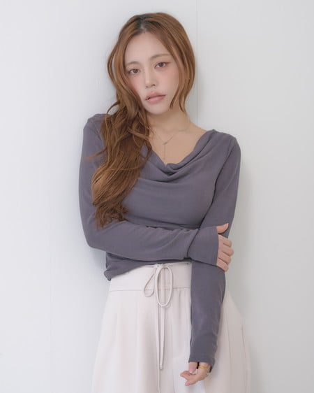 デコルテラインを美しく見せるドレープネック。