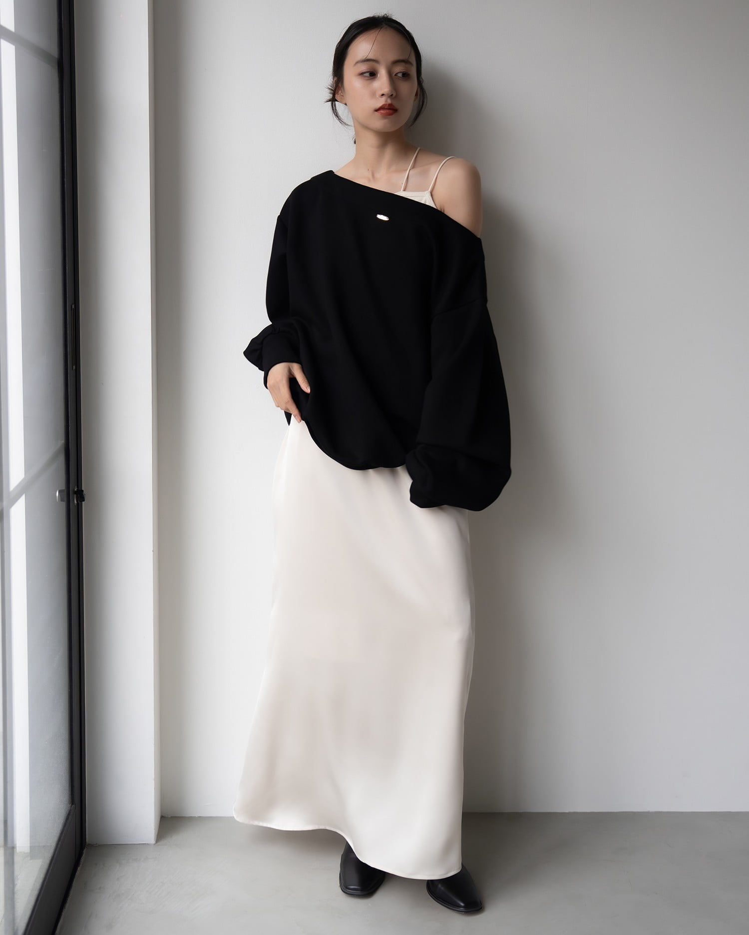 シンプルなワンカラーも表情たっぷりに着こなせます。