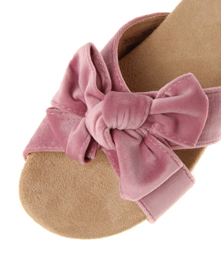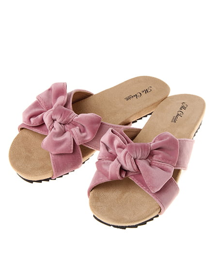 履いているだけで可愛くて見とれてしまうリボンサンダル。着回しや履きやすさ、すべて◎のデザインサンダル。足元にボリュームを出すことで、美脚効果の期待もできるこだわりアイテム。ふっくらと柔らかいベロア素材で、大人のリラックススタイルを演出。今シーズンのトレンドを、しっかりと押さえた一足です。