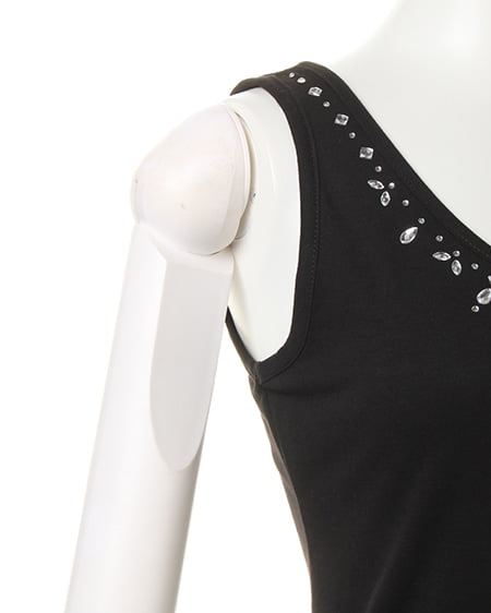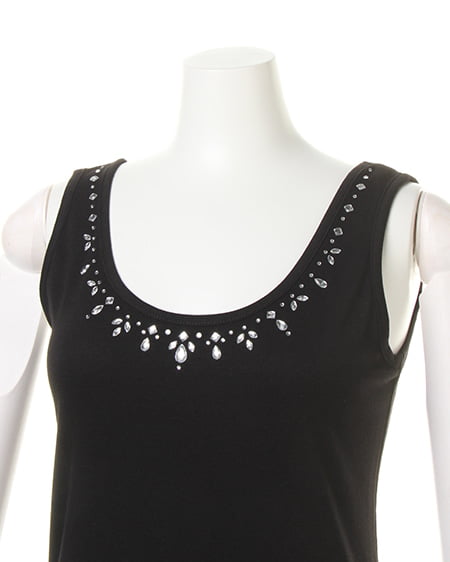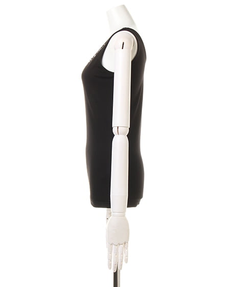 襟元に装飾を施したシンプルなタンクトップです。一枚で着るのはもちろん、トレンドのVネックやスキッパーからちら見せするコーデもオススメ◎丈が長めで、ボトムにインしたときにスッキリしたシルエットを保つことができます。適度にヘルシーさを感じるUネックの開き具合にこだわり、デコルテを美しく魅せつつ、下着が見えない安心感はしっかりとキープ。