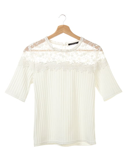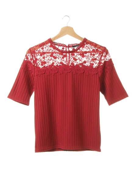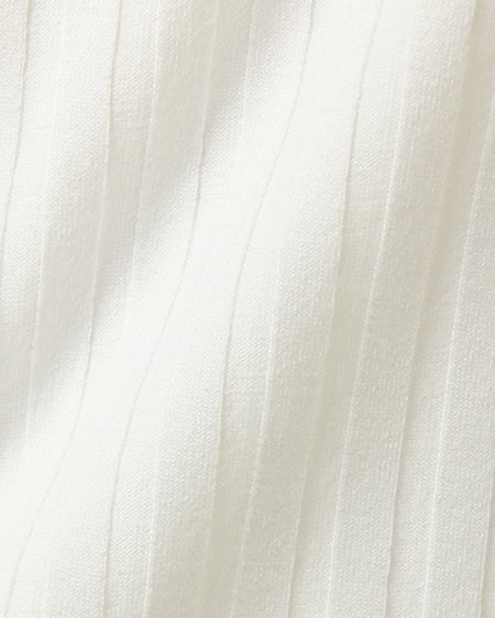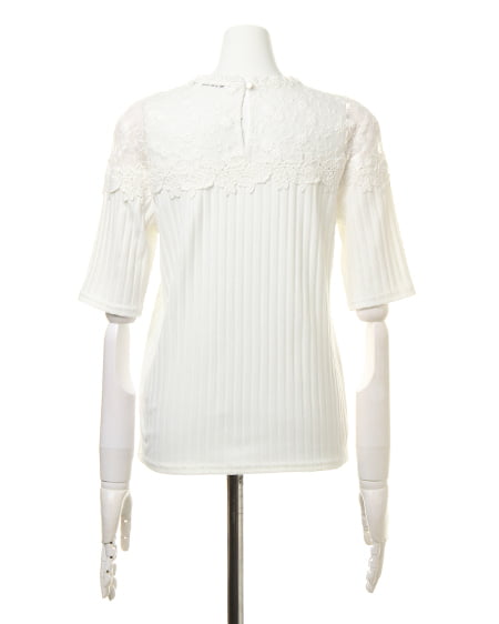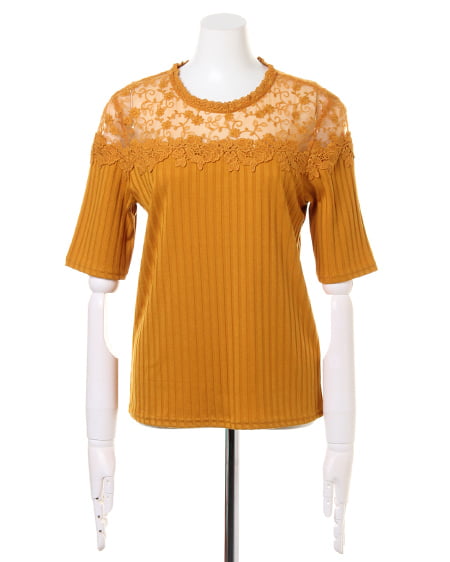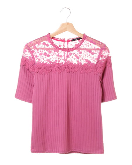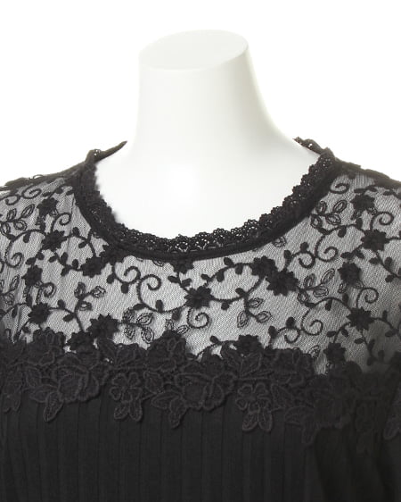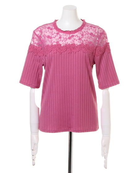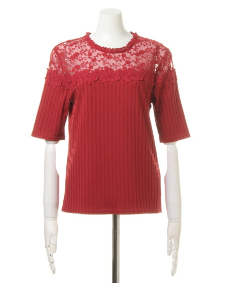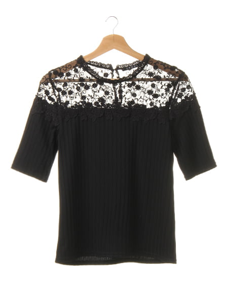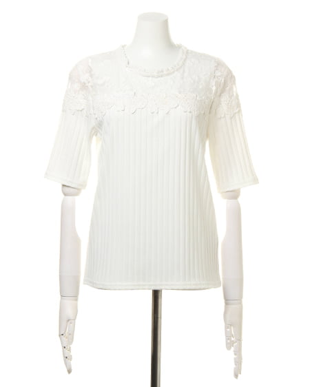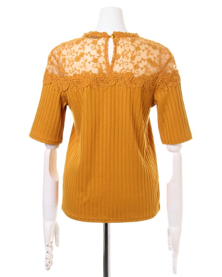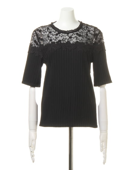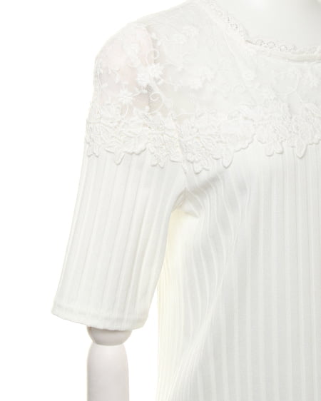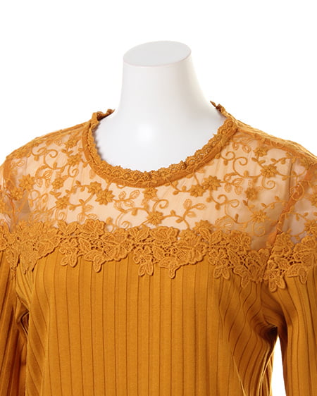 カジュアルなリブトップスに刺しゅうレースをあしらって、クラシカルな印象のトップスに仕上げました。デコルテを覆うプチハイネックが新鮮。伸縮性のある素材と、ボディに沿うワイドめのリブでIラインを強調。ちょっぴり長めの5分袖との組み合わせで、着やせをあおります。注目のワイドパンツと合わせて、メリハリのあるスタイルを楽しんで。
