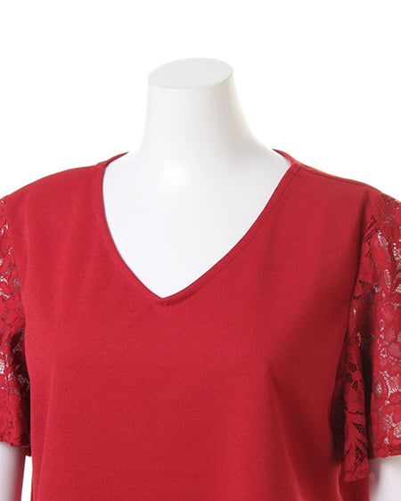 伸縮性抜群のサラッとした生地に、フレアーレースの袖の組み合わせがクラシカルな1枚。広めに開いたVネックは、顔周りをすっきり見せてくれます。ややゆったりめの身頃で、リラックスした着心地。オンオフ問わずに合わせられるので、1枚持っていると重宝間違いなし。スカートと合わせるのはもちろん、デニムと合わせたスタイルもこなれた雰囲気に。