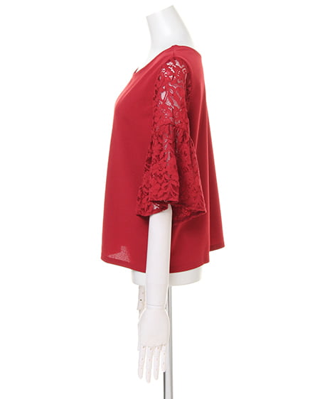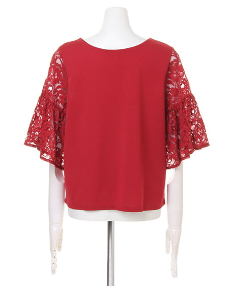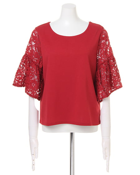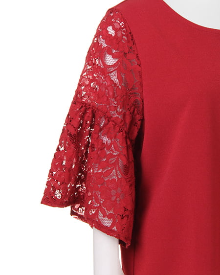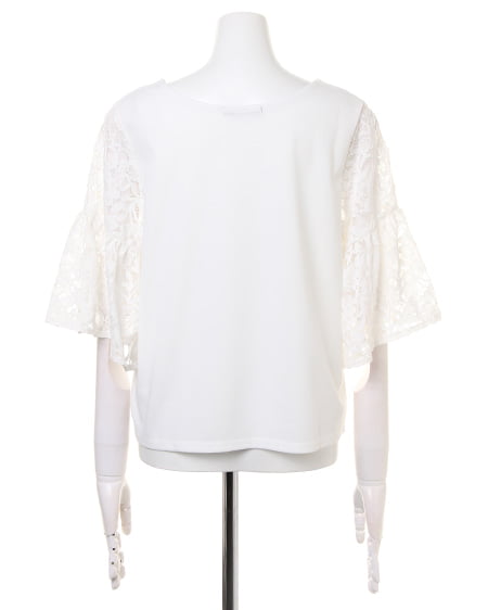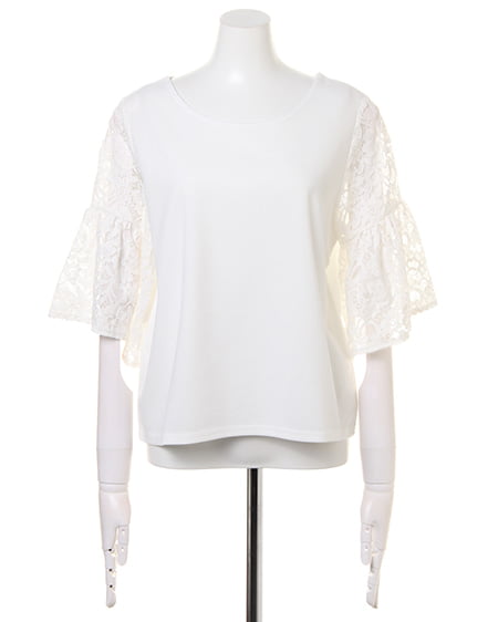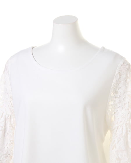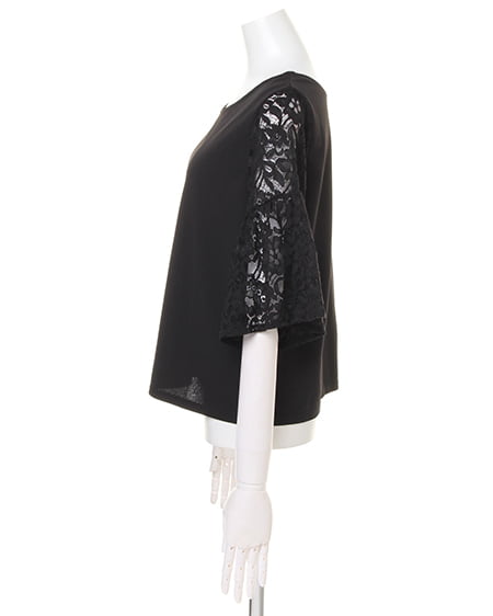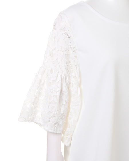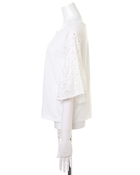 フレアレースの袖が、クラシカルな印象のトップス。伸縮性抜群で程良くハリのあるポンチ素材は、サラッとした肌触りで着心地抜群。ややゆったりめの身頃で、リラックスした着心地です。繊細なフラワーレースで仕立てた袖は、ほんのり肌が透けるデザインが魅力的。スカートと合わせてキレイめにまとめるのはもちろん、デニムなどと合わせてカジュアルダウンするのもオススメ。