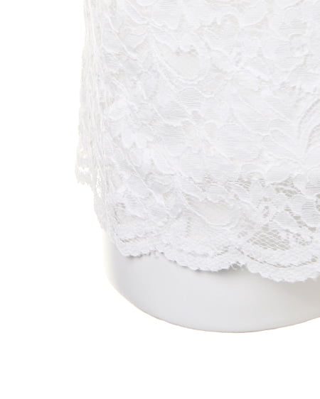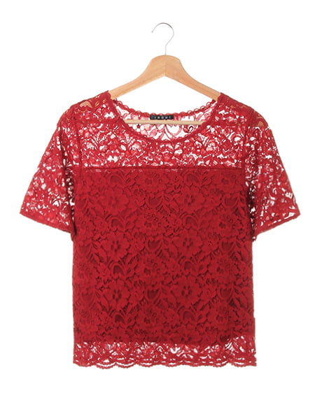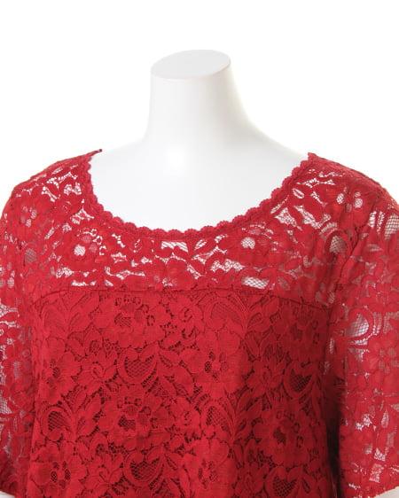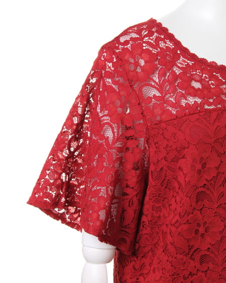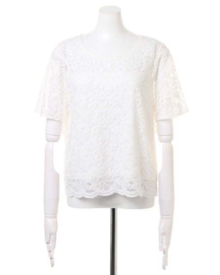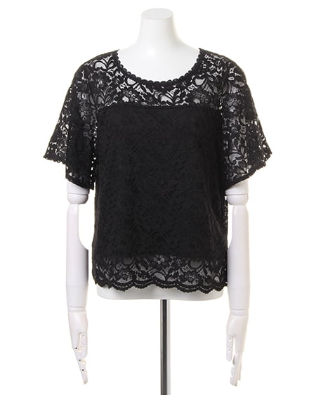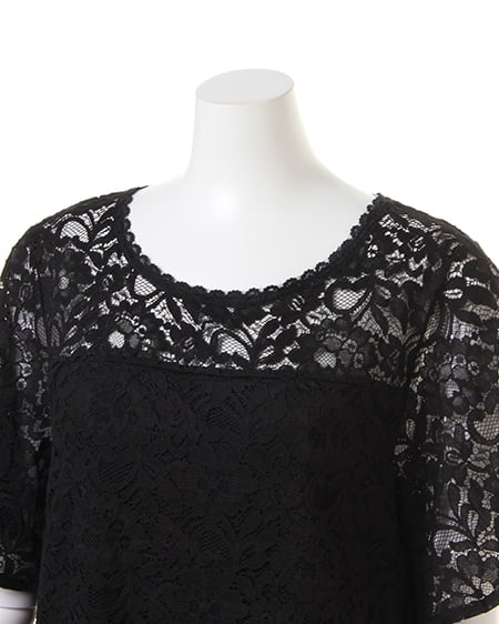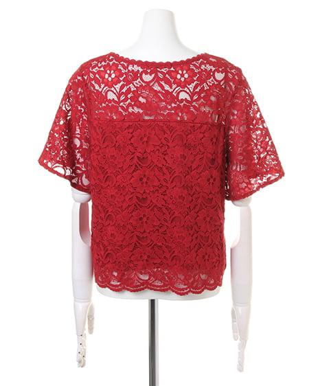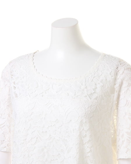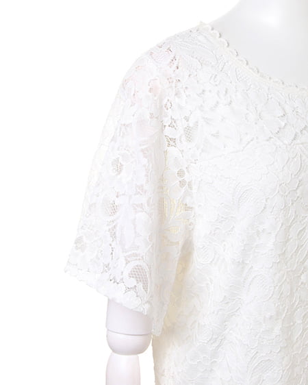 全体を繊細なレースで仕立てた、レディなトップス。高めのトップ位置で切り替えを入れているので、ゆったりめの身頃ながらもすっきりとした印象に。襟元と裾は上品な印象の、スカラップデザインになっています。ボディ部分には、やわらかな裏地付きで安心して着られます。あえて裏地を張っていないデコルテ部分と袖部分は、素肌がほんのり透けるので表情の変化を楽しんで。