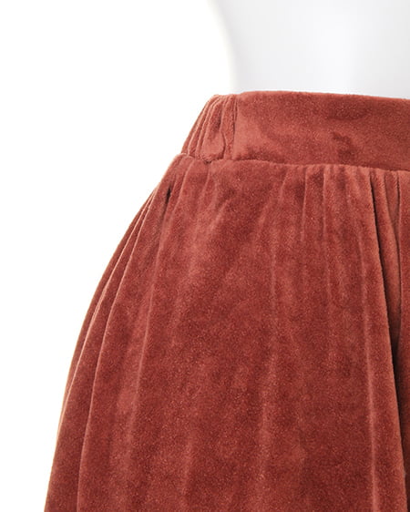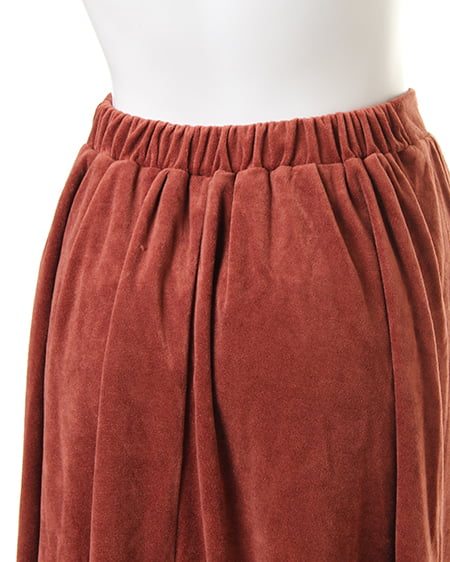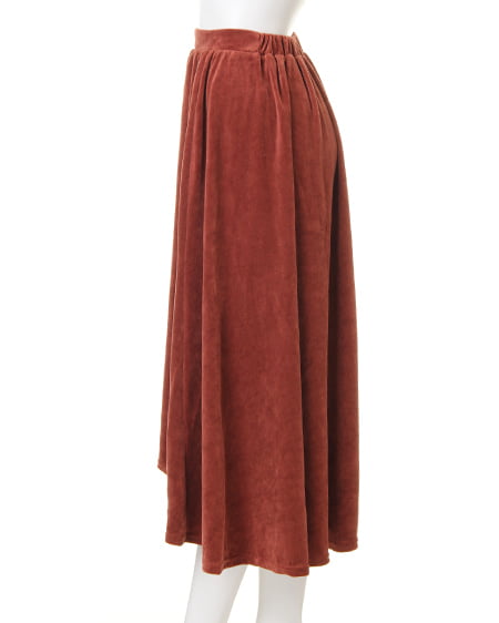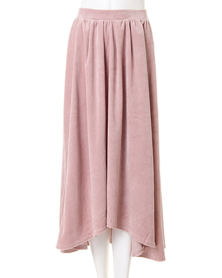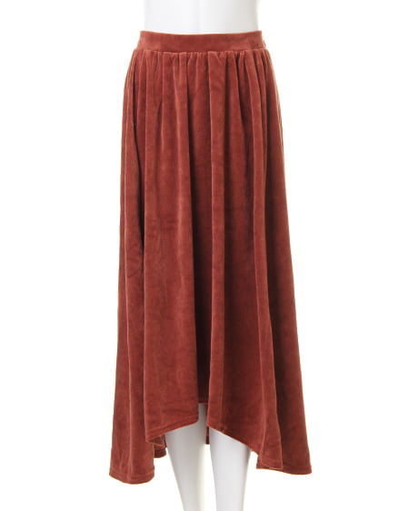 ふんわり広がる美シルエットが魅力の、イレヘムスカート。デイリーコーデにかかせないイレヘムスカートに、ベロア調の素材が登場。柔らかさと光沢感が魅力の素材で、歩く度に揺れるデザインを引き立てます。ウエスト部分をゴムにすることで、ストレスフリーな履き心地に。着脱も簡単なのに、全体的にフラットになったゴムデザインはトップスをINしたときのシルエットまで美しく演出◎。