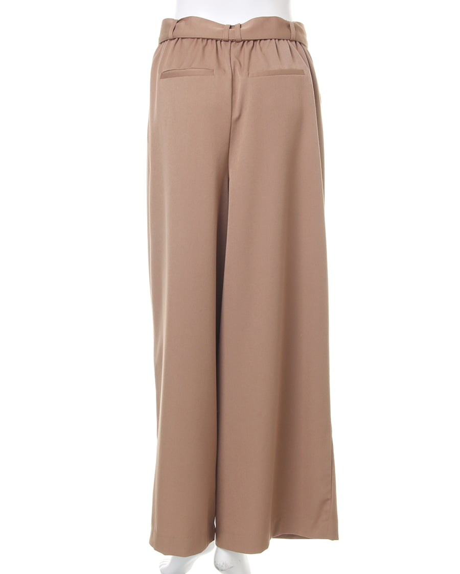 足長効果抜群のワイドパンツは、今やワードローブの必需品。スタイルアップを叶えるだけでなく、リラックスした穿き心地でデイリー使いに◎。ウエストに入れたギャザーから、裾へ向かって落ち感のあるシルエットが魅力です。付属のDカンベルトが、スタイリッシュ。シンプルなデザインで、合わせるトップスを選びません。オンオフ問わずに使える優秀アイテム。