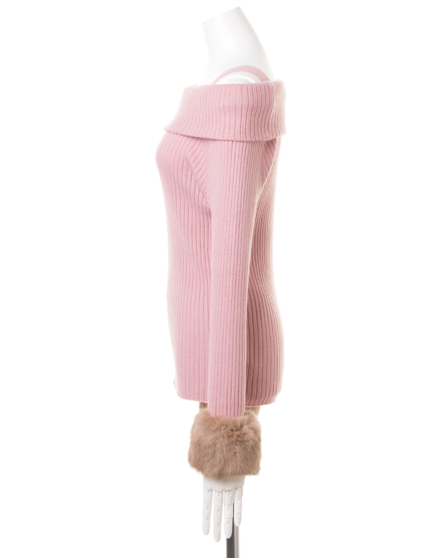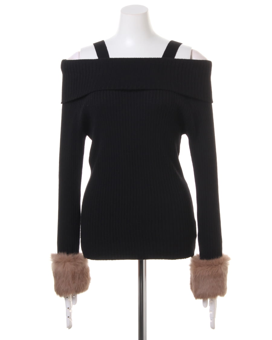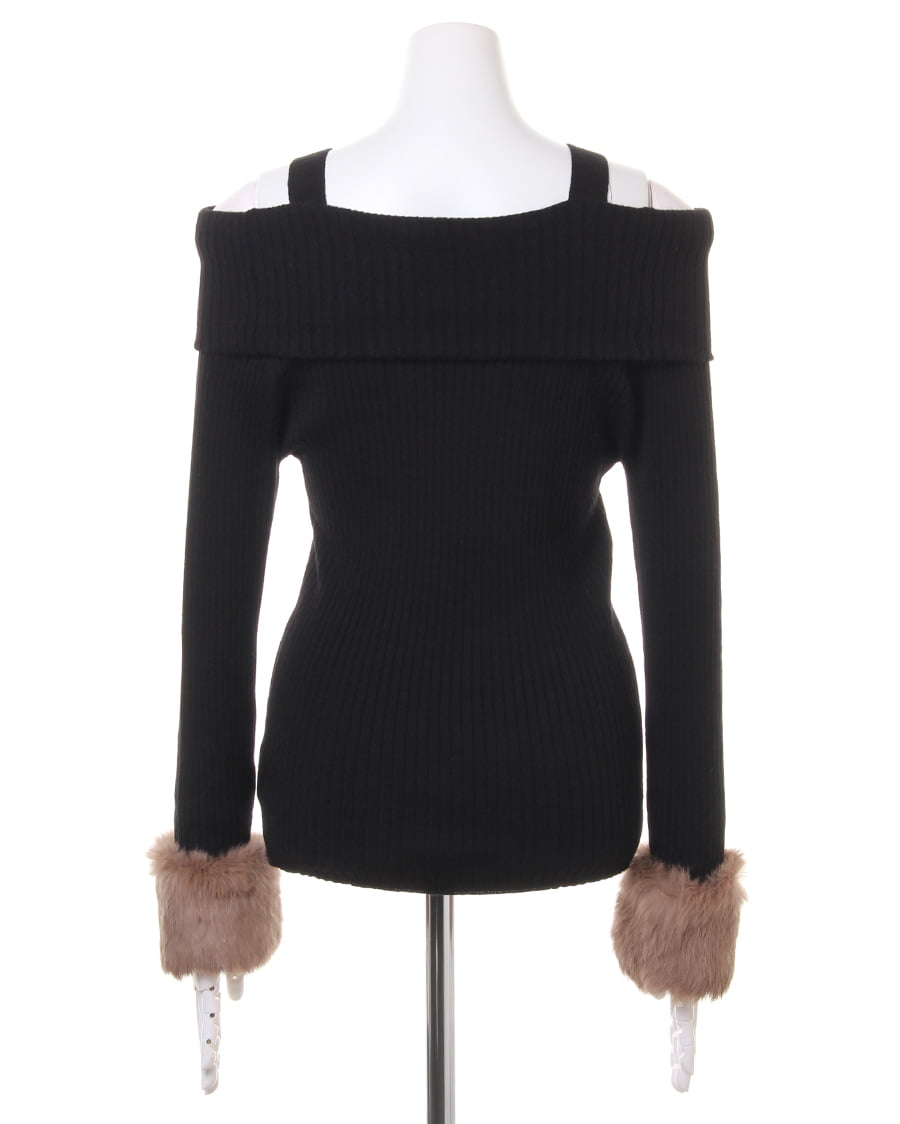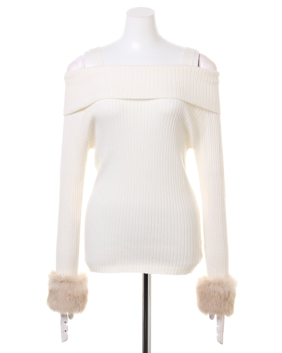 袖ファーオフショルリブニット