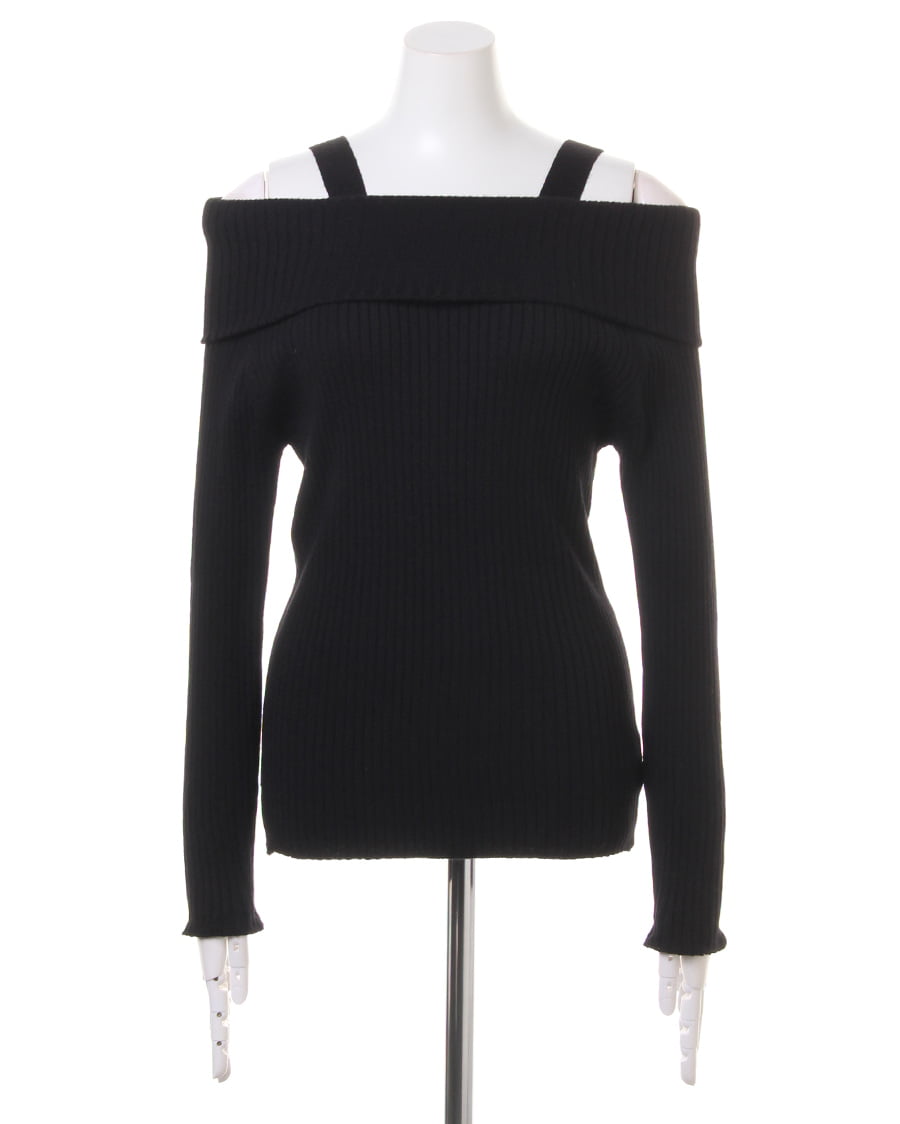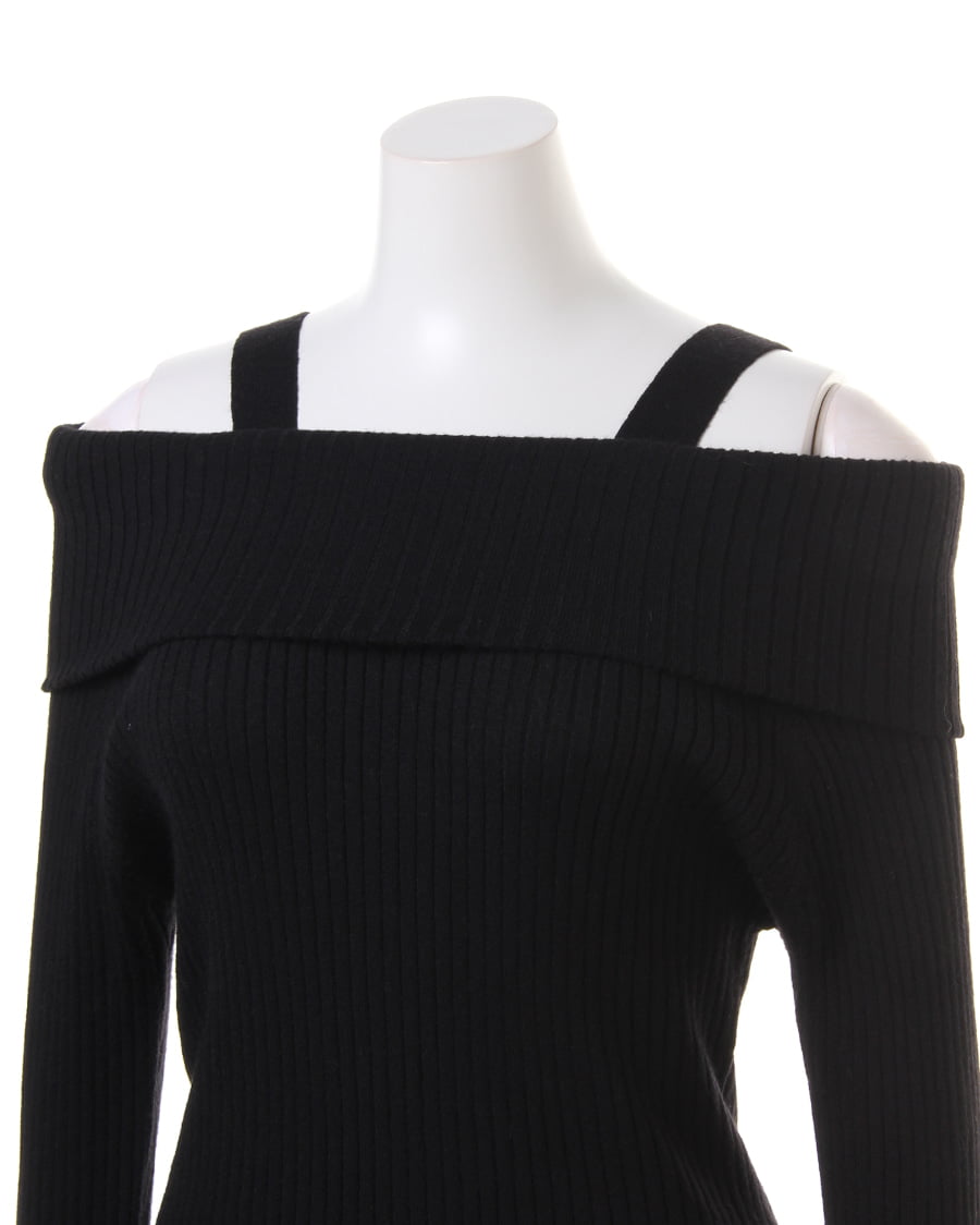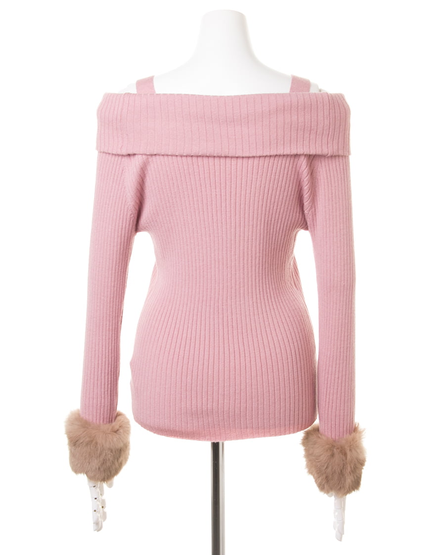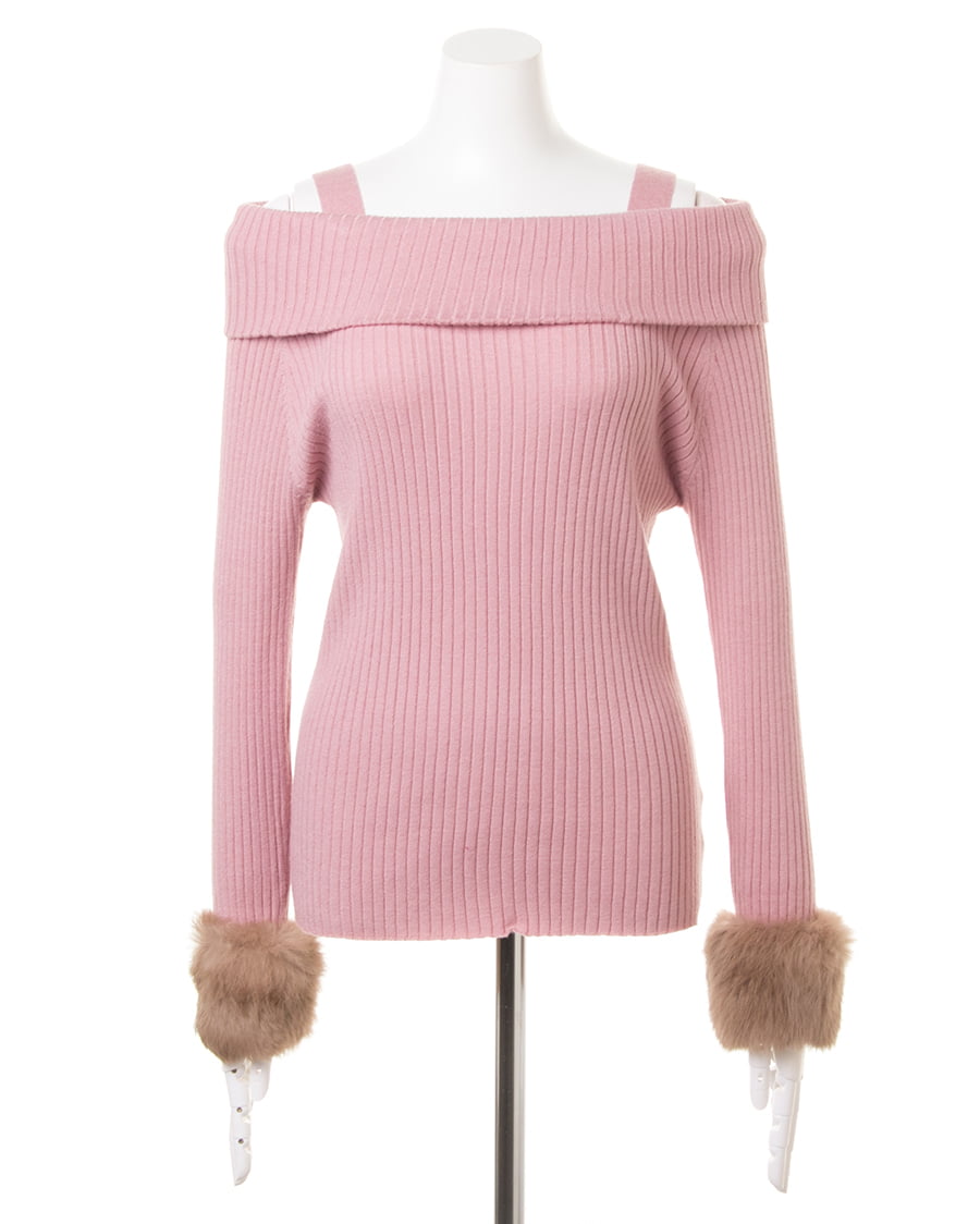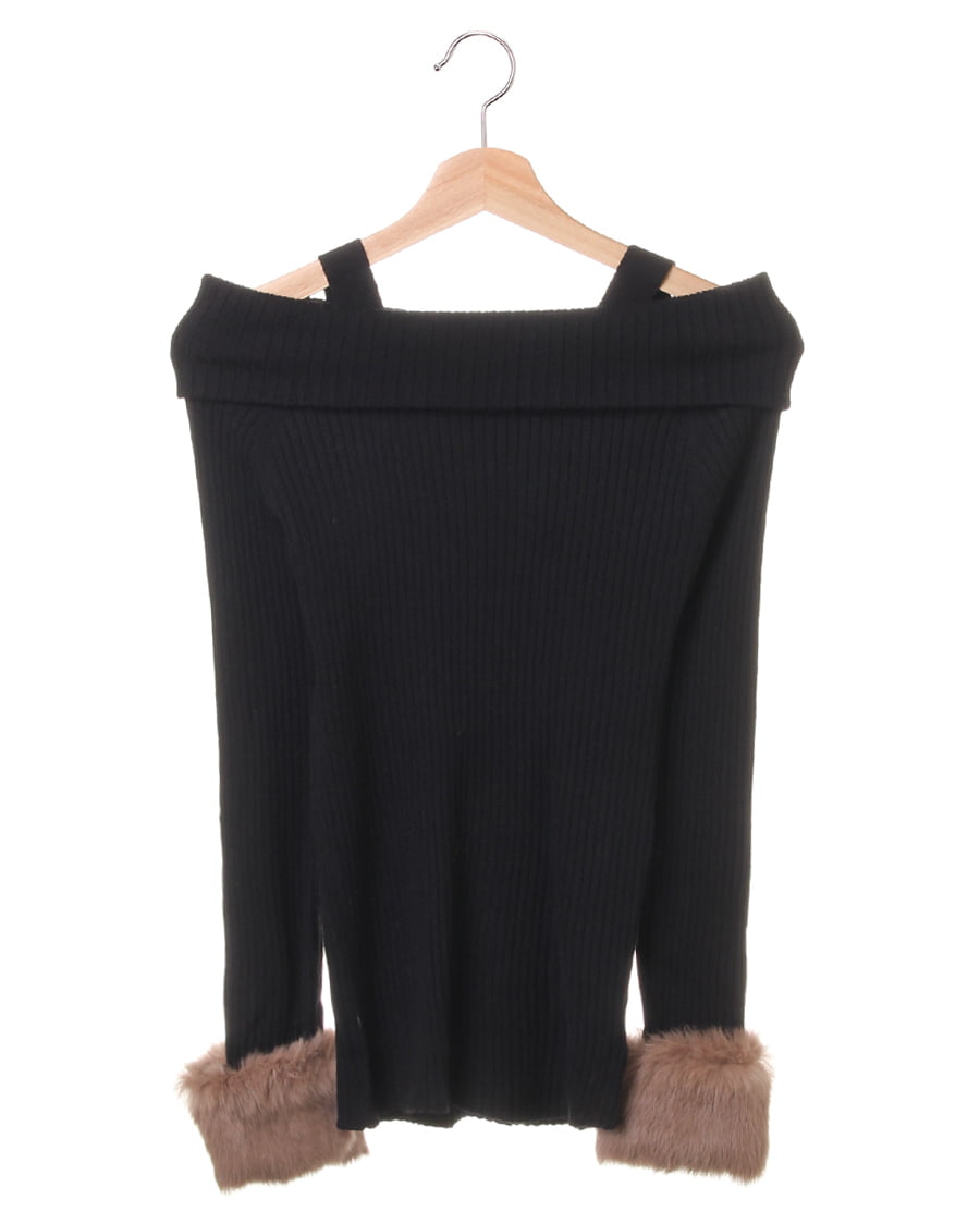 袖ファーオフショルリブニット