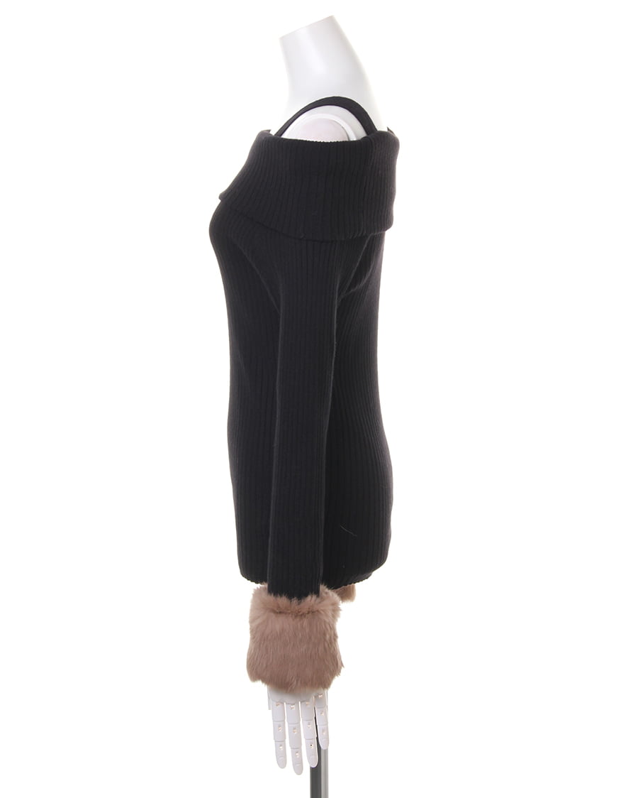 1174-942442 袖ファーオフショルリブニット