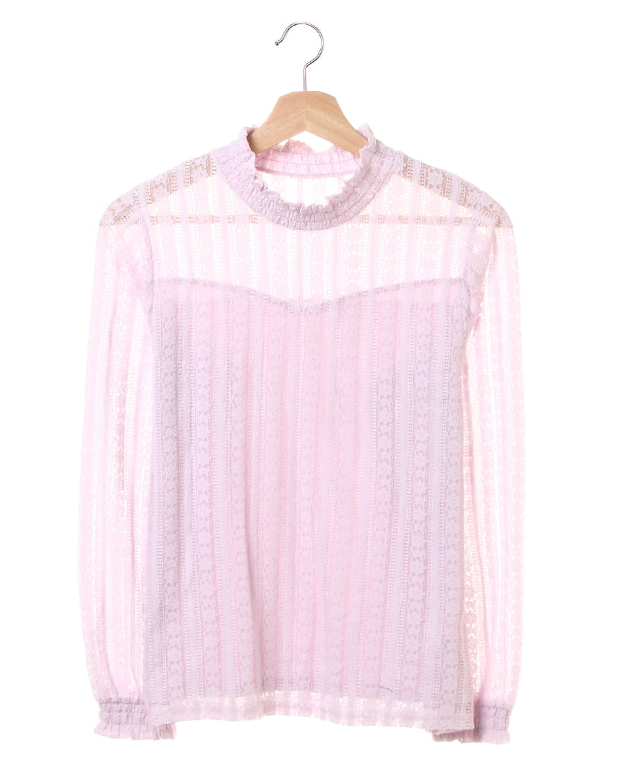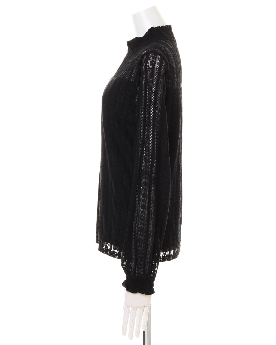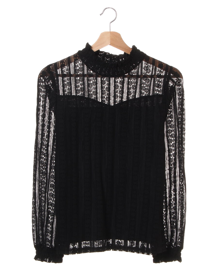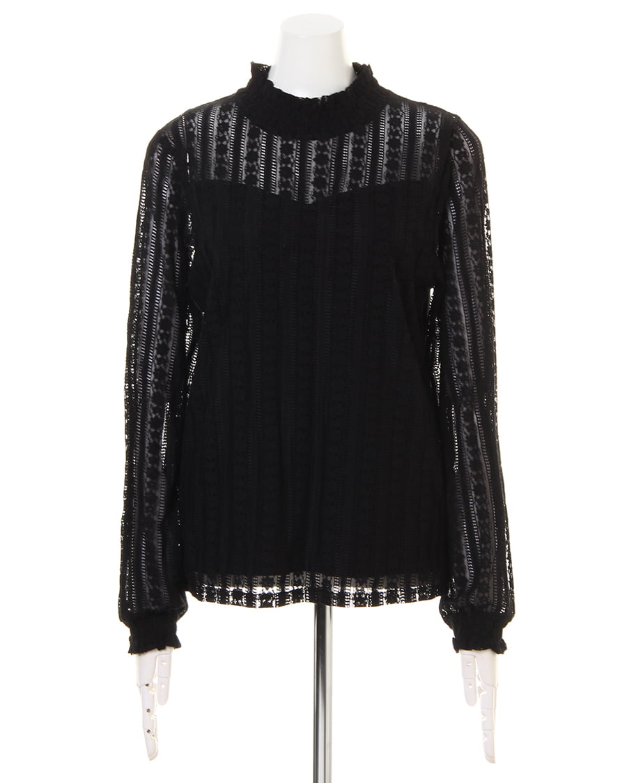 存在感のあるストライプレースの生地を採用したハイネックは、1枚ではもちろんレイヤードスタイルにも重宝するワードローブに揃えたい万能アイテム。スウェットやニットの中に合わせてももたつかずすっきり着られます。ベアトップのような裏地がついているのでインナーに困らず着用できるのも魅力的。存在感があるのでシンプルなコーデにプラスするだけで旬のスタイルが完成します。