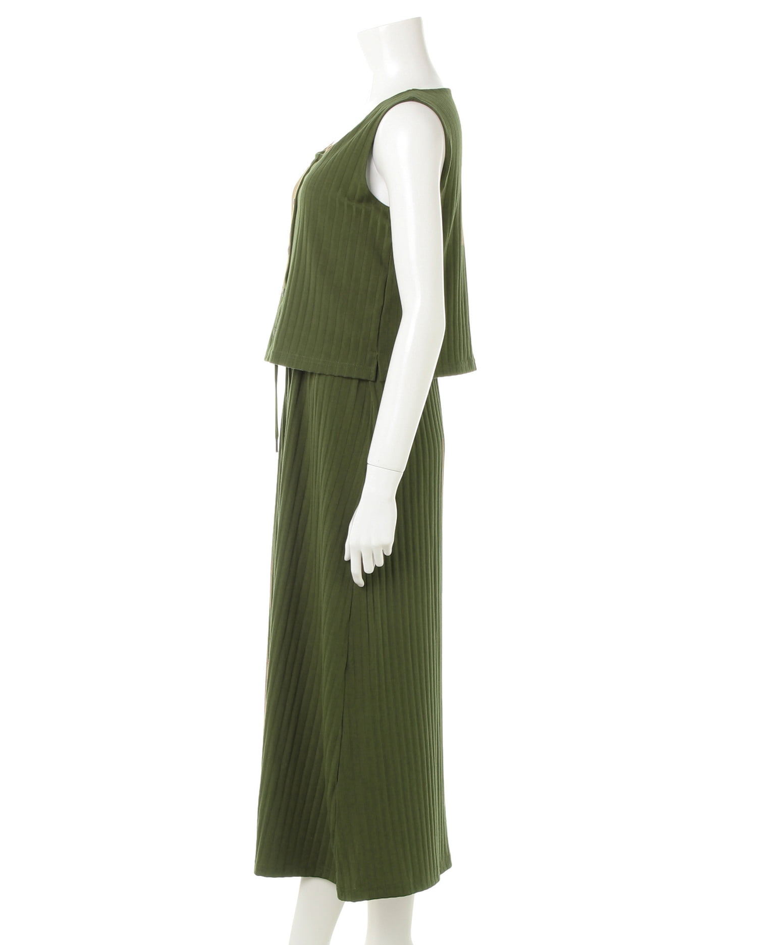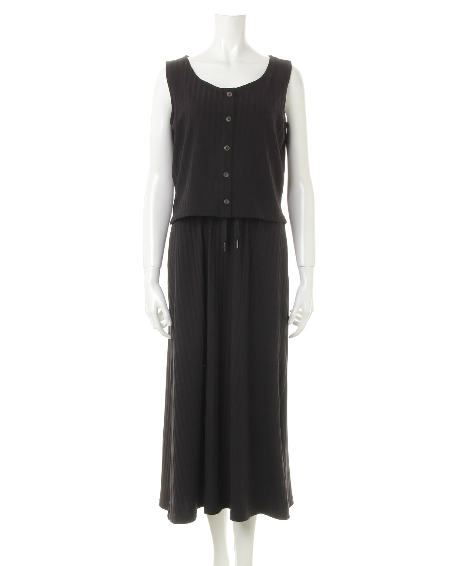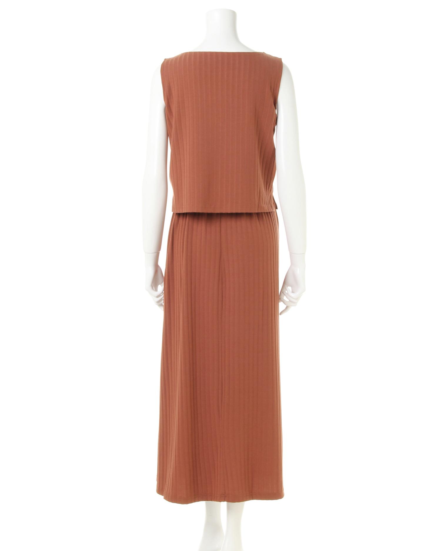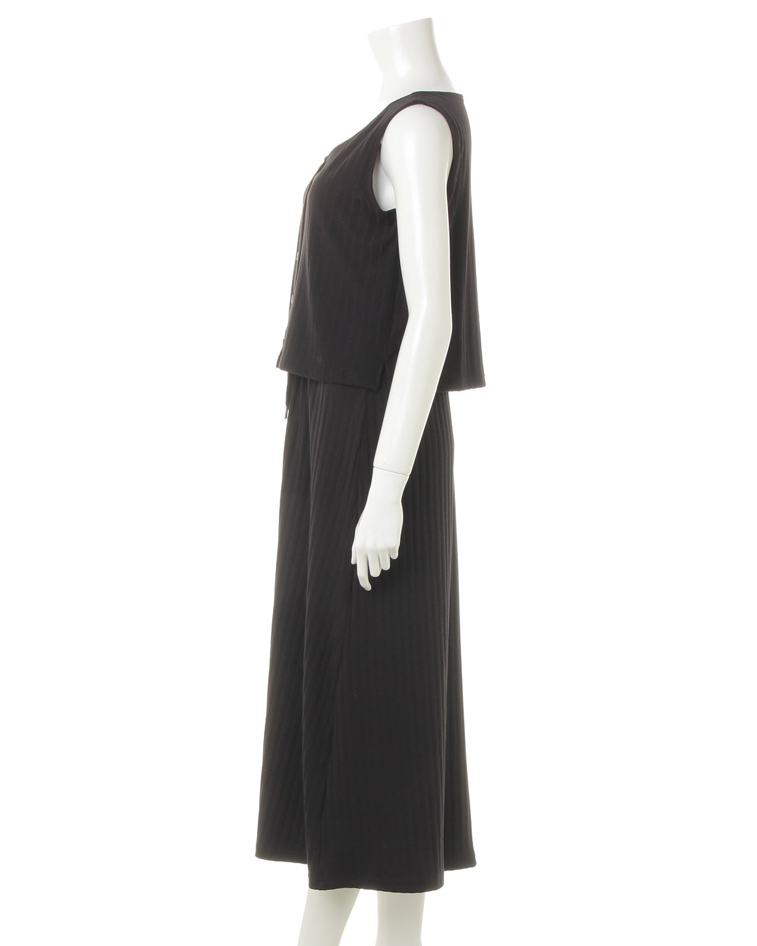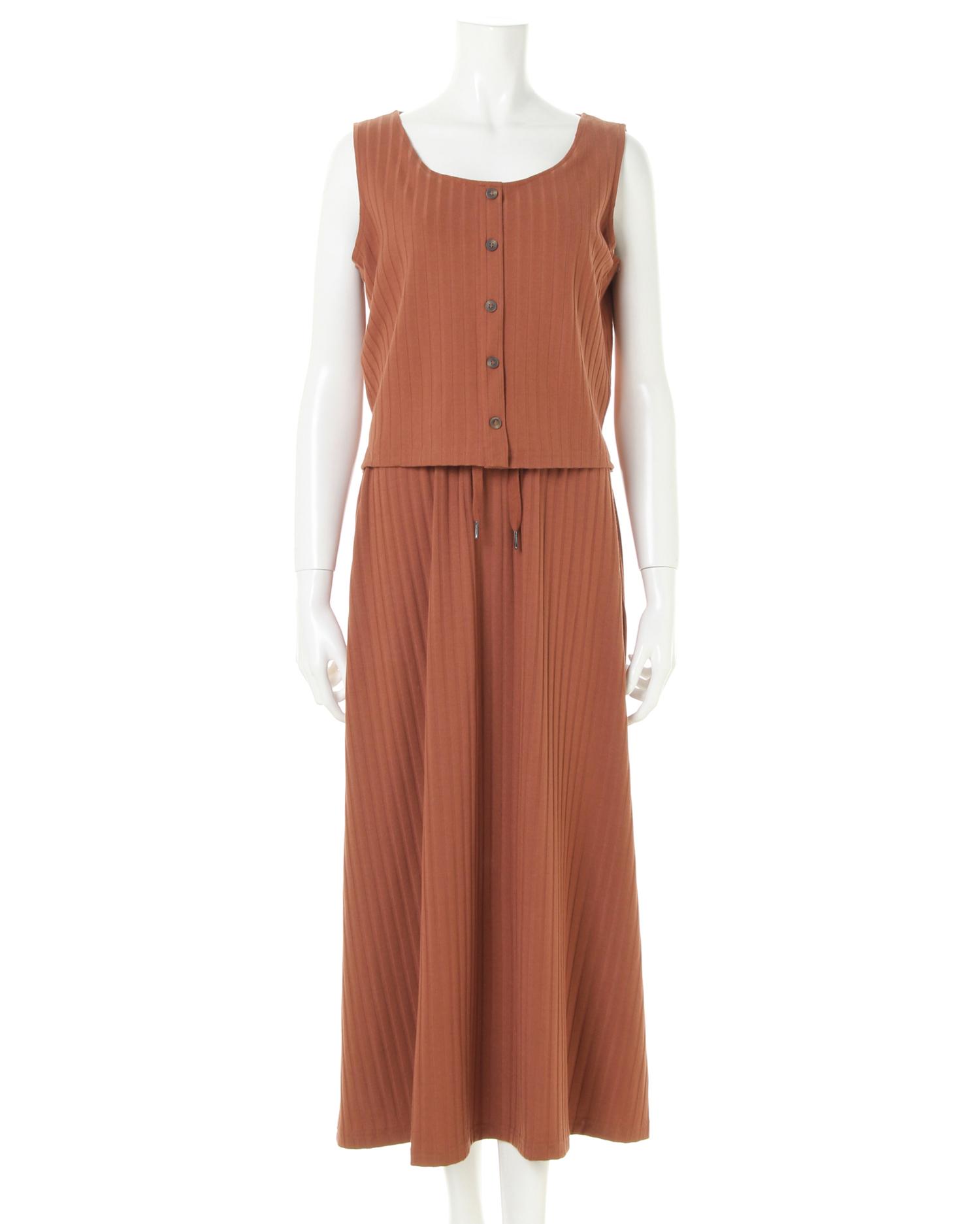 柔らかく伸縮性抜群のリブ素材がリラックスした着心地を叶えるワンピース。トップス部分はコンパクトシルエットで上半身をすっきり華奢に見せてくれるノースリーブでデザイン。裾に向かって広がるロング丈のスカートとの組み合わせで着るだけでスタイルアップに導きます。シンプルなワンカラーにフロント部分の飾りボタンがアクセント。ベーシックカラーで着回しやすいのも魅力です。