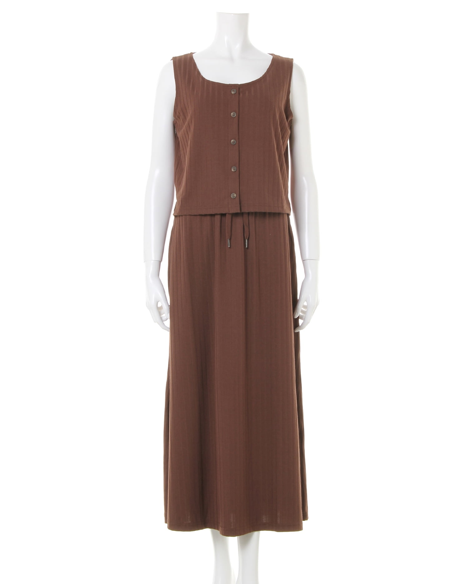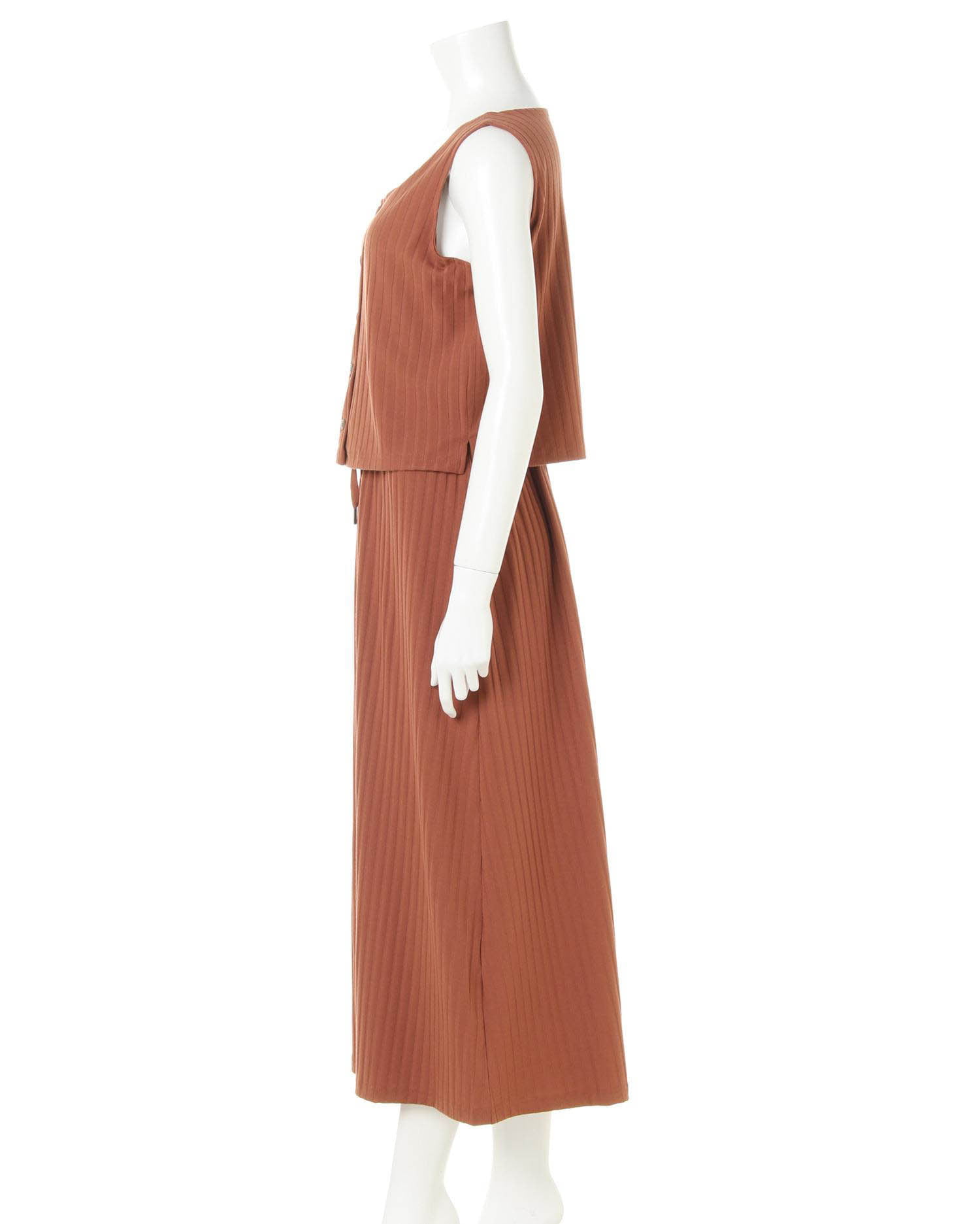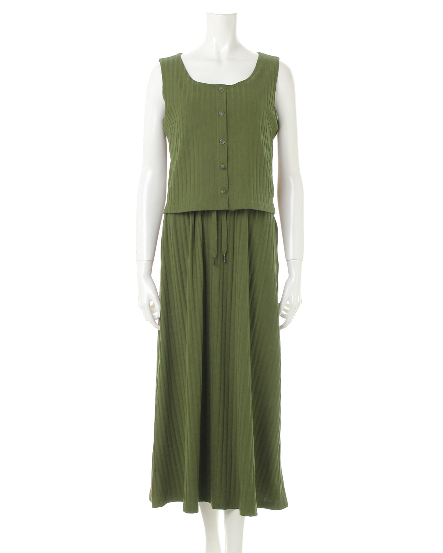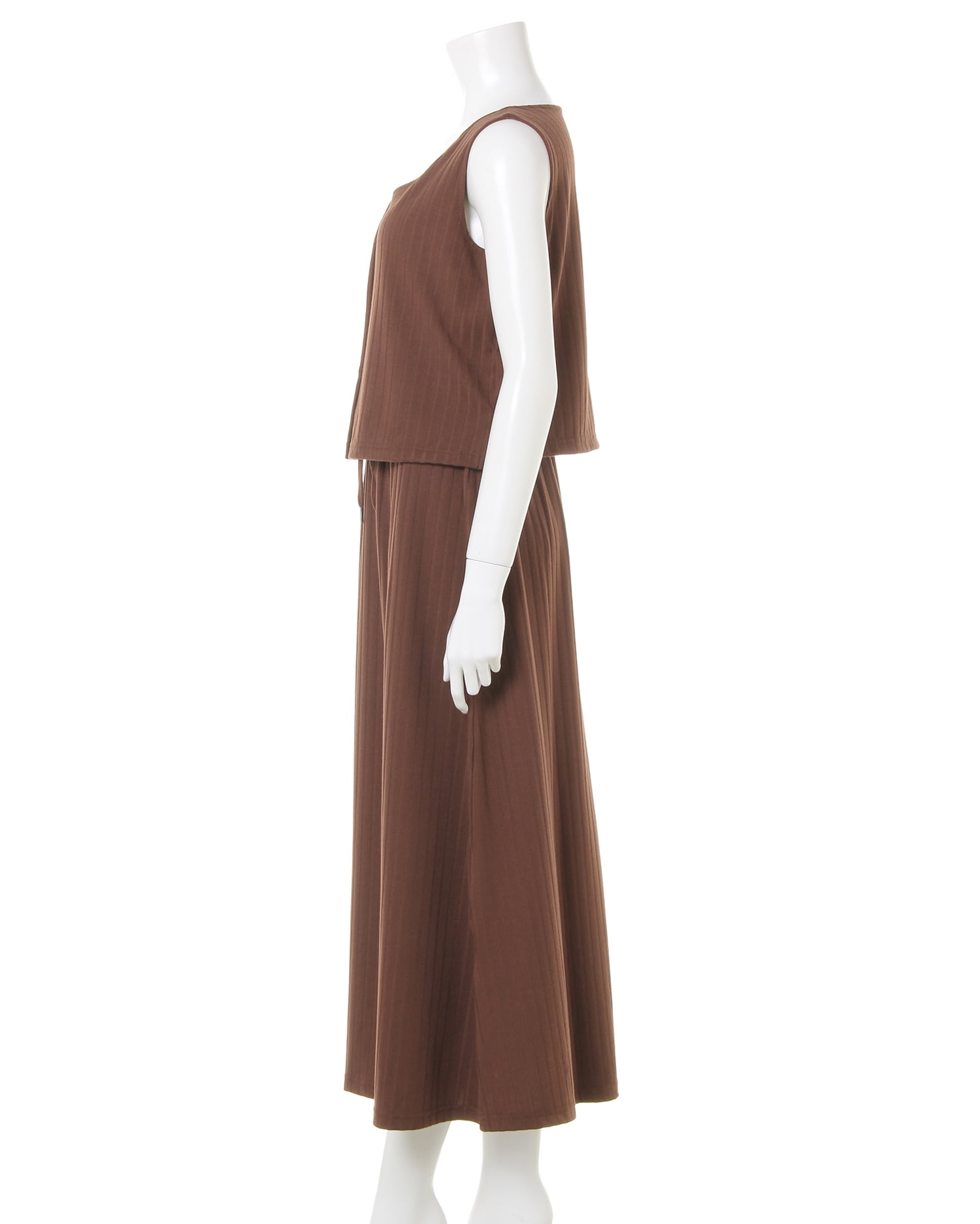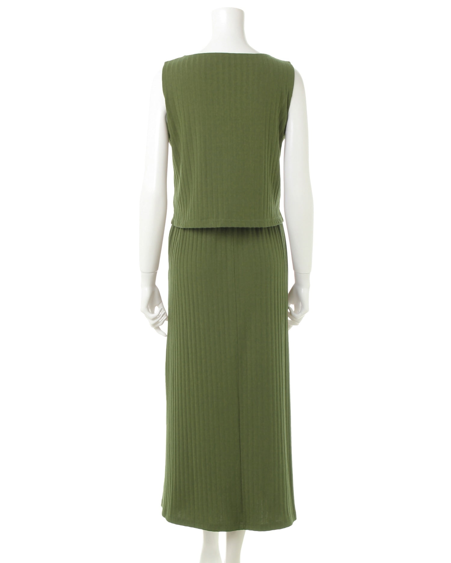 柔らかく伸縮性抜群のリブ素材がリラックスした着心地を叶えるワンピース。トップス部分はコンパクトシルエットで上半身をすっきり華奢に見せてくれるノースリーブでデザイン。裾に向かって広がるロング丈のスカートとの組み合わせで着るだけでスタイルアップに導きます。シンプルなワンカラーにフロント部分の飾りボタンがアクセント。ベーシックカラーで着回しやすいのも魅力です。