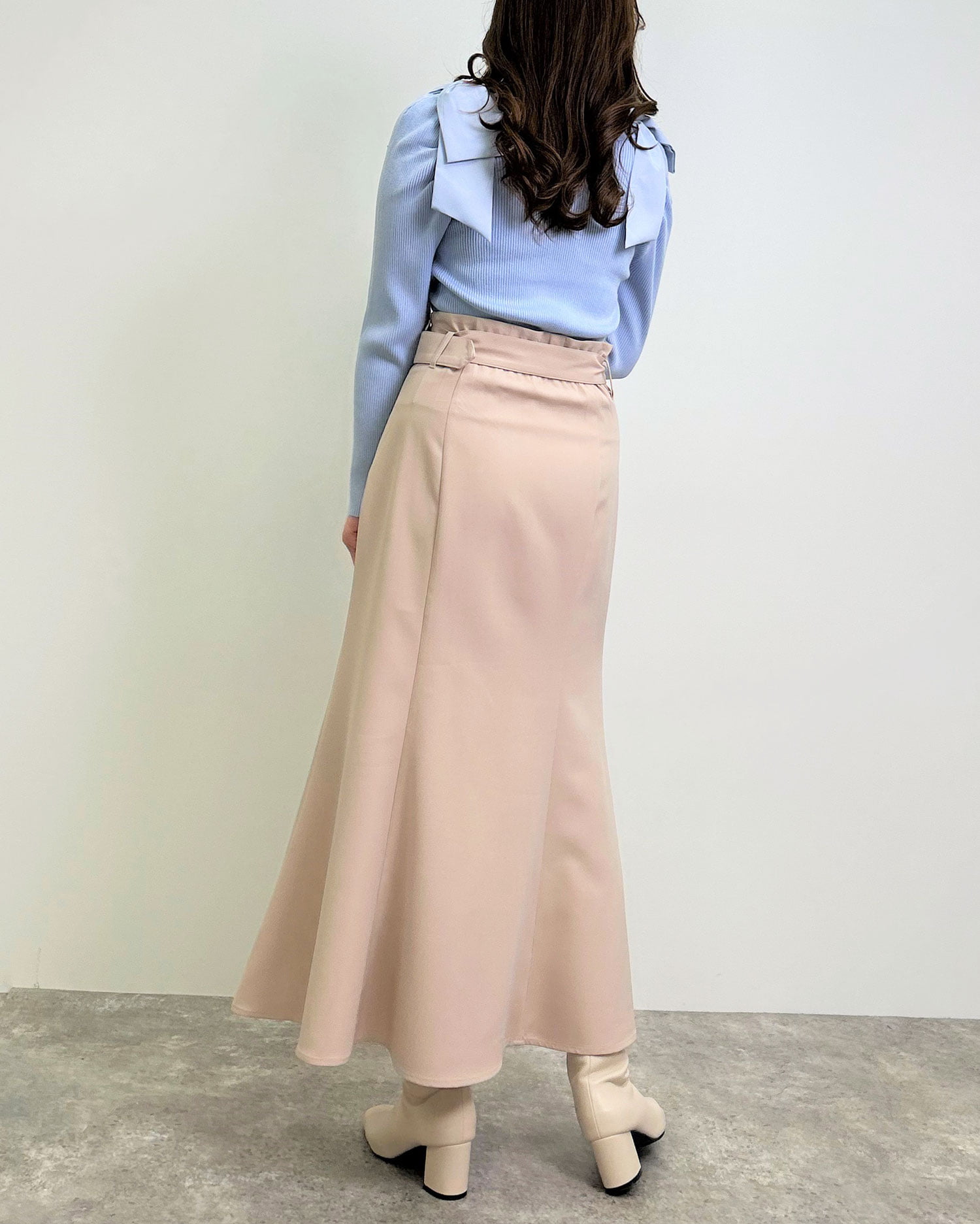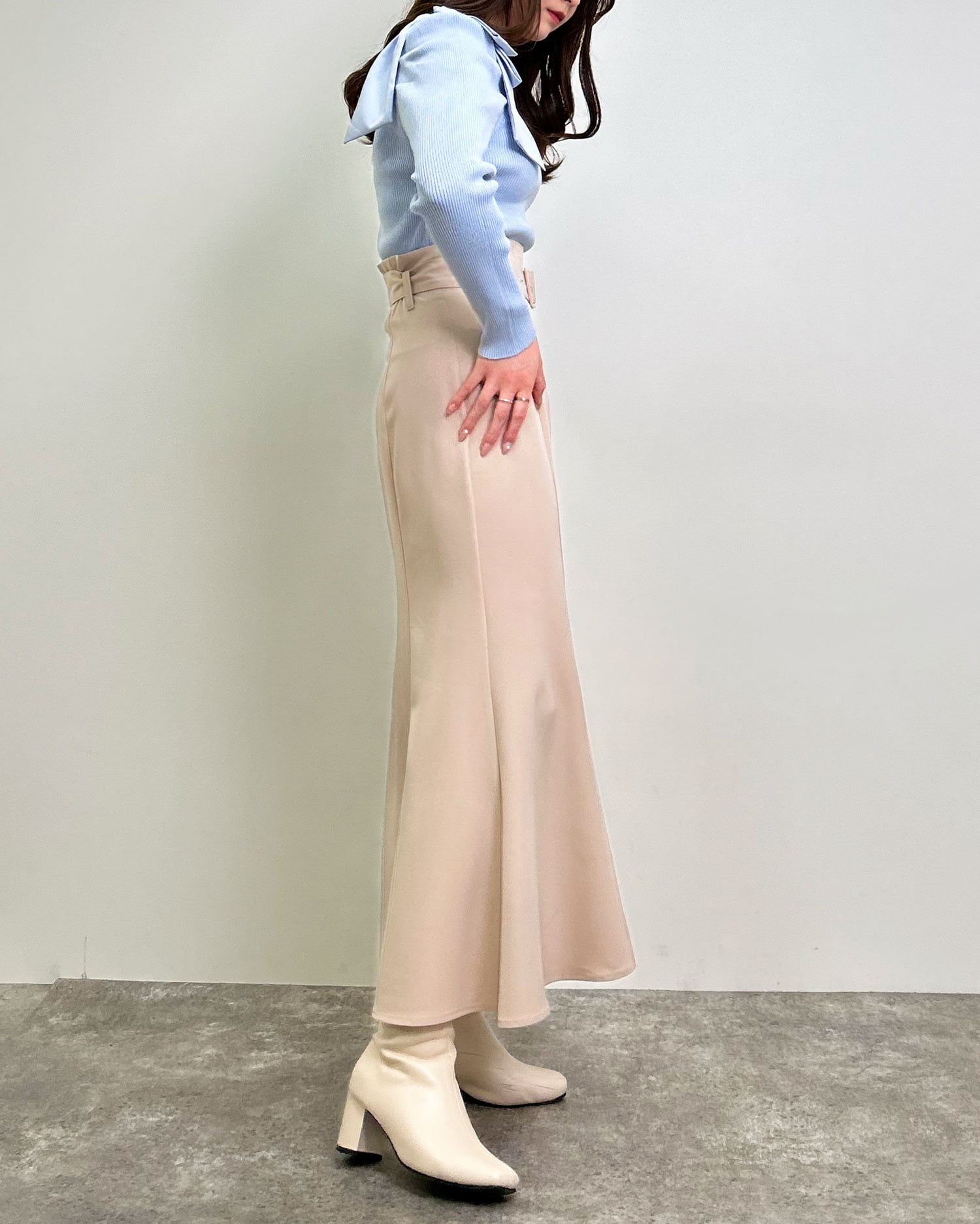 伸縮性のあるやわらかなリブ生地がボディラインに程よく沿い、女性らしいシルエットを叶えます。