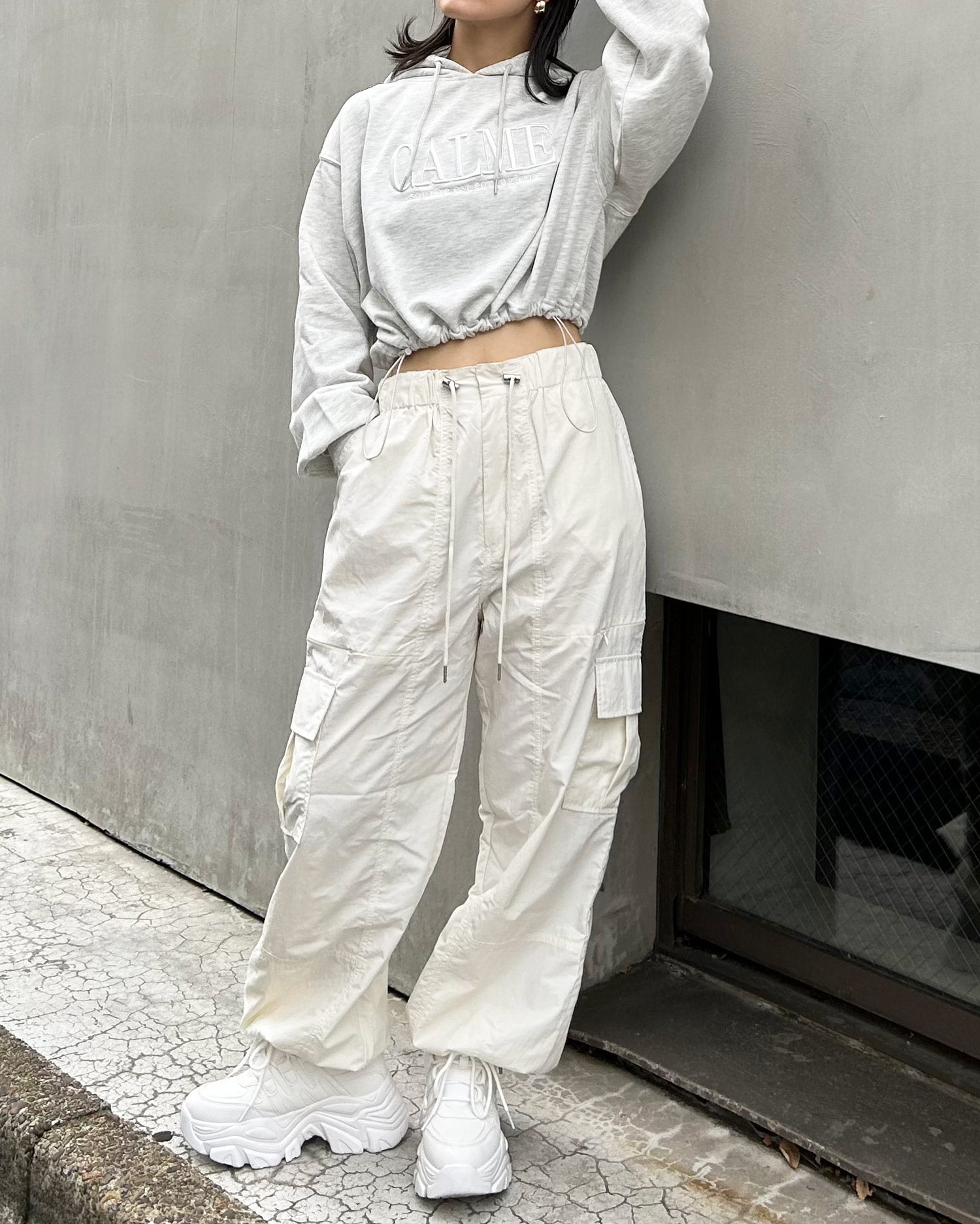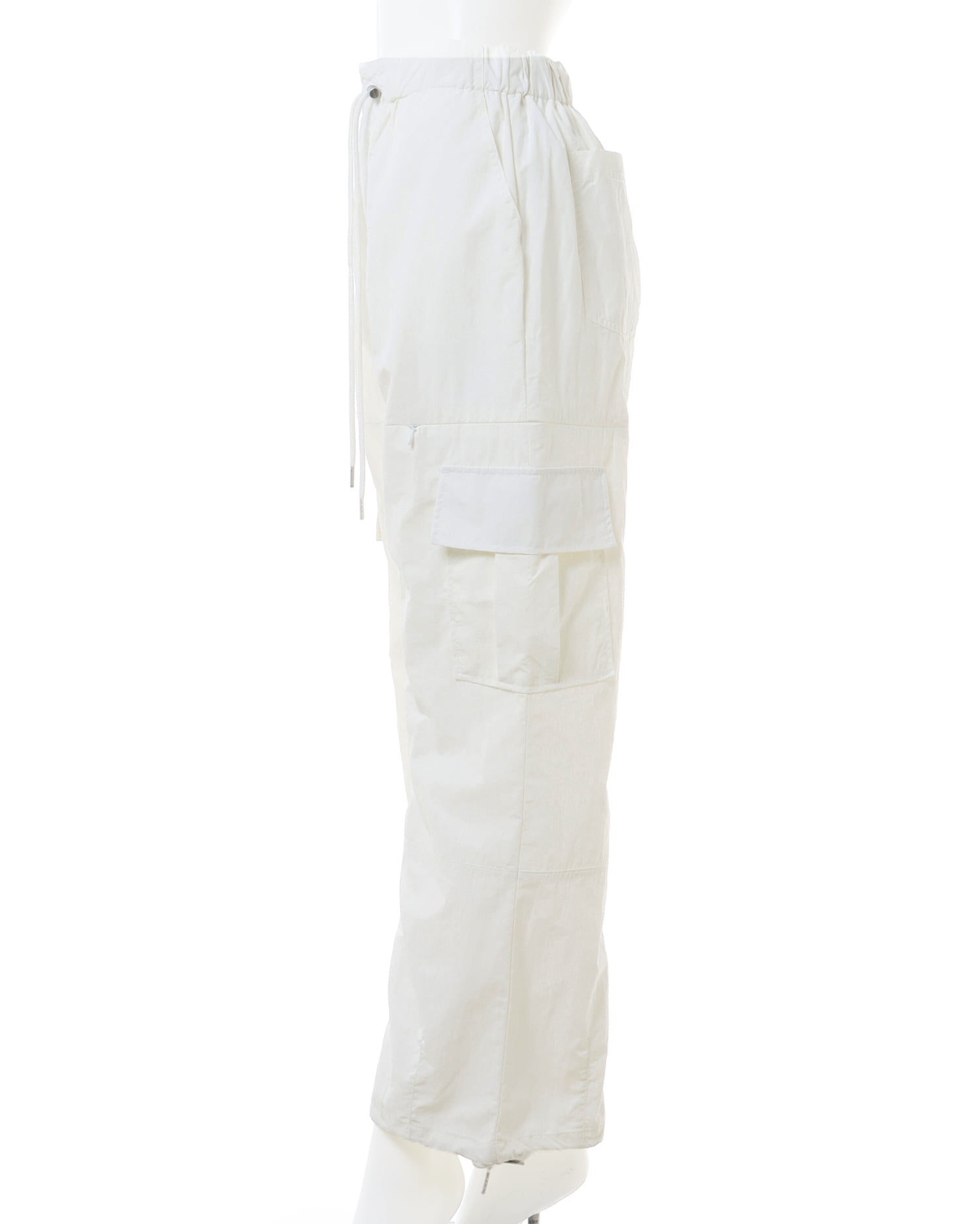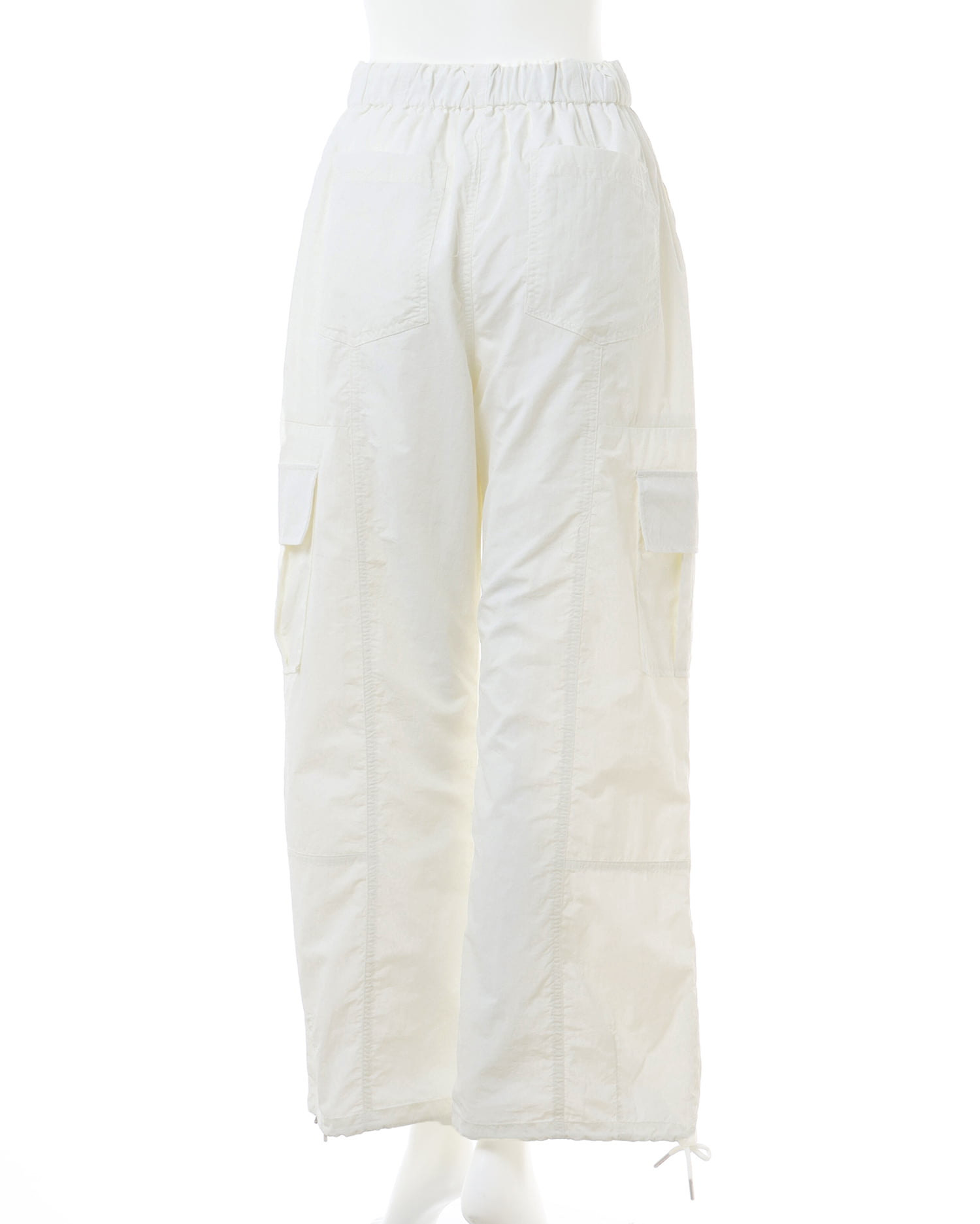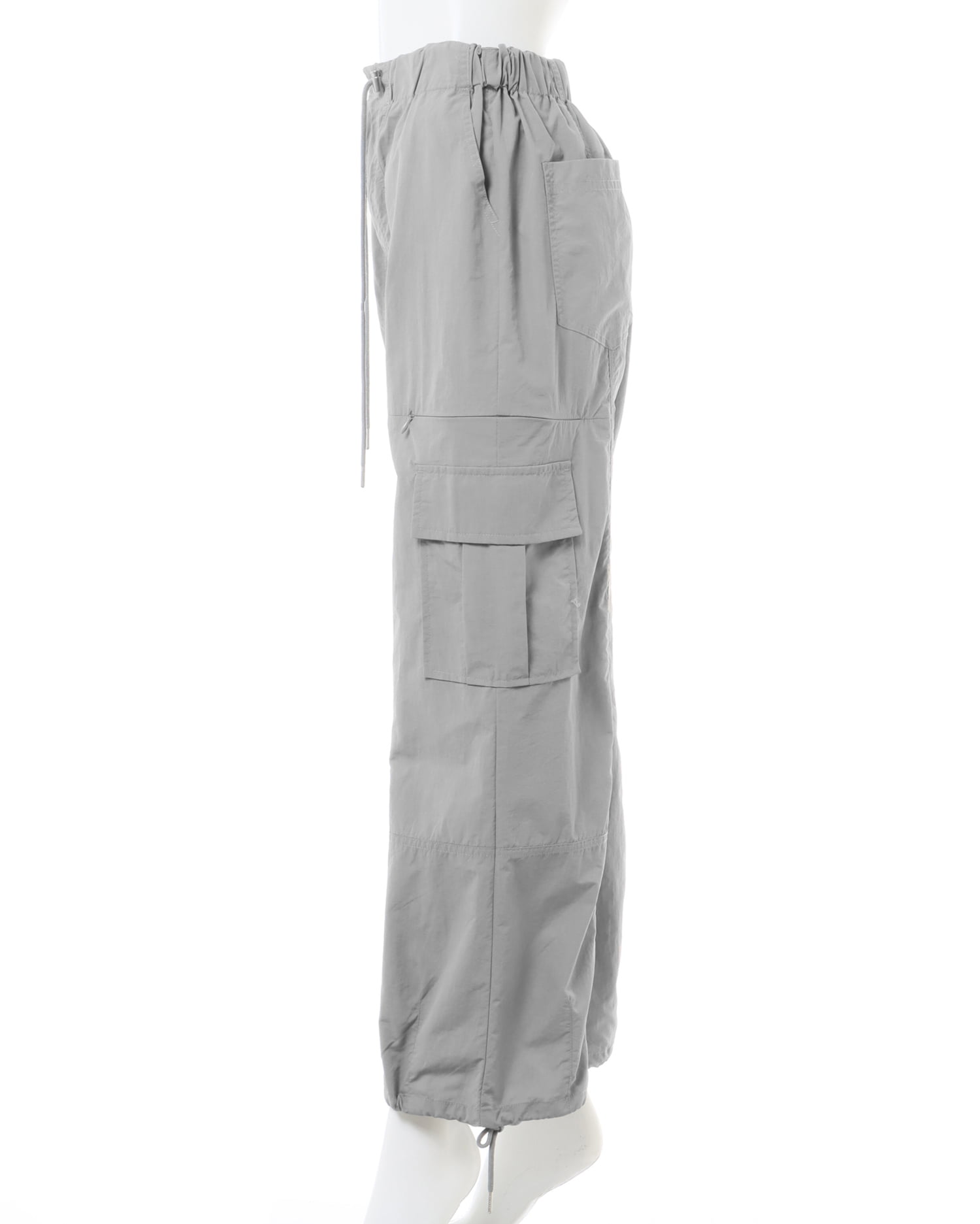 ・シャリ感のあるナイロンの生地で仕立てたカーゴパンツです。