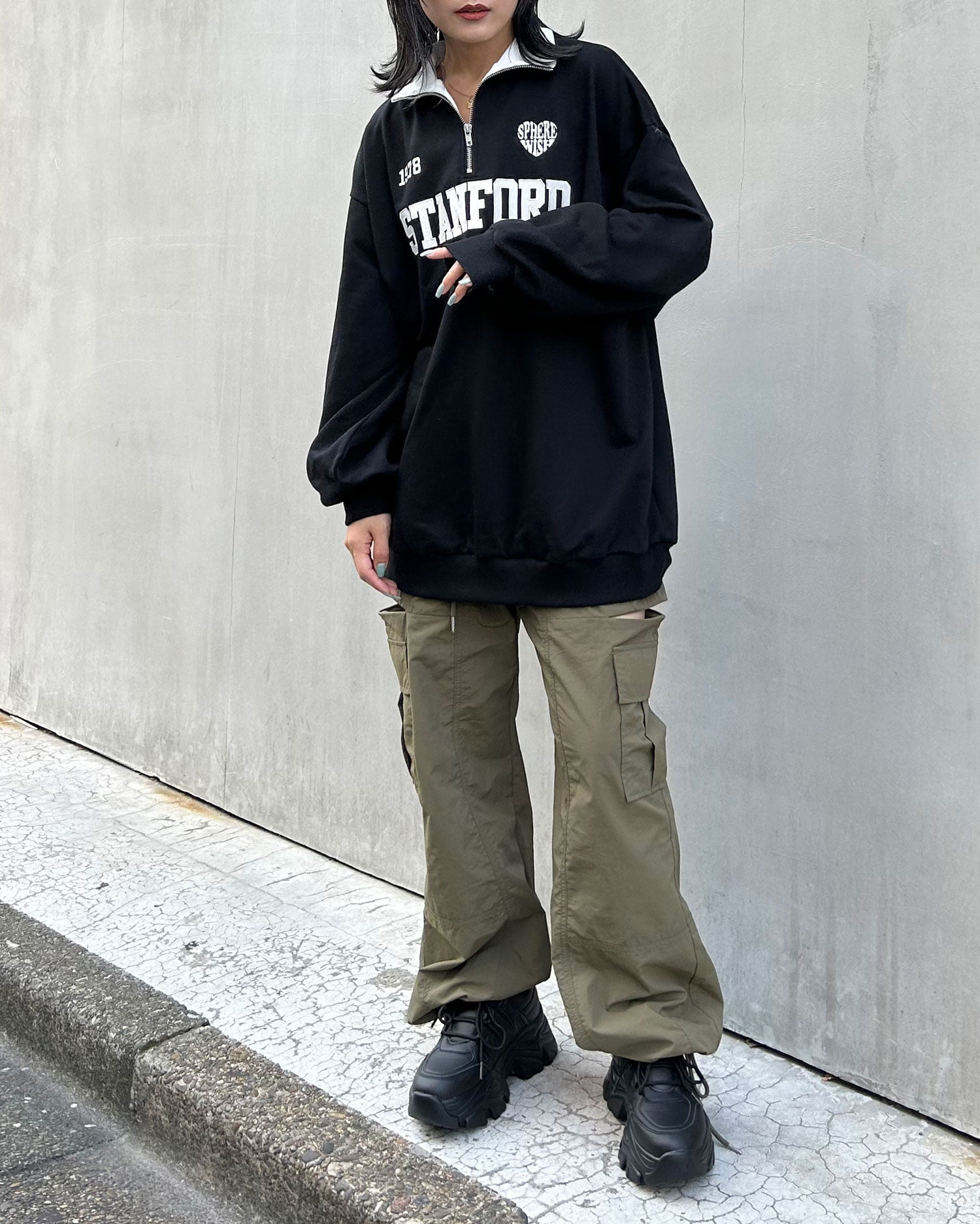 ・ゆったりとしたシルエットでラフ&カジュアルなコーディネイトが完成。