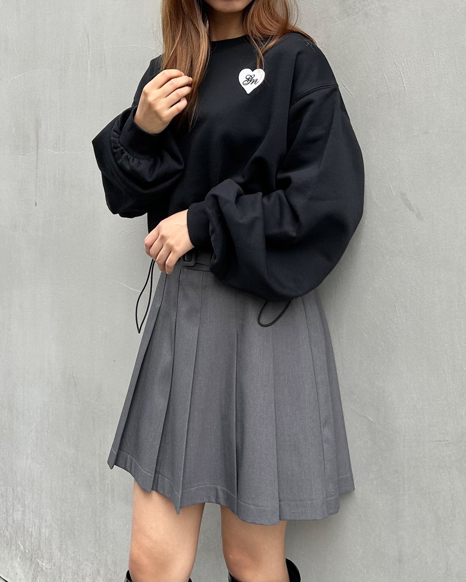 プリーツを上部だけ縫い留めてあるので腰回りをすっきり見せてくれるのも◎。