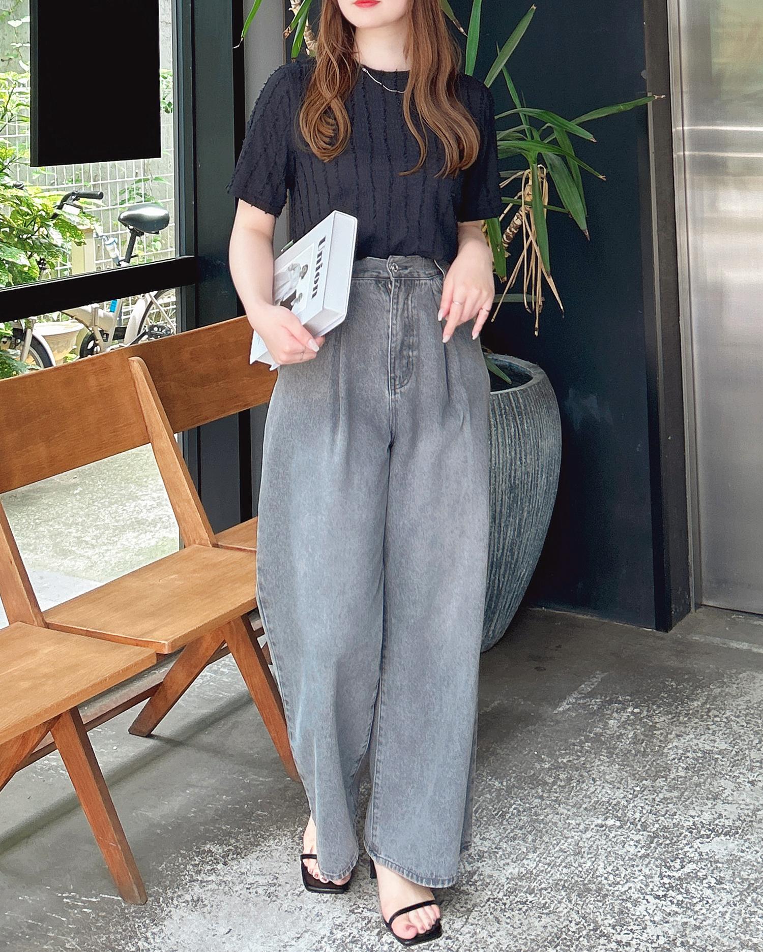 落ち感のあるストレートパンツ合わせの大人なスタイリングもおすすめです。