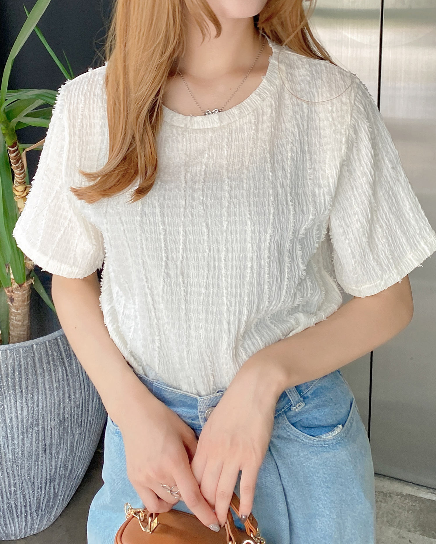 【可愛らしい素材感で目を惹くトップス】