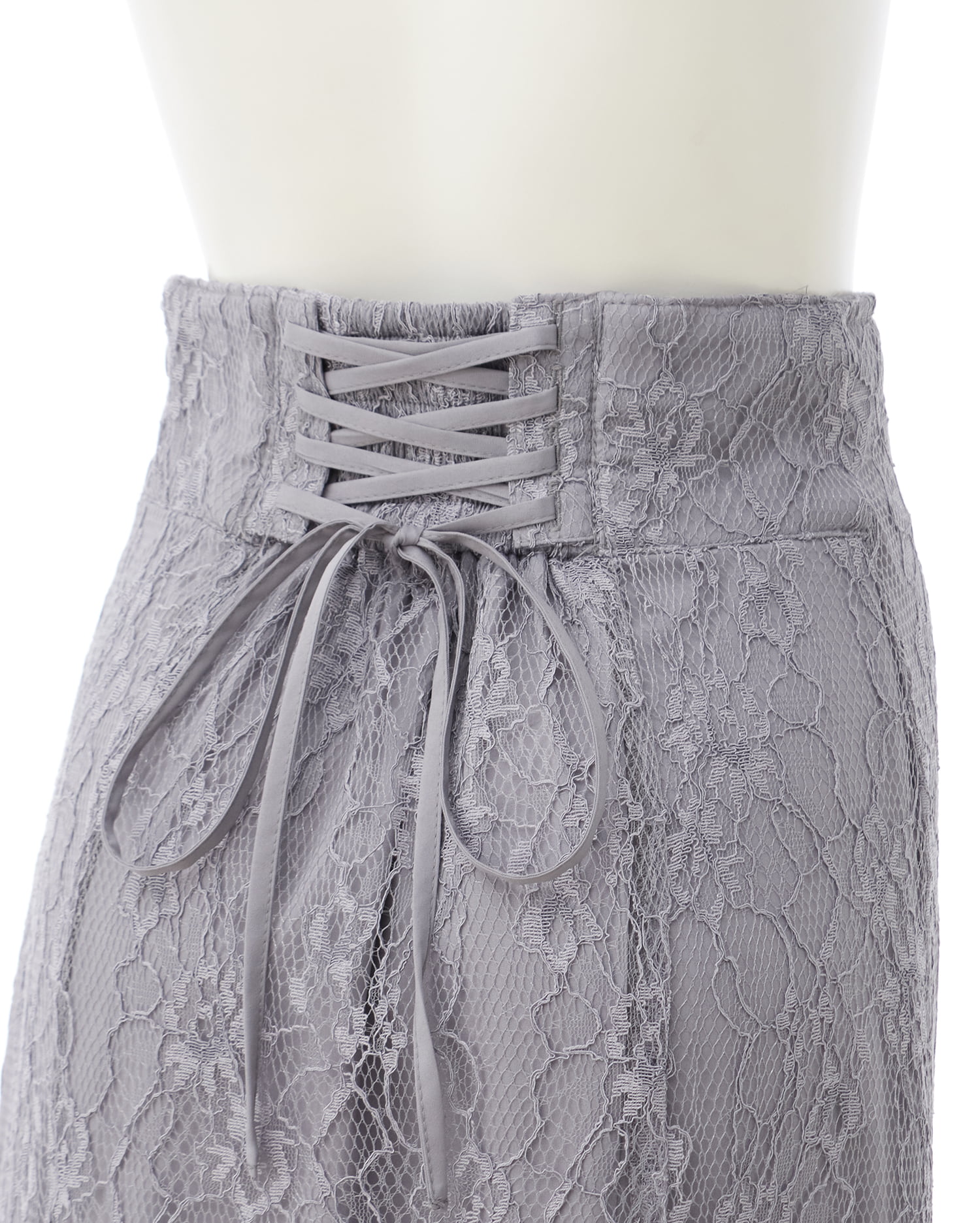 後ろはレースアップのデザインなのでウエストの調節が可能。