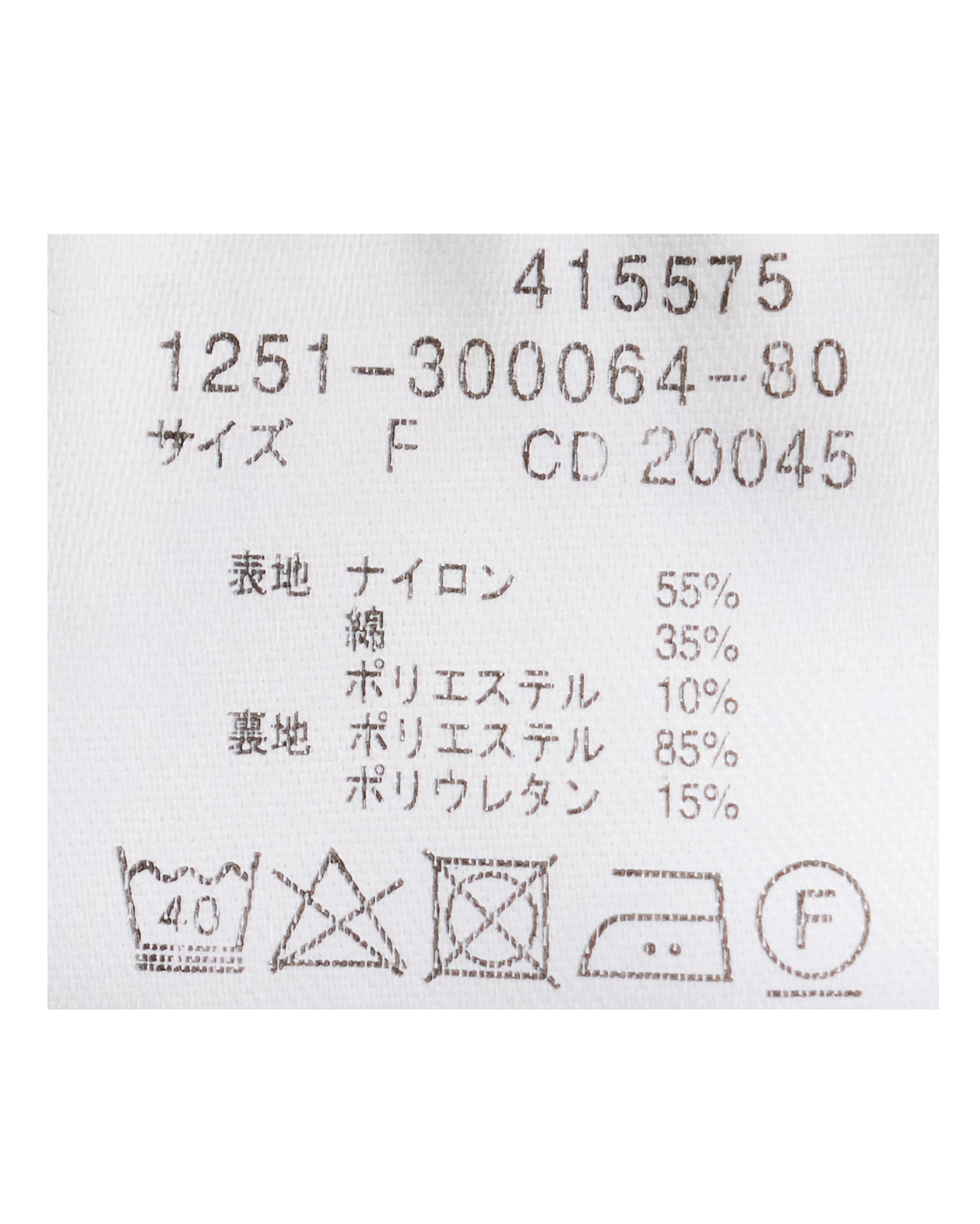原産国 中国 表地 ナイロン55% 表地 綿35% 表地 ポリエステル10% 裏地 ポリエステル85% 裏地 ポリウレタン15%
