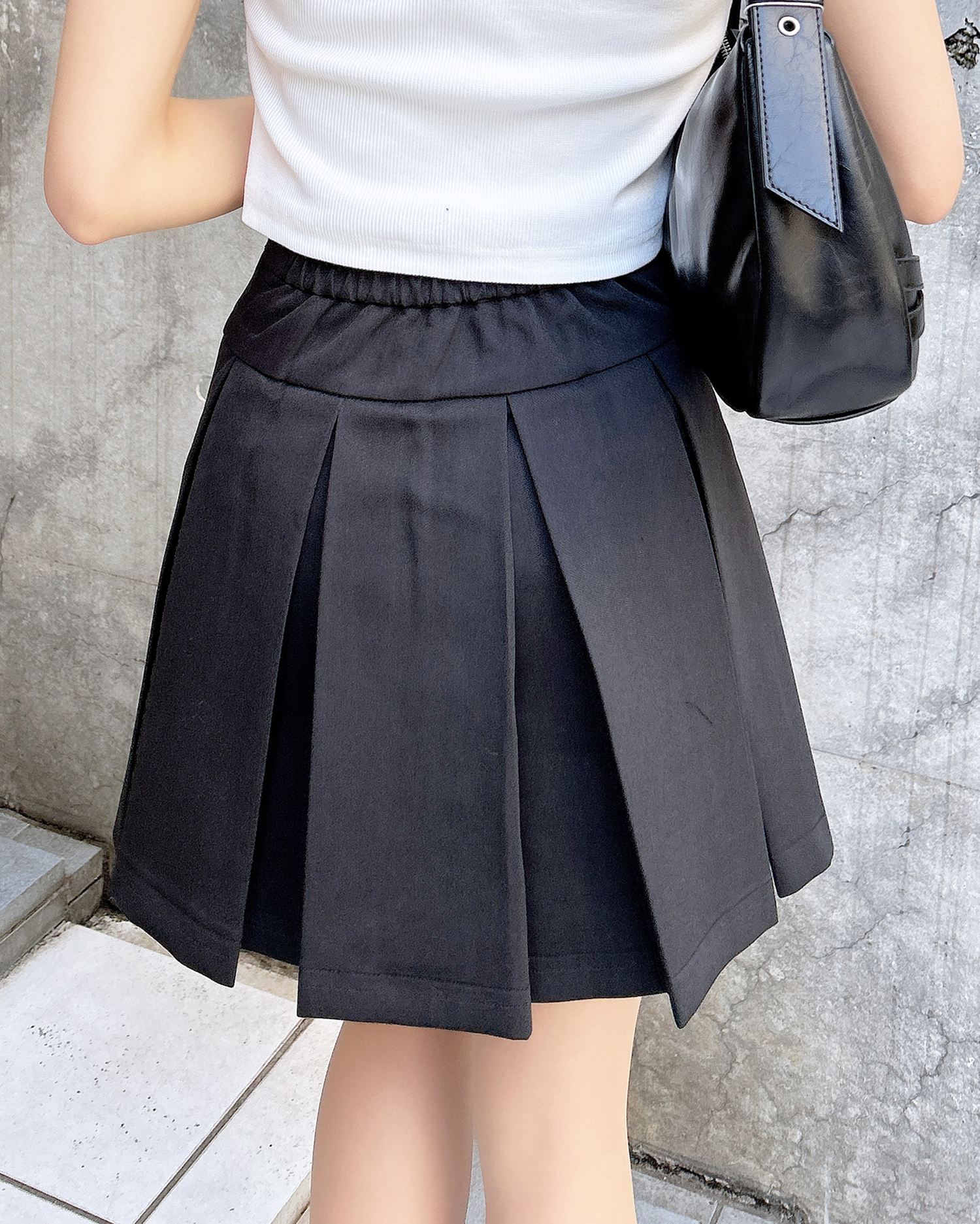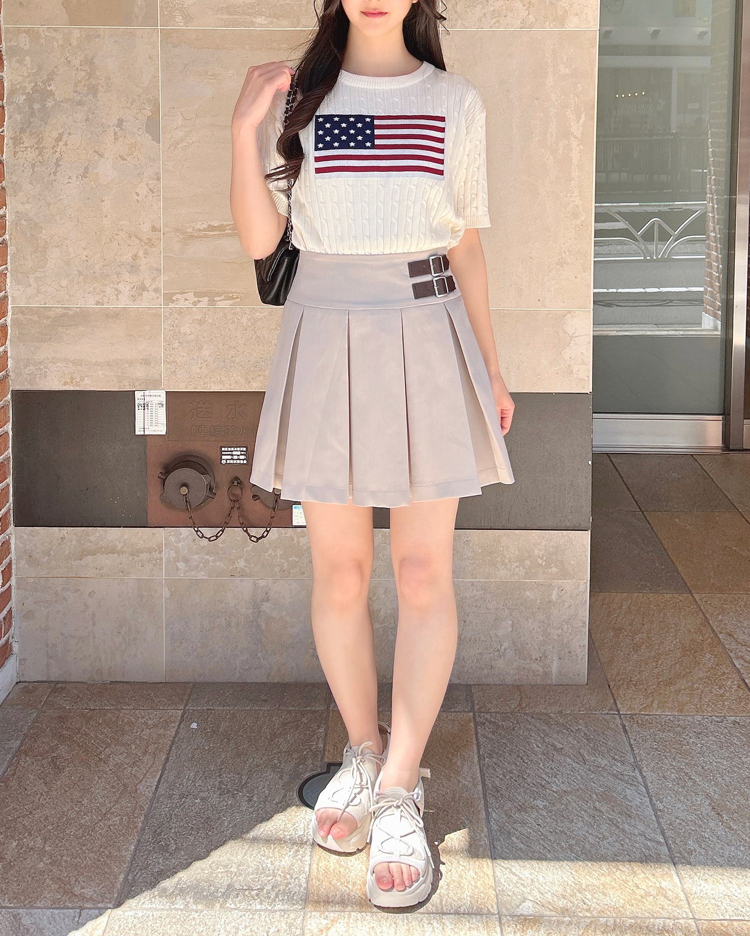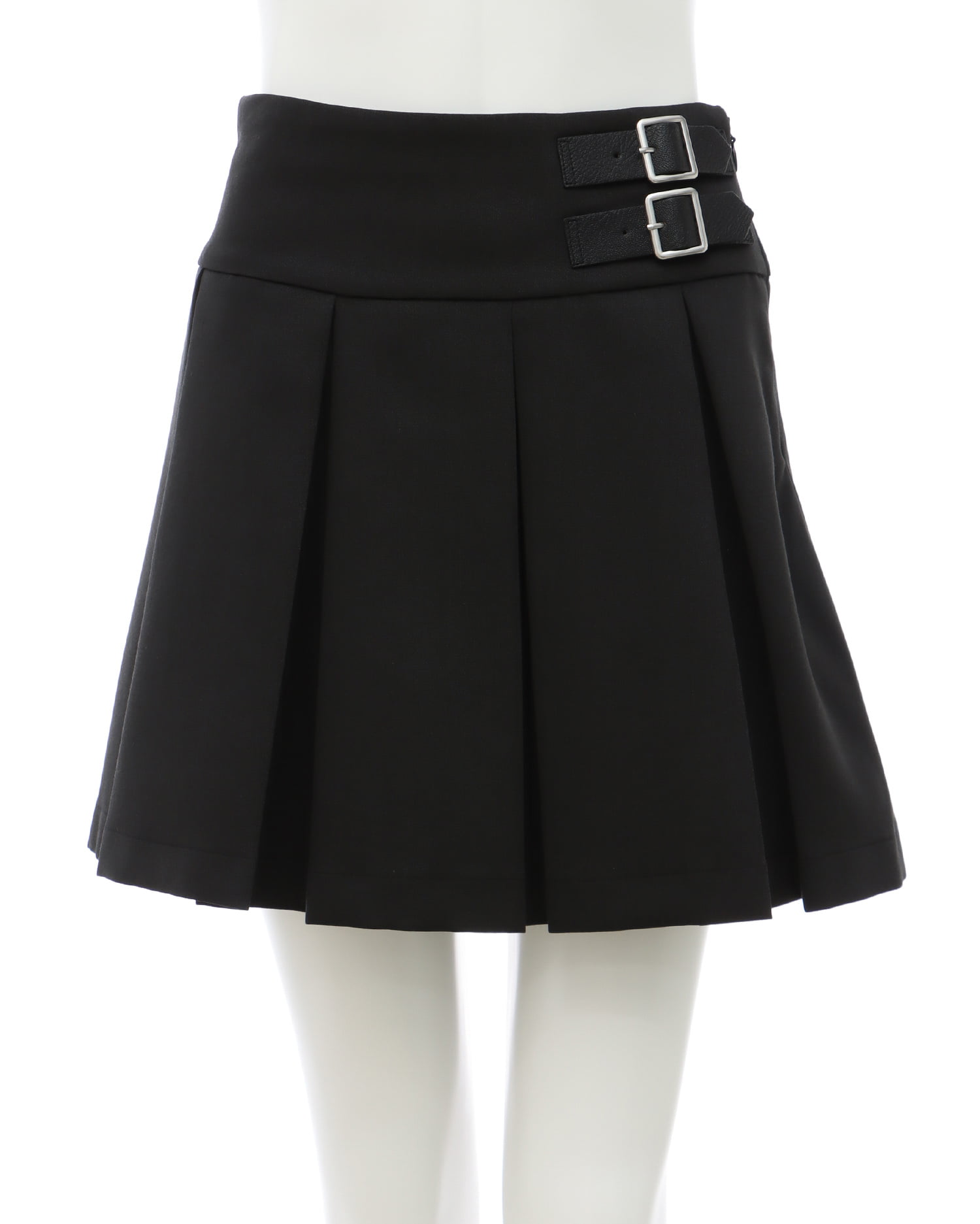 サイドにフェイクレザーのダブルベルトをあしらったスカパン。