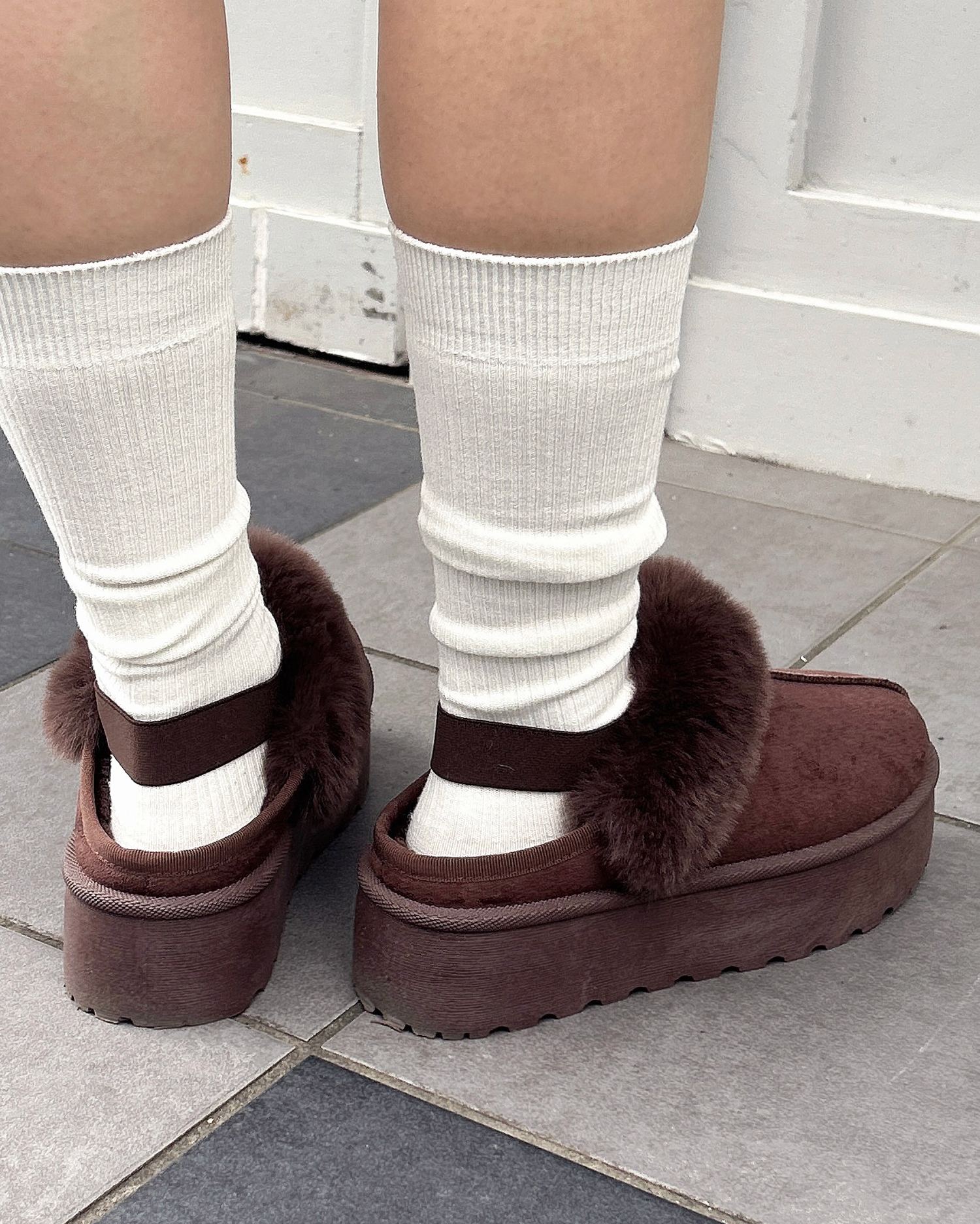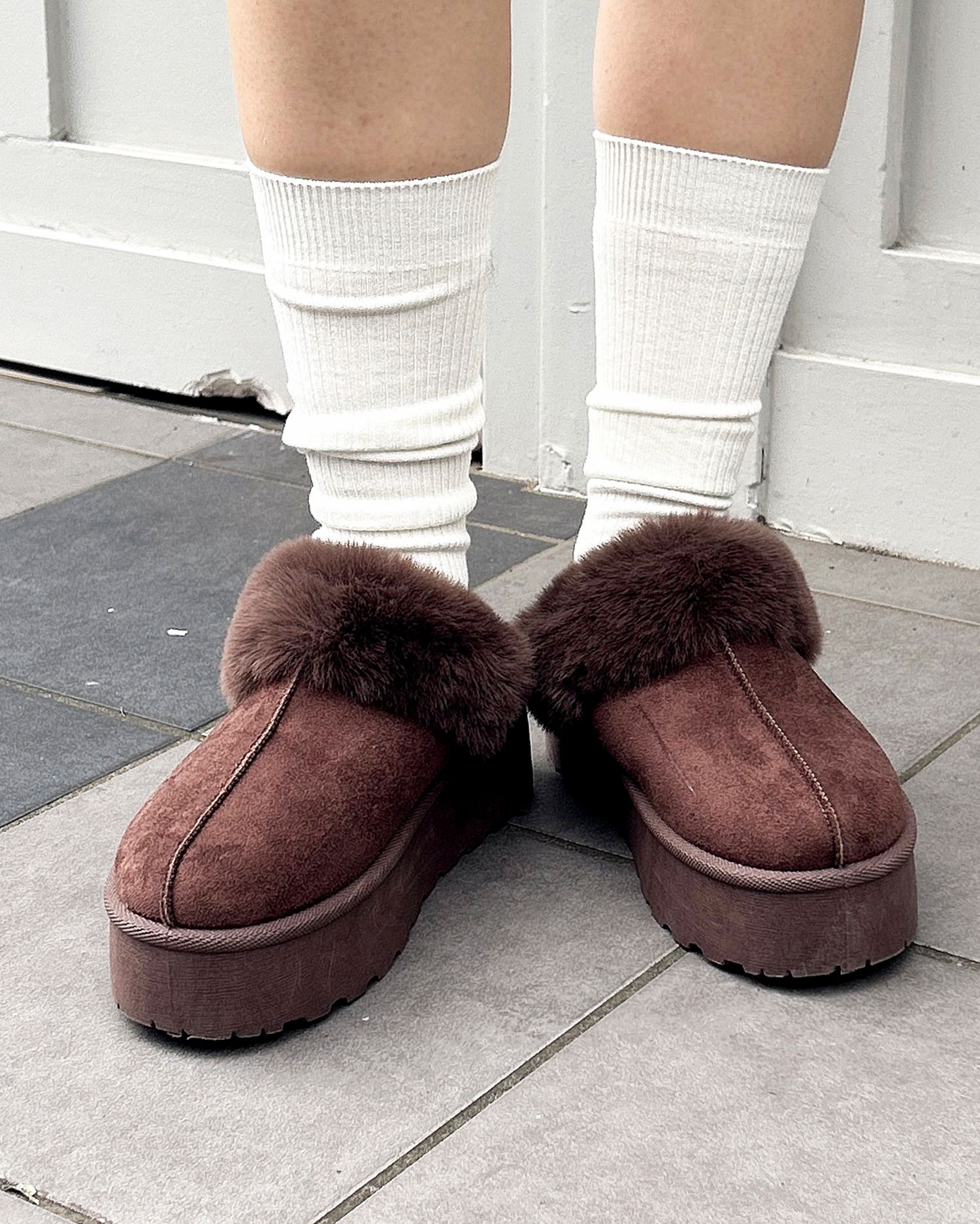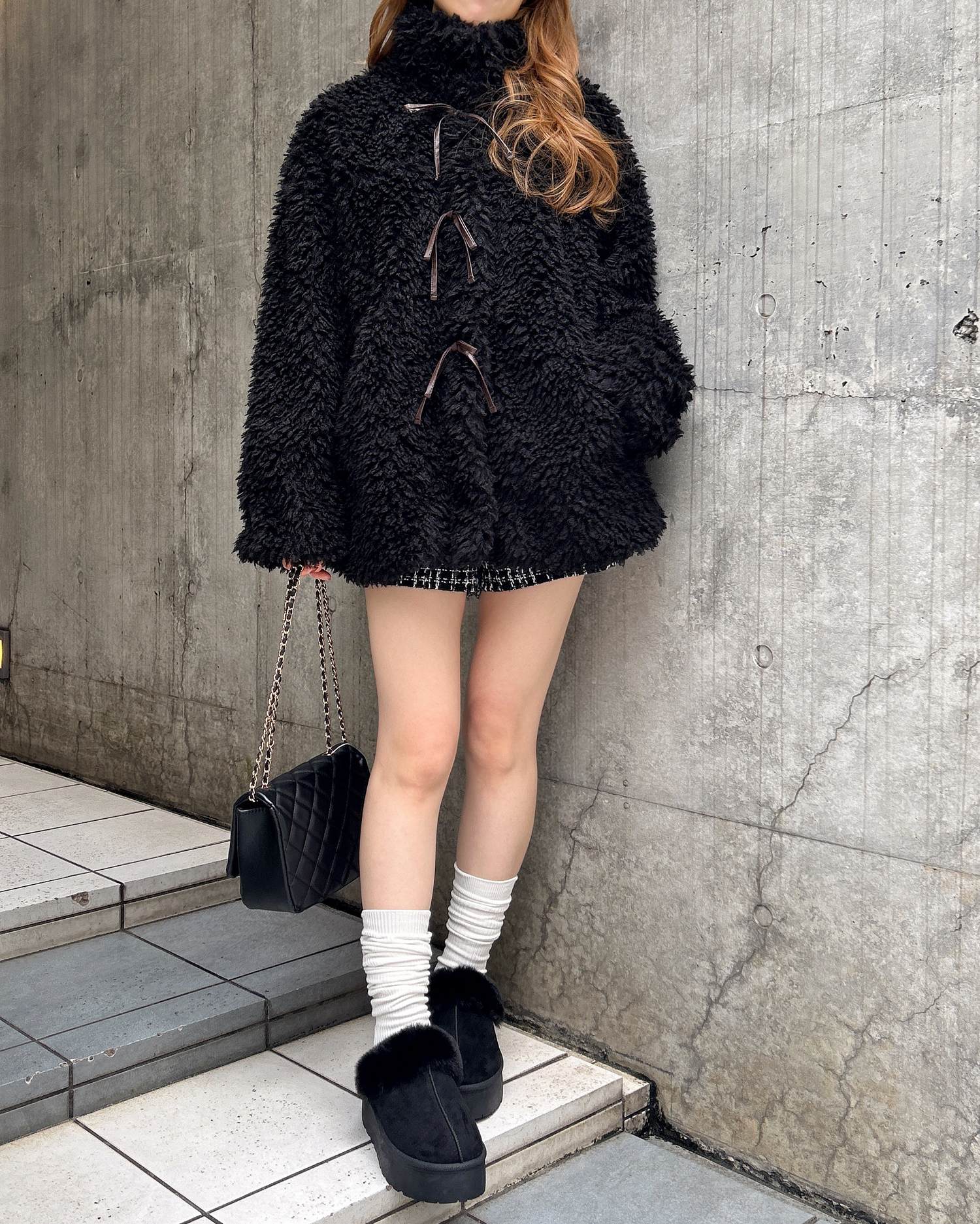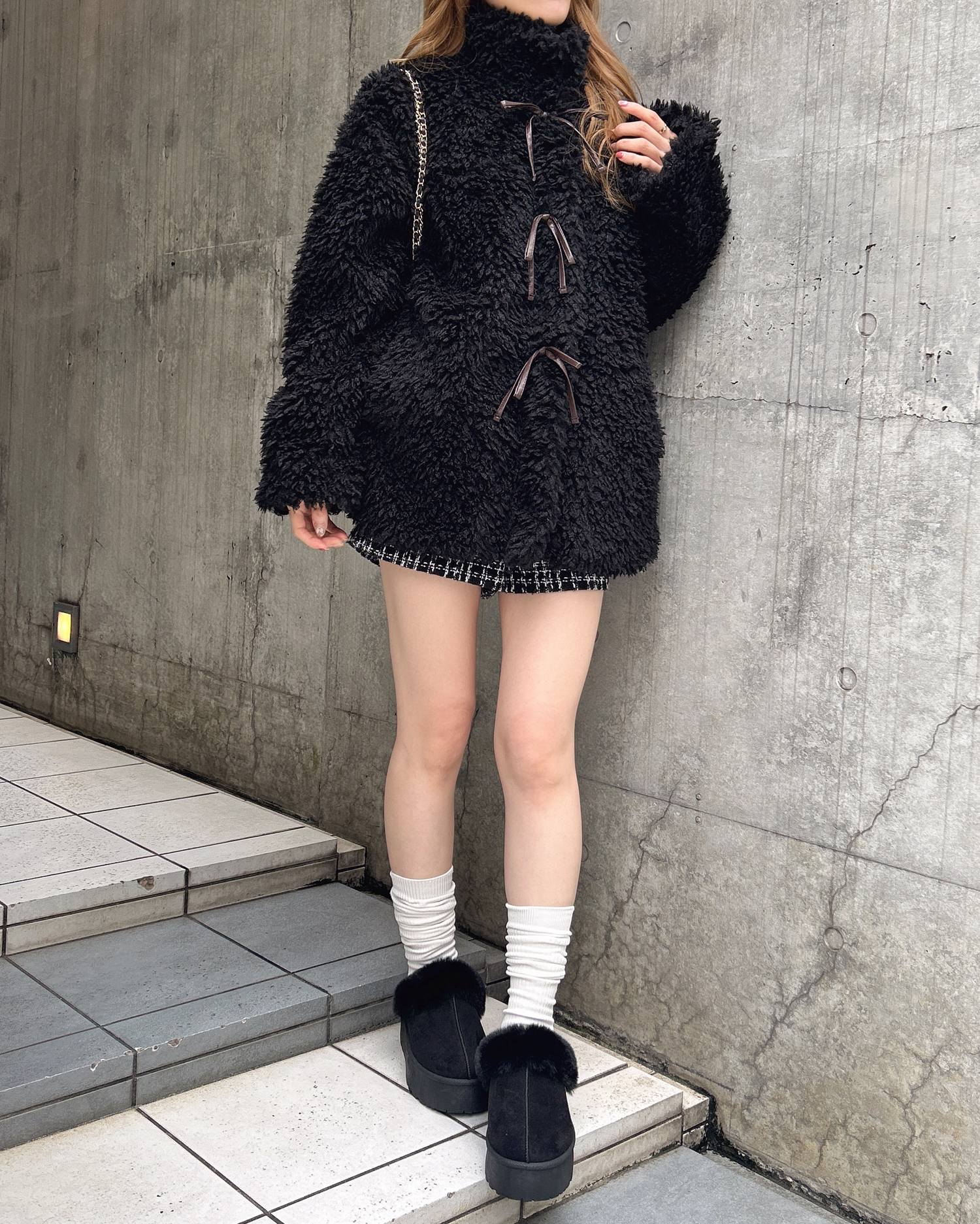 ボリュームソールで脚長効果抜群のフェイクムートンのサンダルです。