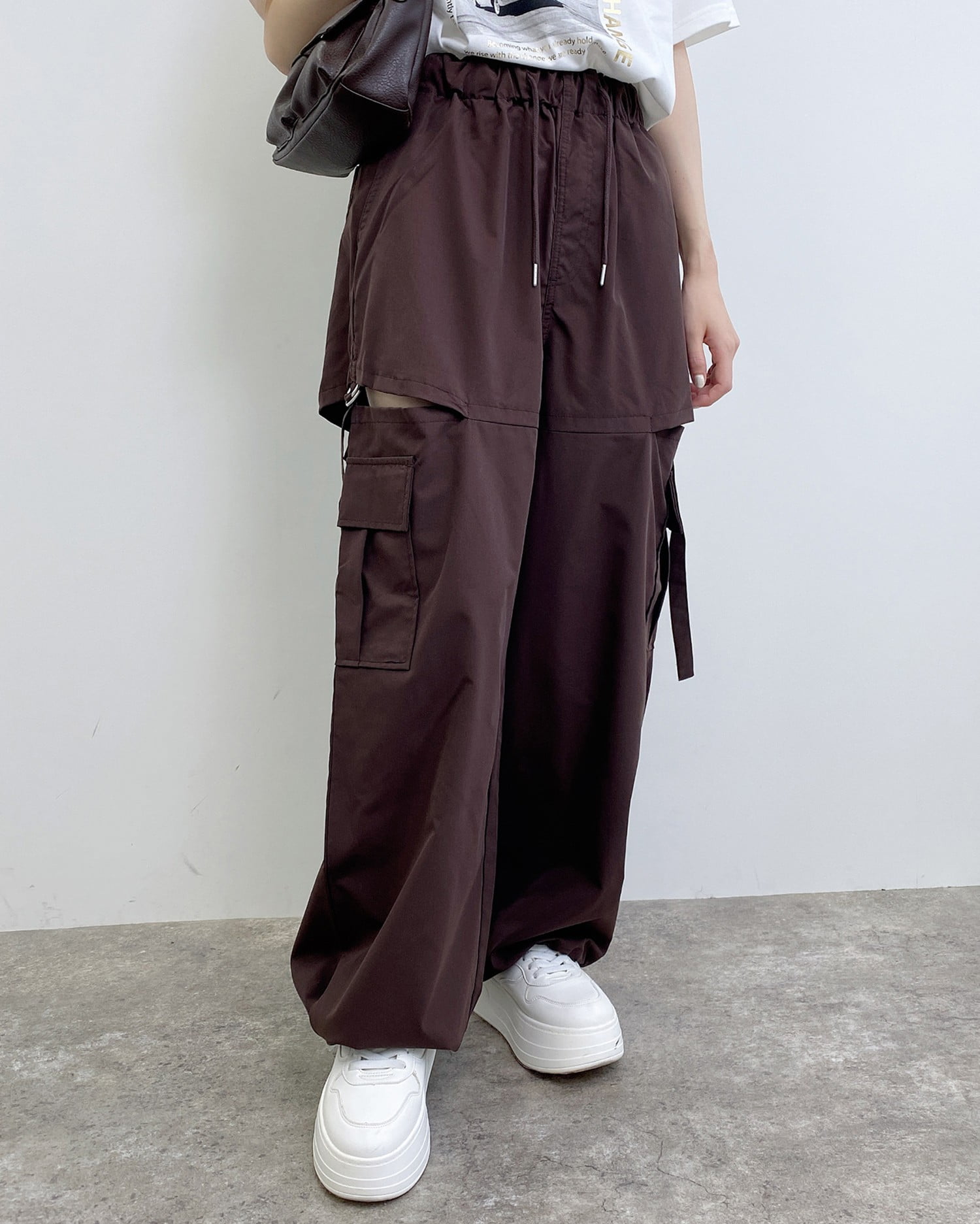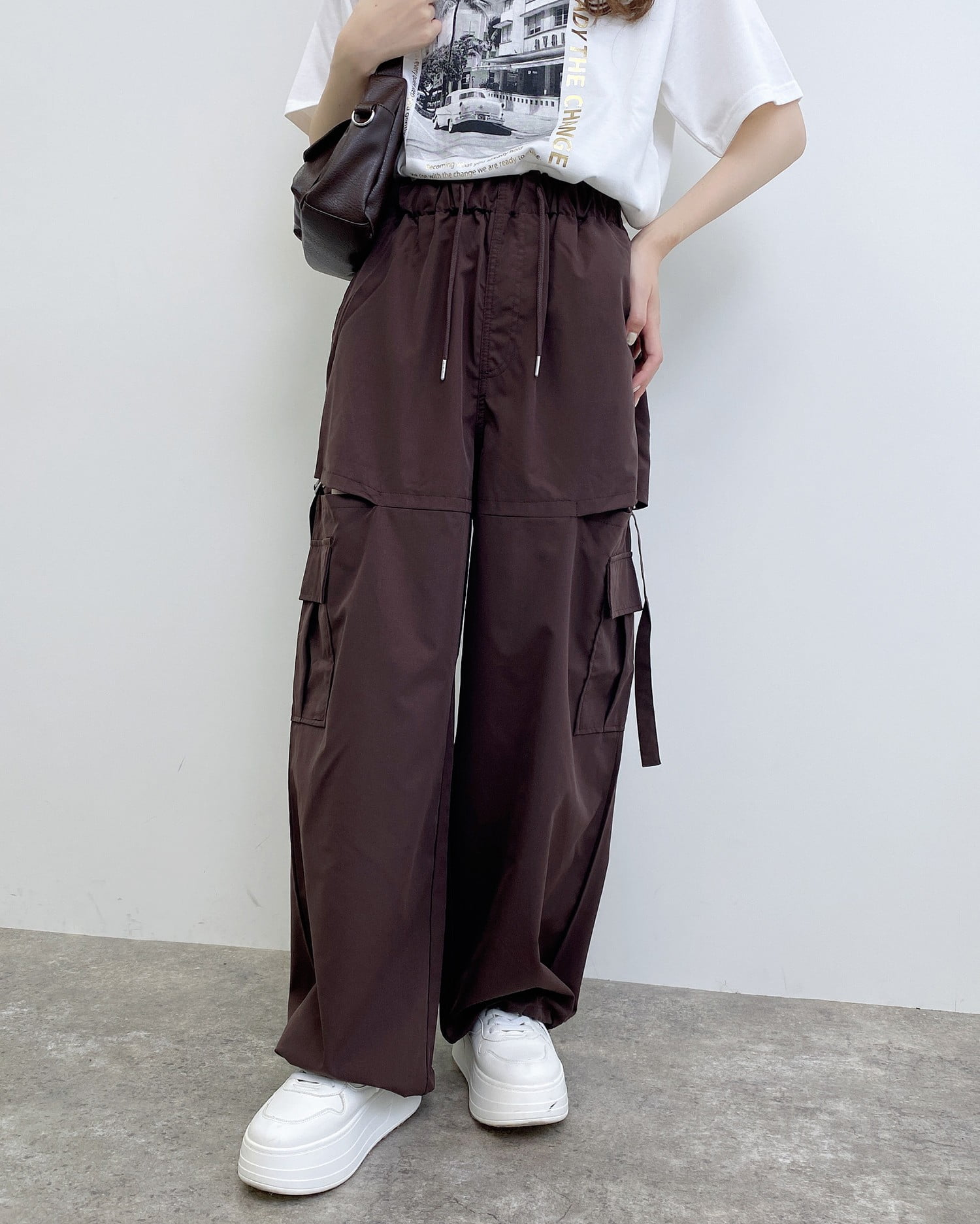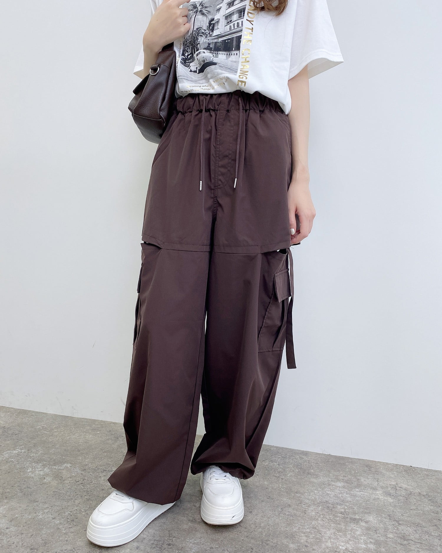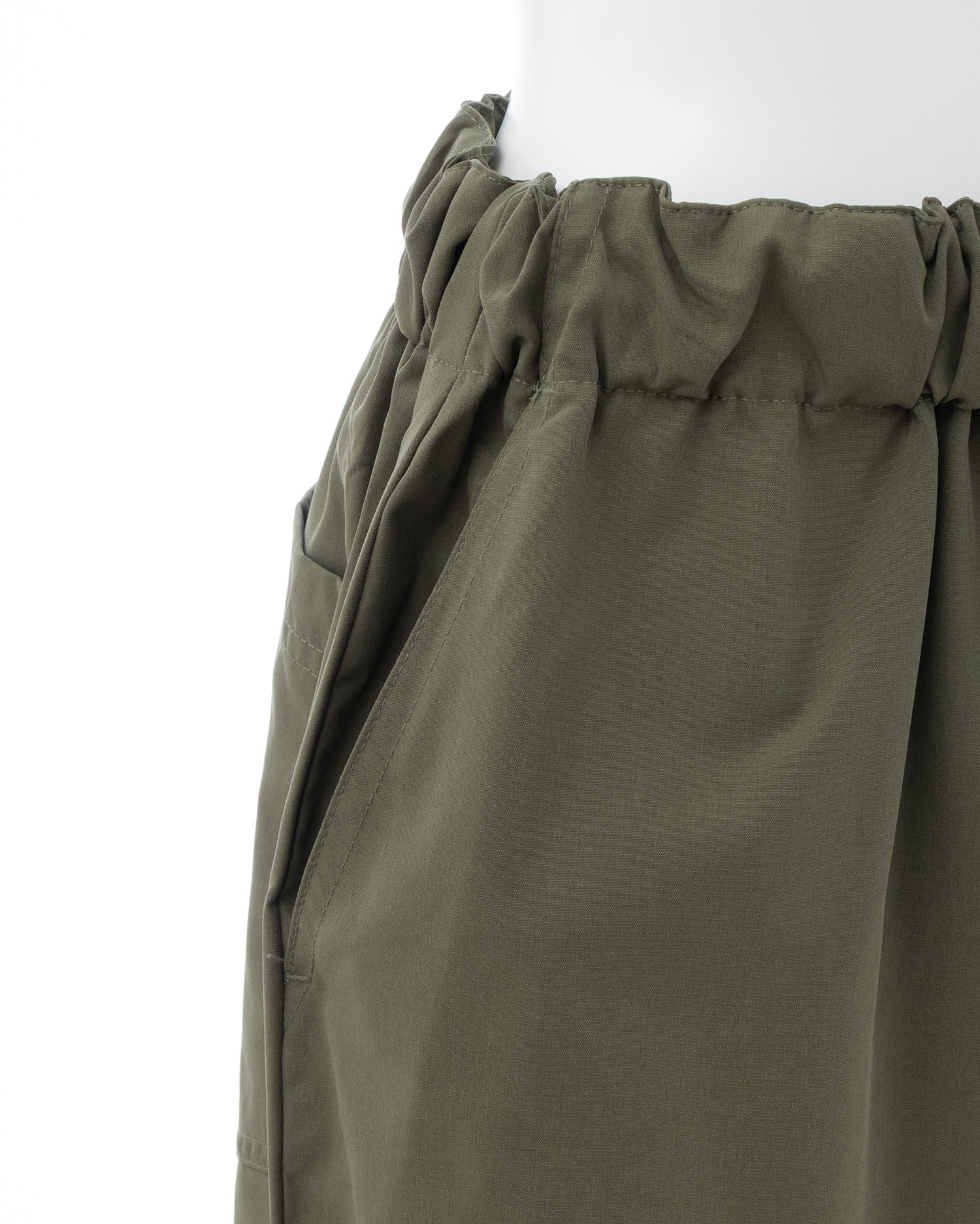 ゆったりとしたシルエットとウエストゴムで着心地も快適。