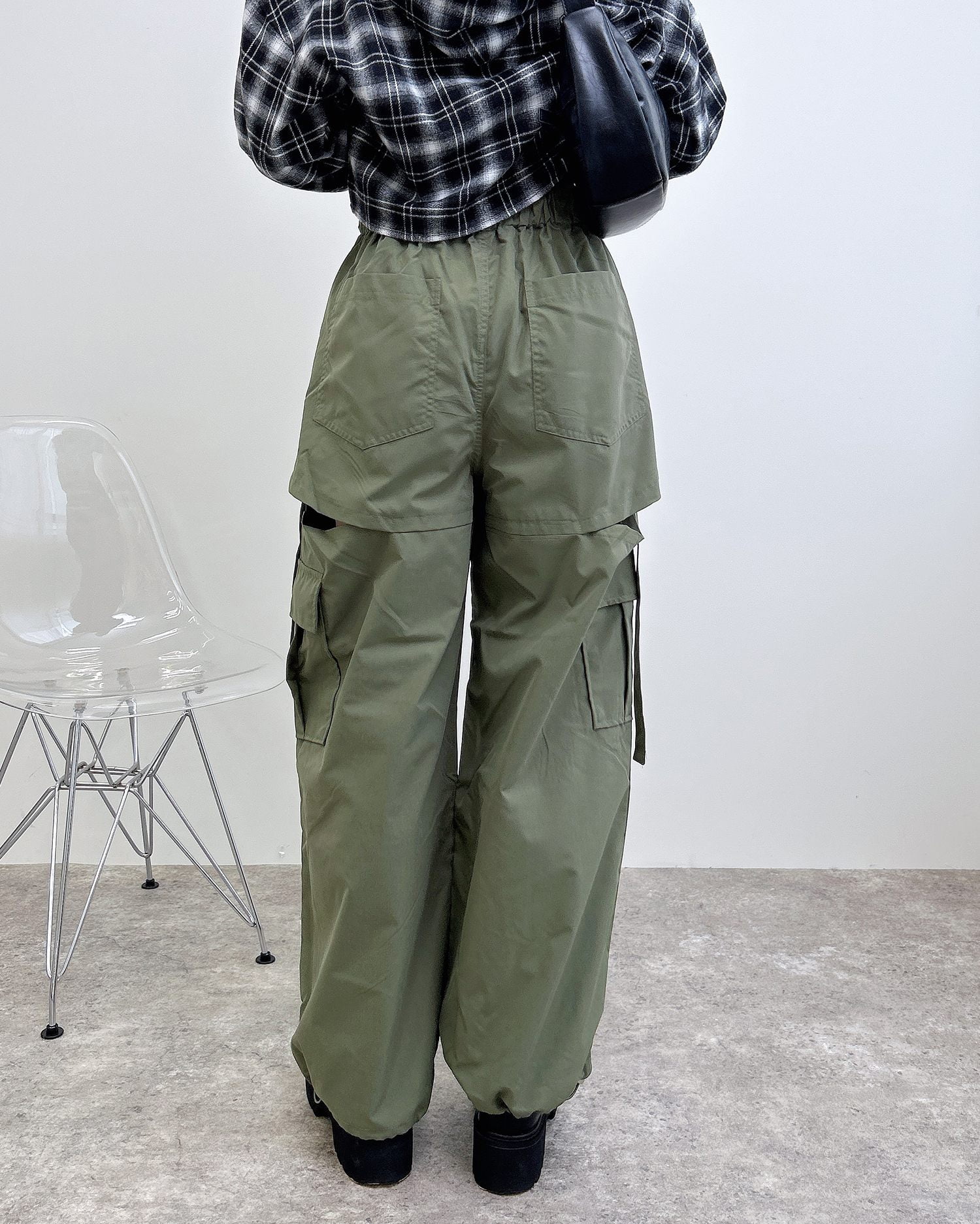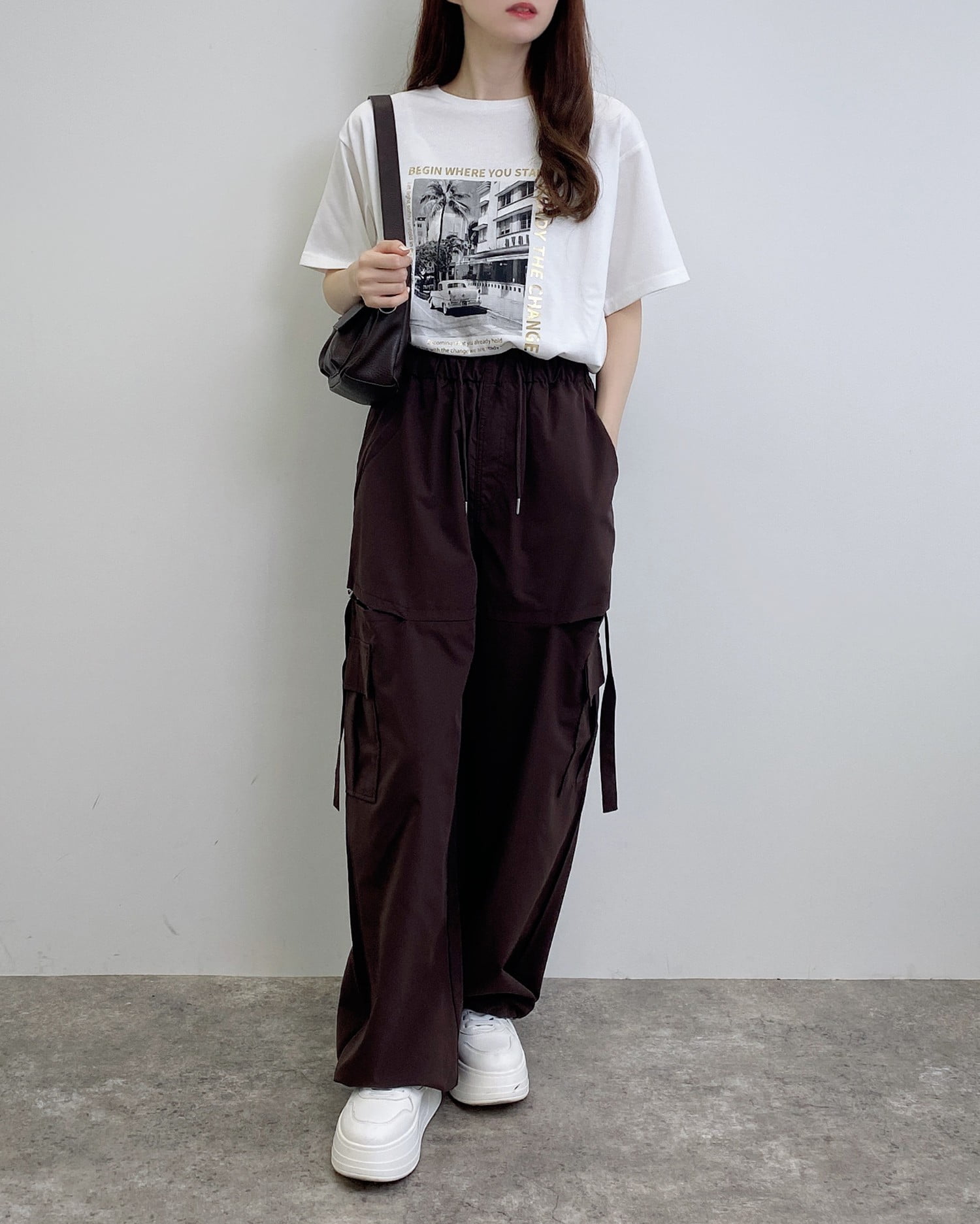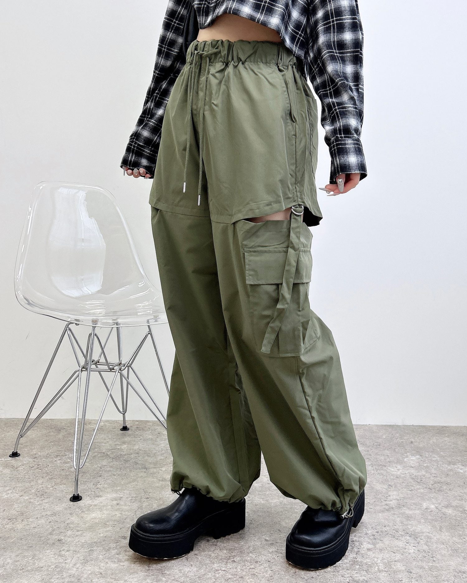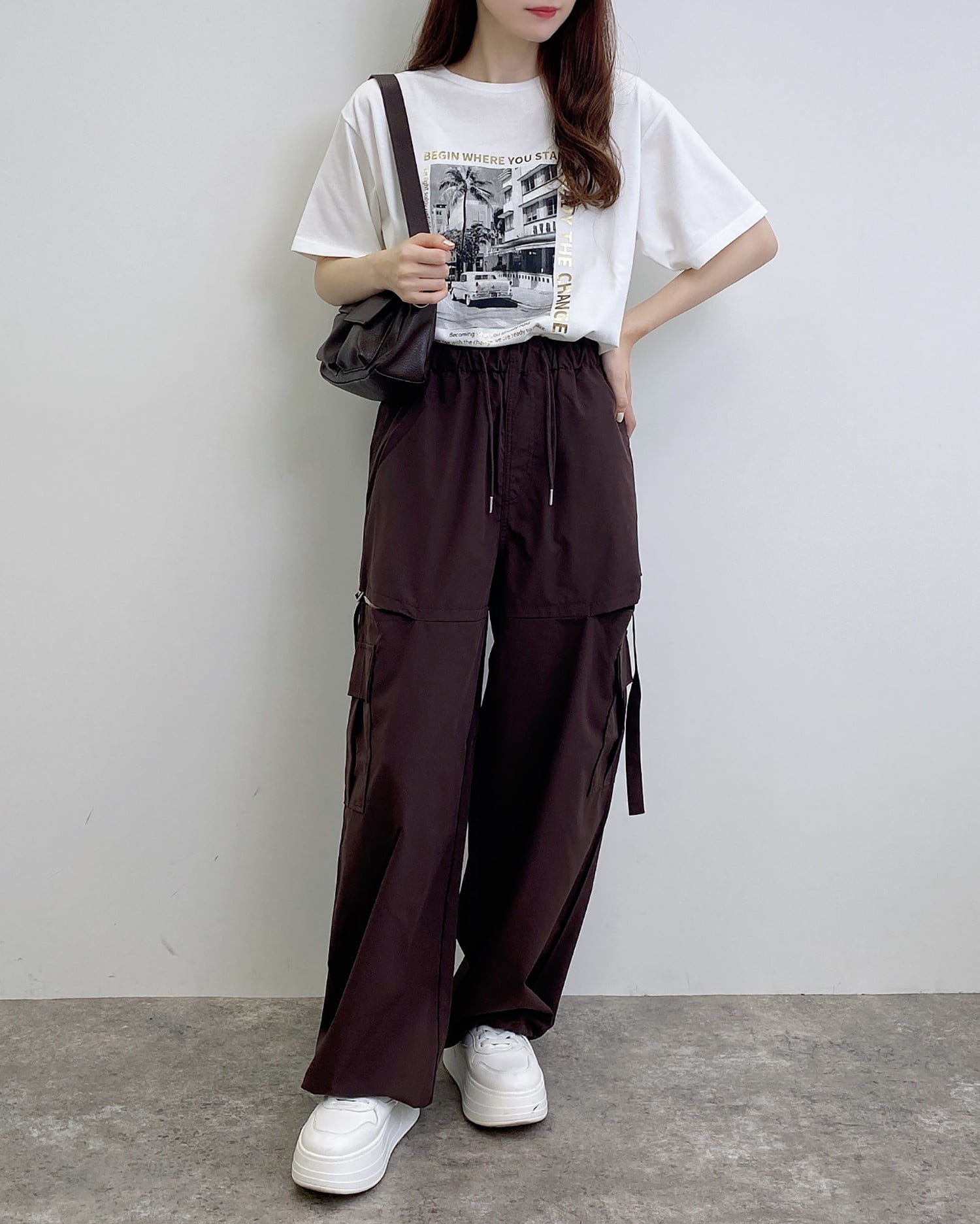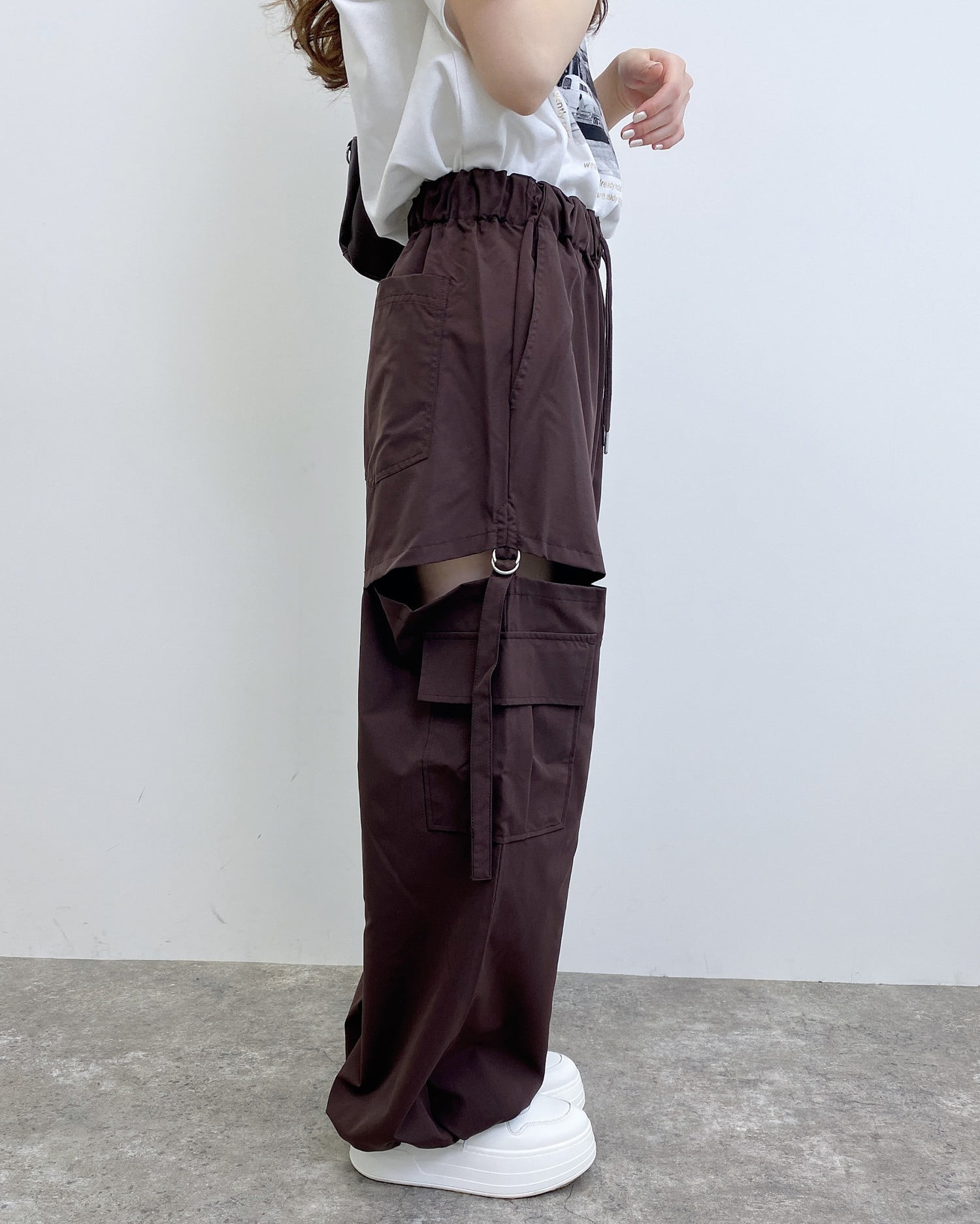 ゆったりとしたシルエットとウエストゴムで着心地も快適。