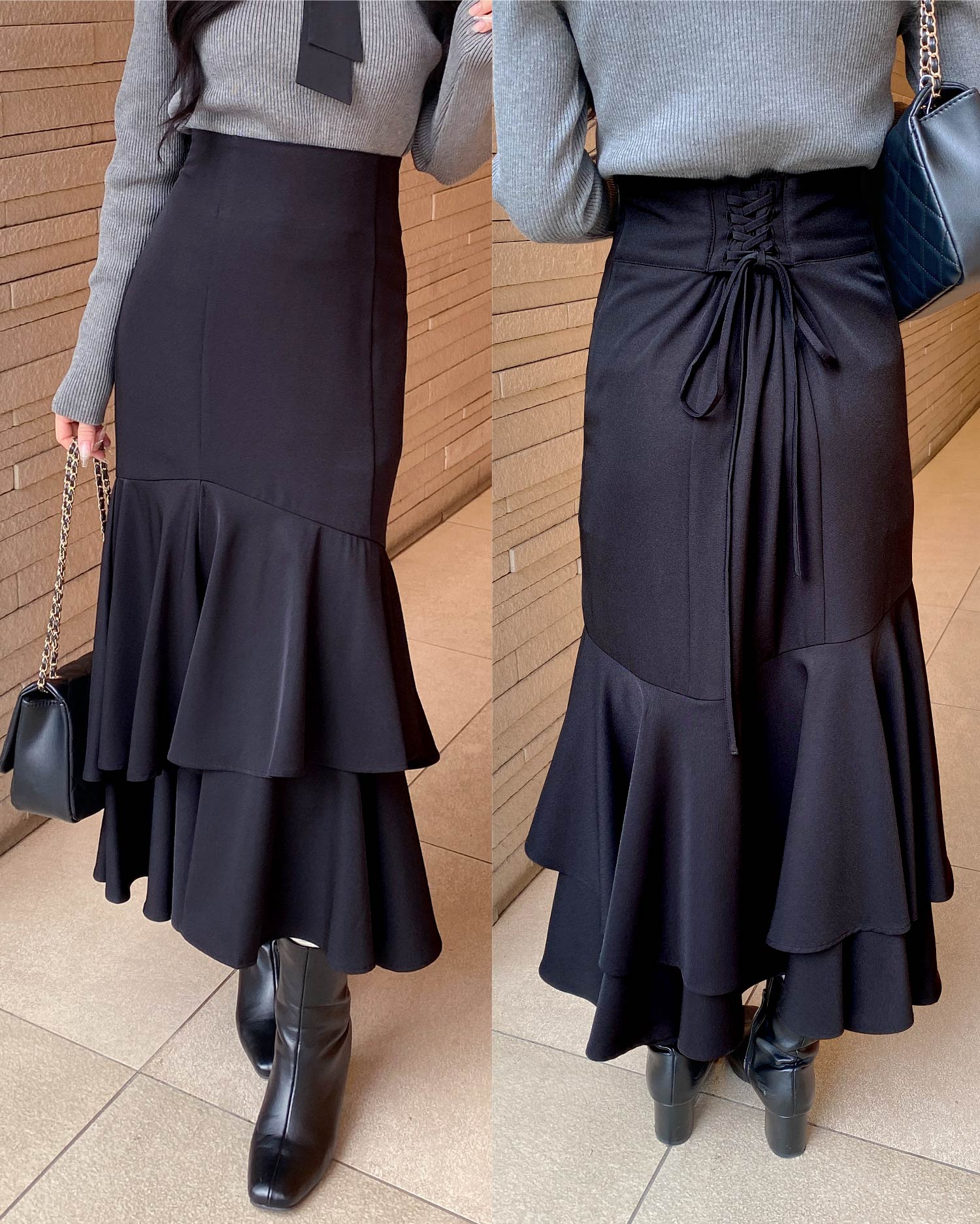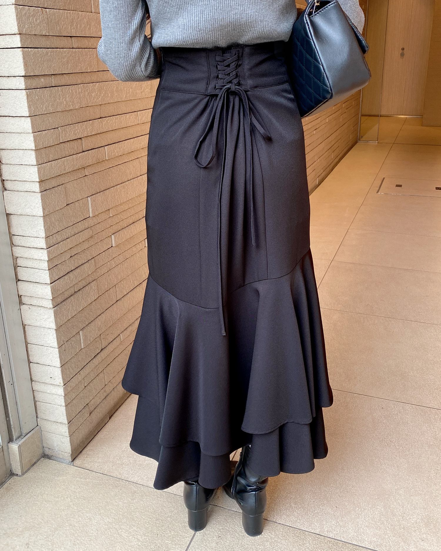 • INGNI(イング) バックレースアップアシメティアードスカート クロ