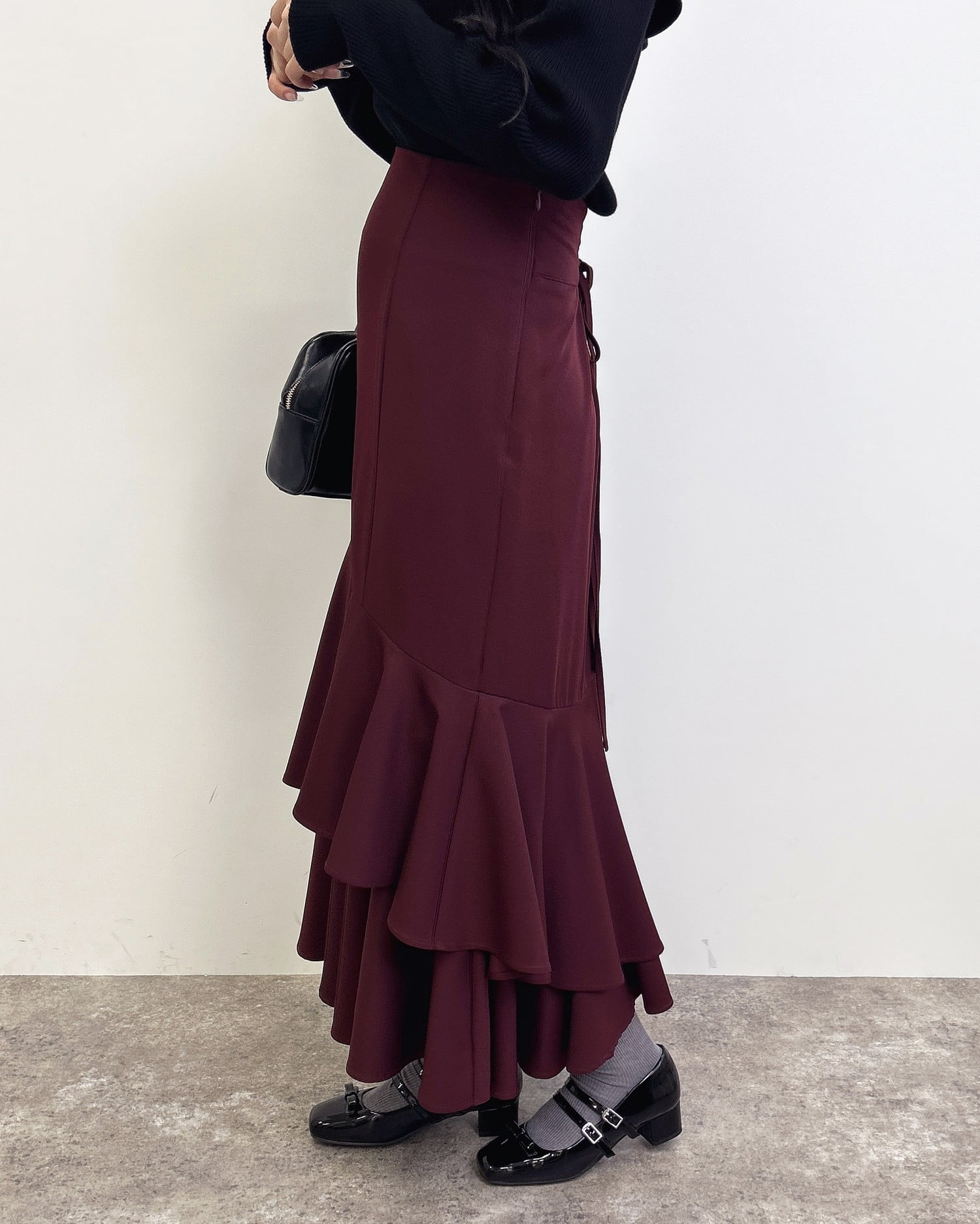 • INGNI(イング) バックレースアップアシメティアードスカート ボルドー