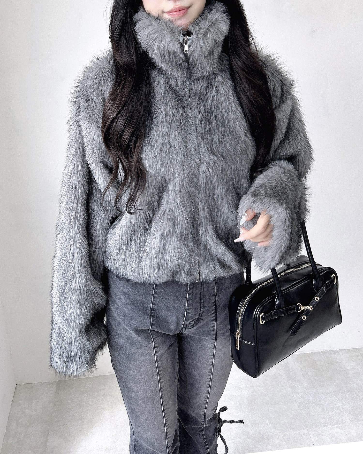 【一部カラー予約受付中】フロントジップスタンドカラーエコファーコート