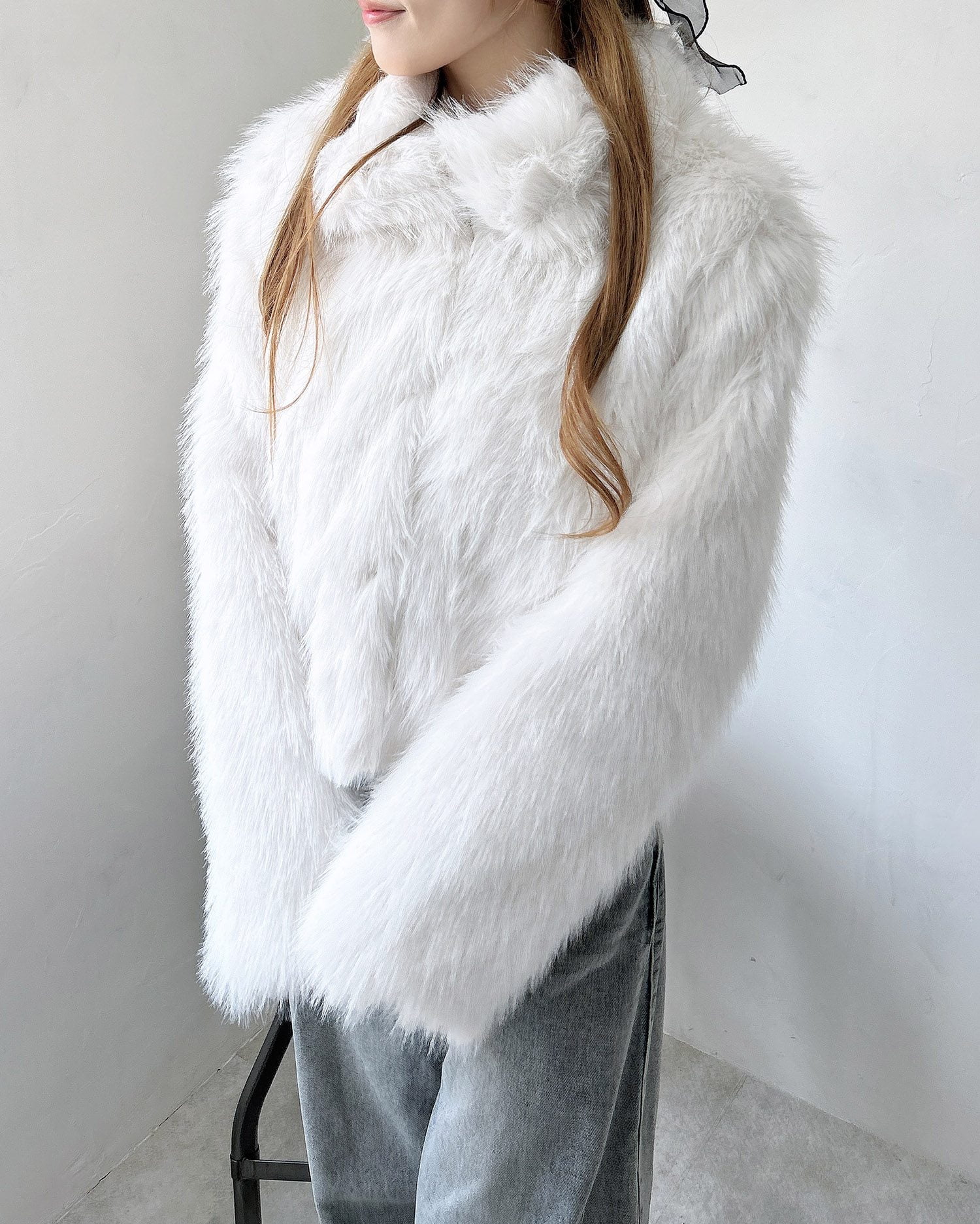 アニマルライクなふわふわエコファーのマグネットボタンデザインコート。