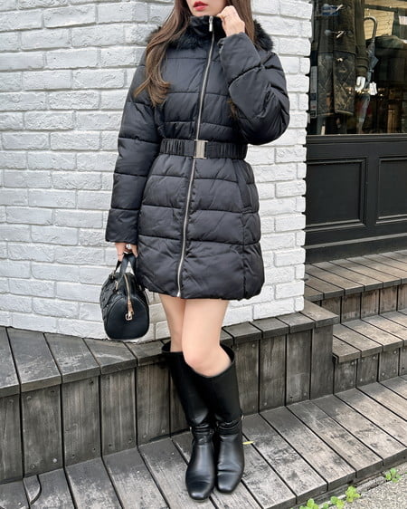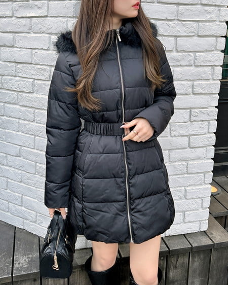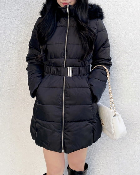 ファーフード付ウエストベルトエコダウンコート