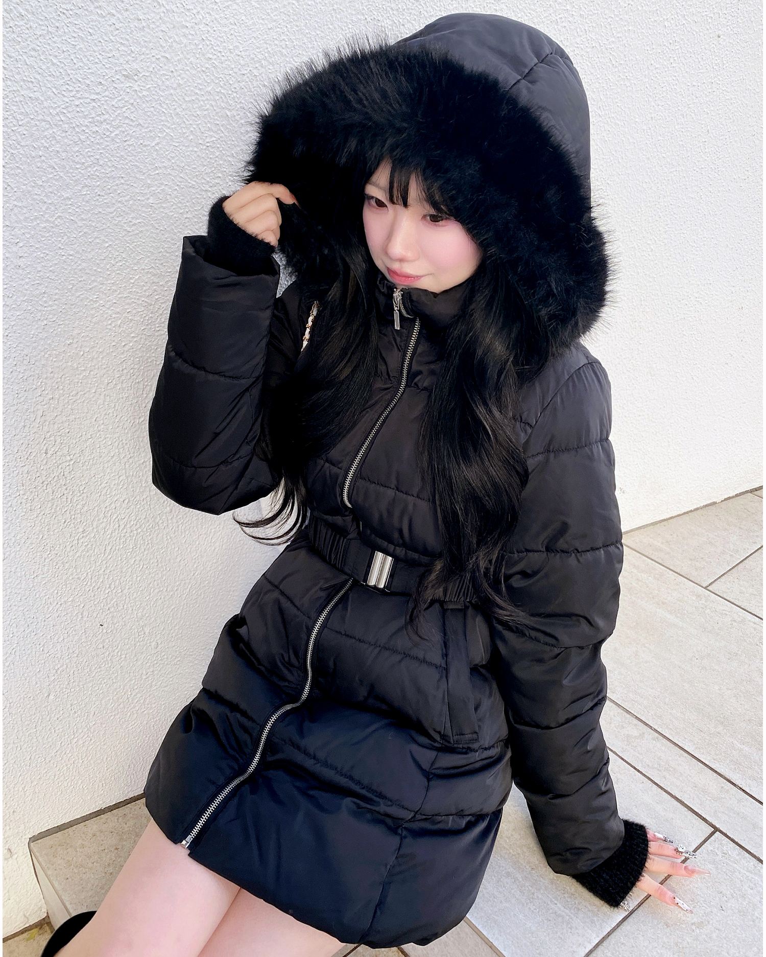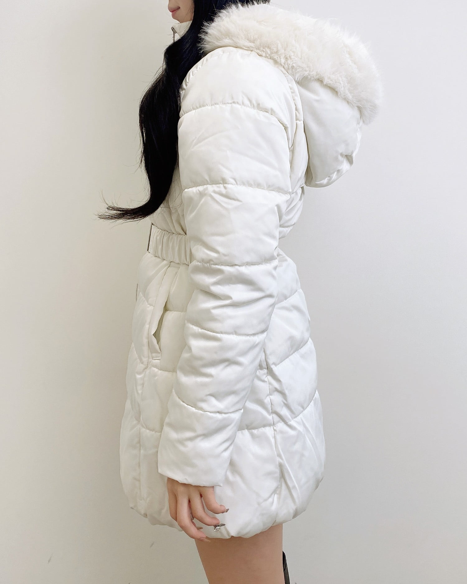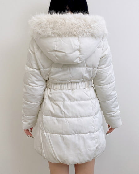 1254-700014 ファーフード付ウエストベルトエコダウンコート